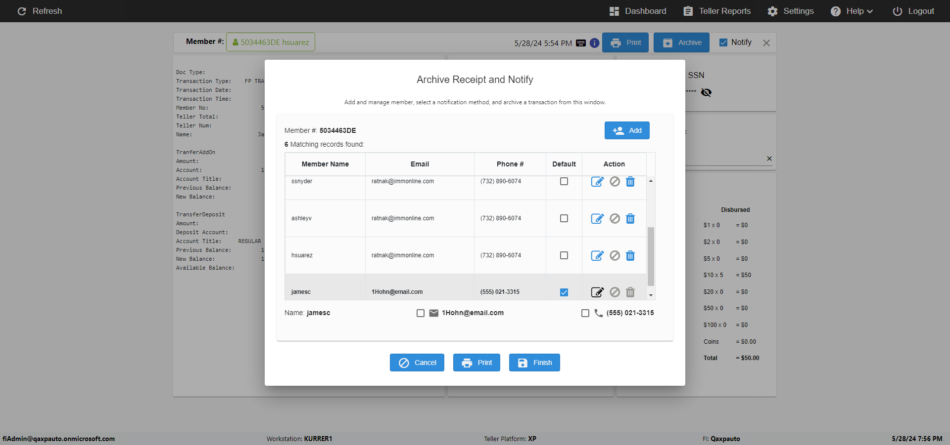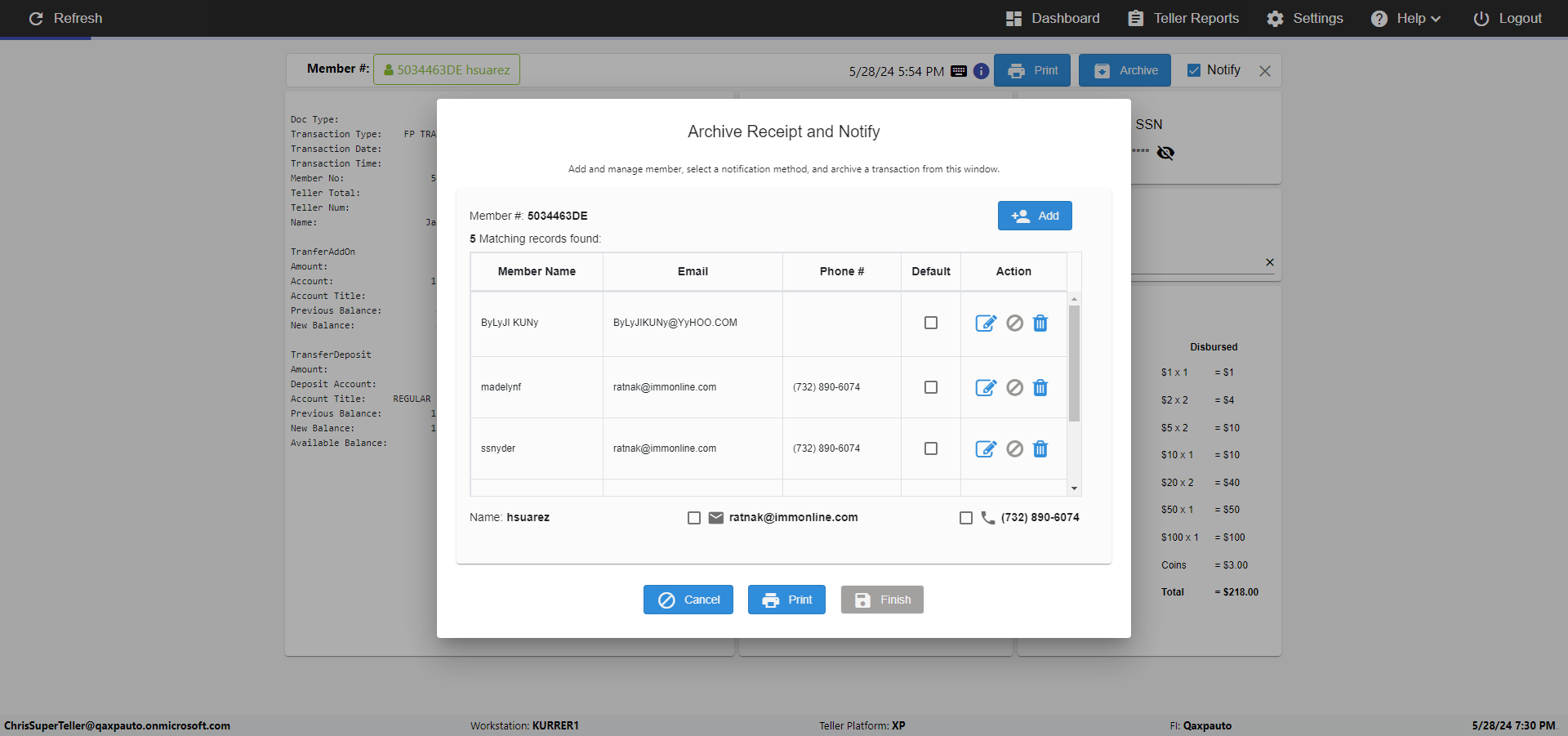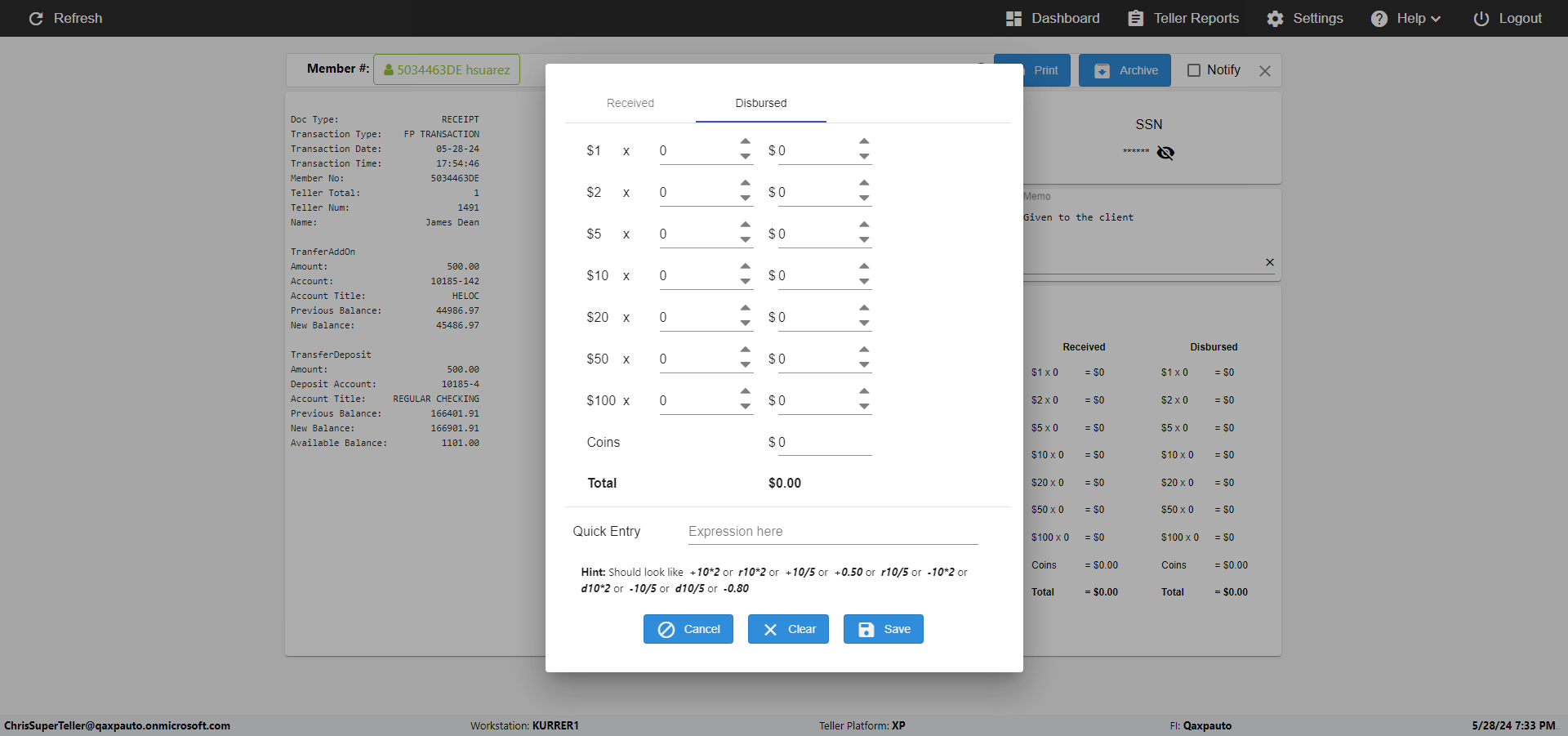 | {Toggel=, Archived Transactions=yes, Description=verify End TO End Test OF Normal Teller In Ereceipt Page, Email=FALSE, Archive=TRUE, Document Type=SSN, Notify=TRUE, SignatureTab=Touch,, DisbursedExpression=|-10*5, Operation=, Teller LastName=, Disbursed cash=1-1|2-2|5-2|10-1|20-2|50-1|100-1|Coins-3, errorint=, TestID=verifyEndTOEndTestOFNormalTellerInEreceipt, Print=FALSE, DisbursedExpressionValue=FALSE, Phone=(555) 021-3315, ReceivedCashValue=FALSE, Member=, UserPwd=iMM2022!, Transtatus=Archived-false;Active-true;Error-false, Docment ID=216554, Teller=, Teller FirstName=, errorMessage=, ReceivedExpressionValue=TRUE, Date=, Platfrom=, Received cash=1-1|2-2|5-2|10-1|20-2|50-1|100-1|Coins-3, Transaction=, Header=, Expression=, Username=ChrisSuperTeller@Qaxpauto.onmicrosoft.com, DisbursedCashValue=TRUE, FullName=, ReceivedExpression=|+100*2, SMS=FALSE, Memo=eReceipts Demo} |