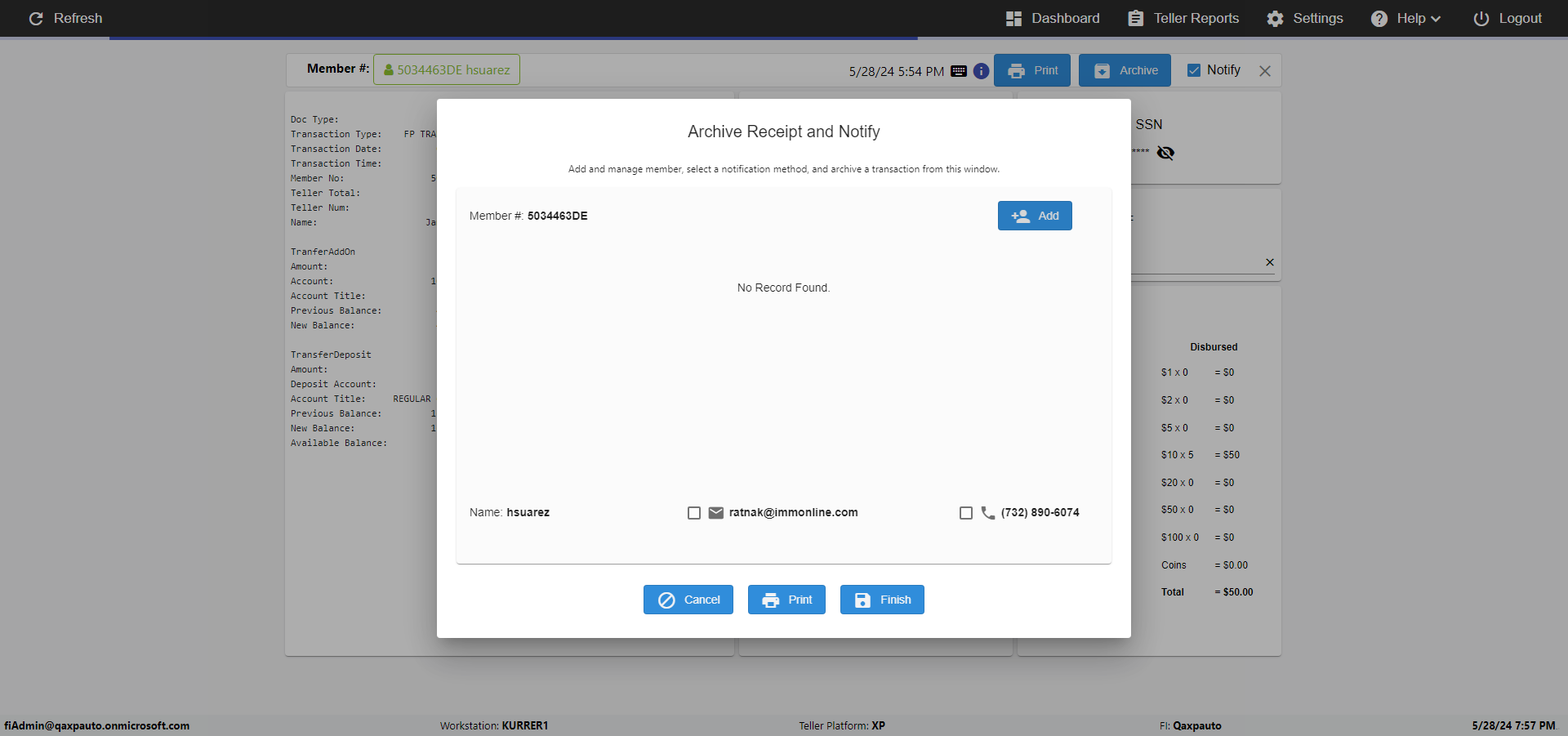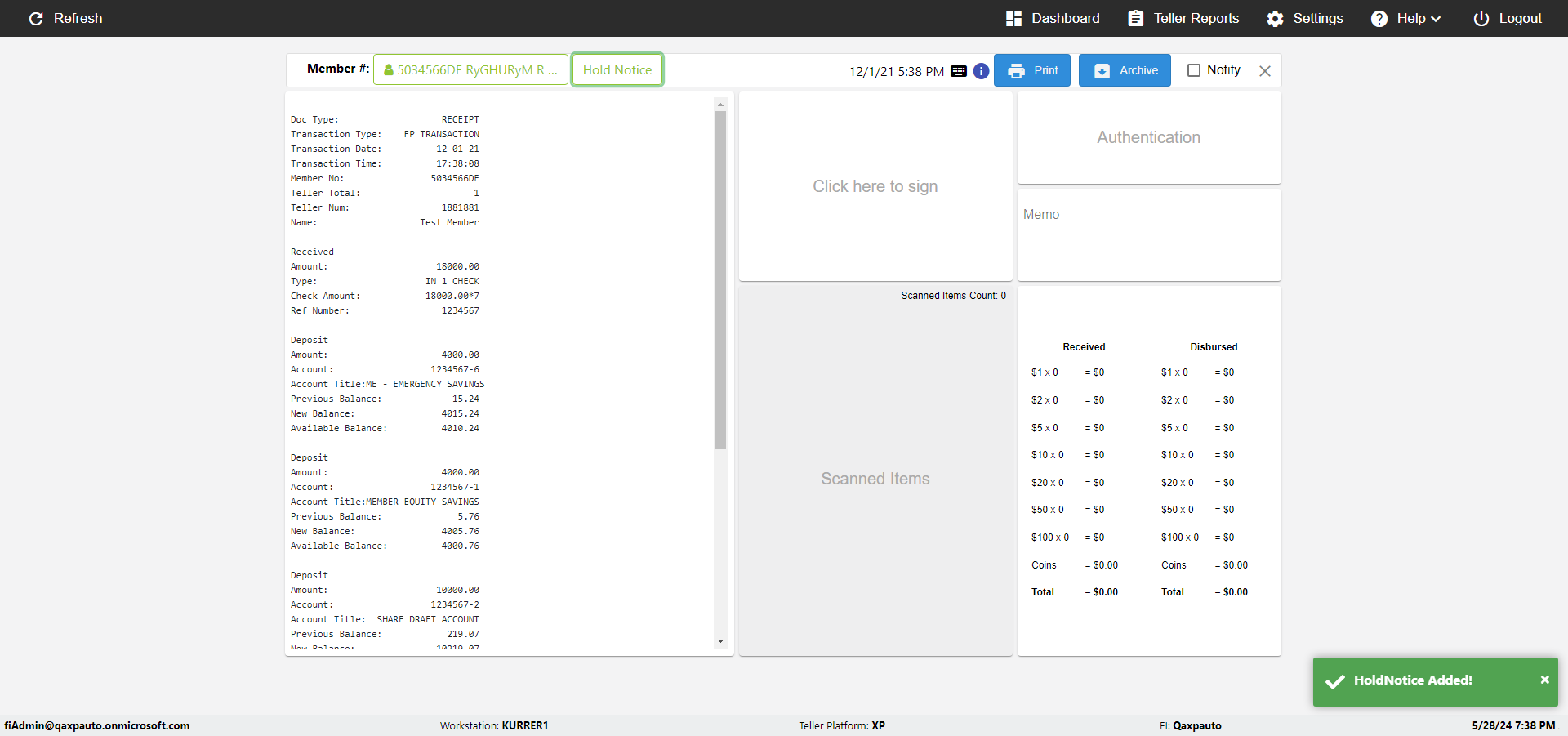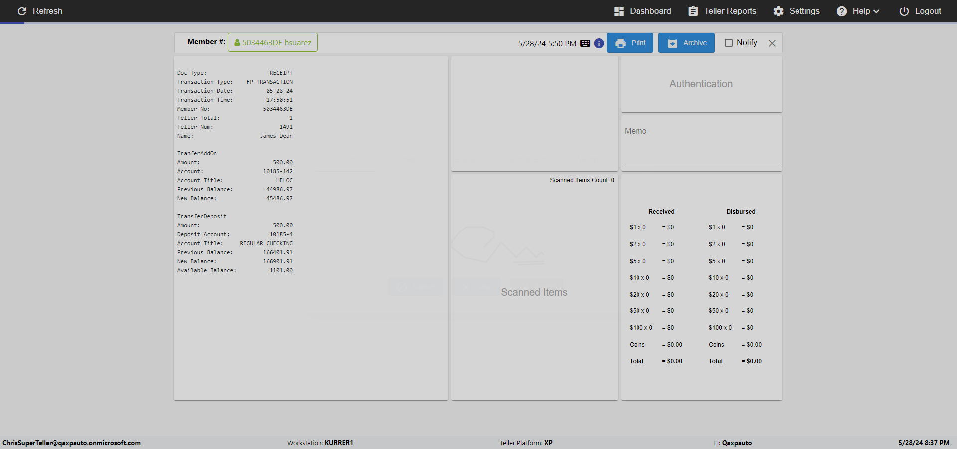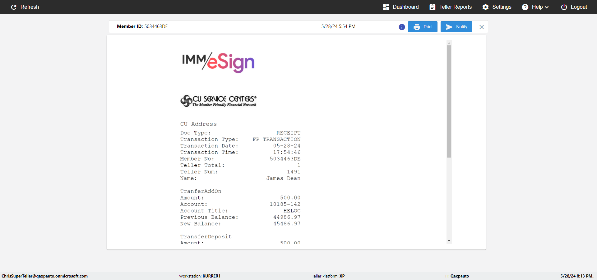 | {Toggel=, Archived Transactions=no, Description=verify touch signature in Receipt Page, Email=FALSE, Archive=FALSE, Document Type=, Notify=TRUE, SignatureTab=Touch,, DisbursedExpression=|-10*5, Operation=, Teller LastName=, Disbursed cash=, errorint=, TestID=verifyTouchSignatureEreceipt, Print=FALSE, DisbursedExpressionValue=TRUE, Phone=, ReceivedCashValue=FALSE, Member=, UserPwd=iMM2022!, Transtatus=Archived-false;Active-true;Error-false, Docment ID=, Teller=, Teller FirstName=Joe, errorMessage=, ReceivedExpressionValue=TRUE, Date=, Platfrom=, Received cash=, Transaction=, Header=, Expression=, Username=ChrisSuperTeller@Qaxpauto.onmicrosoft.com, DisbursedCashValue=FALSE, FullName=, ReceivedExpression=|+100*2, SMS=FALSE, Memo=} |