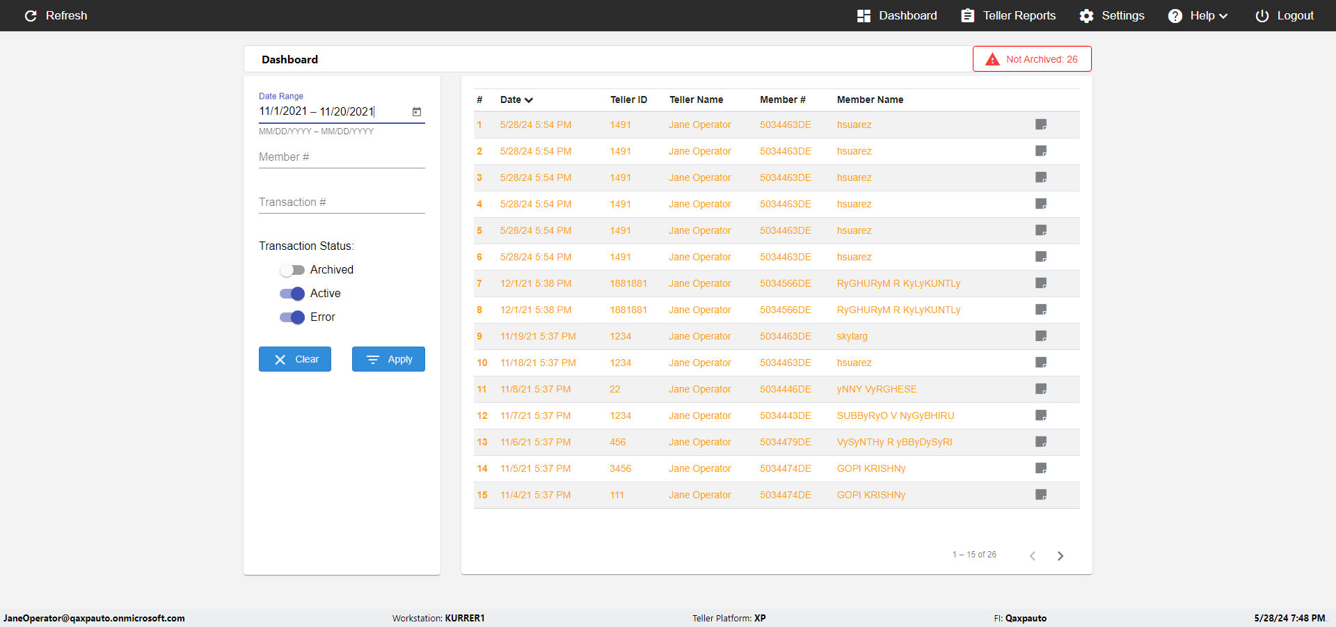 | {Toggel=TRUE, Archived Transactions=no, Description=verify MemberID And Archive Information Update (duplicate), Email=Hohn@email.com, Archive=, Document Type=, Notify=, SignatureTab=, DisbursedExpression=, Operation=, Teller LastName=, Disbursed cash=, errorint=, TestID=verifyMemberAddUpdateContactInfo, Print=, DisbursedExpressionValue=, Phone=(555) 021-3315, ReceivedCashValue=, Member=5034463, UserPwd=iMM2022!, Transtatus=Archived-false;Active-true;Error-false, Docment ID=, Teller=, Teller FirstName=, errorMessage=, ReceivedExpressionValue=, Date=11/01/2021 - 11/20/2021, Platfrom=, Received cash=, Transaction=, Header=, Expression=, Username=JaneOperator@Qaxpauto.onmicrosoft.com, DisbursedCashValue=, FullName=John, ReceivedExpression=, SMS=, Memo=} |