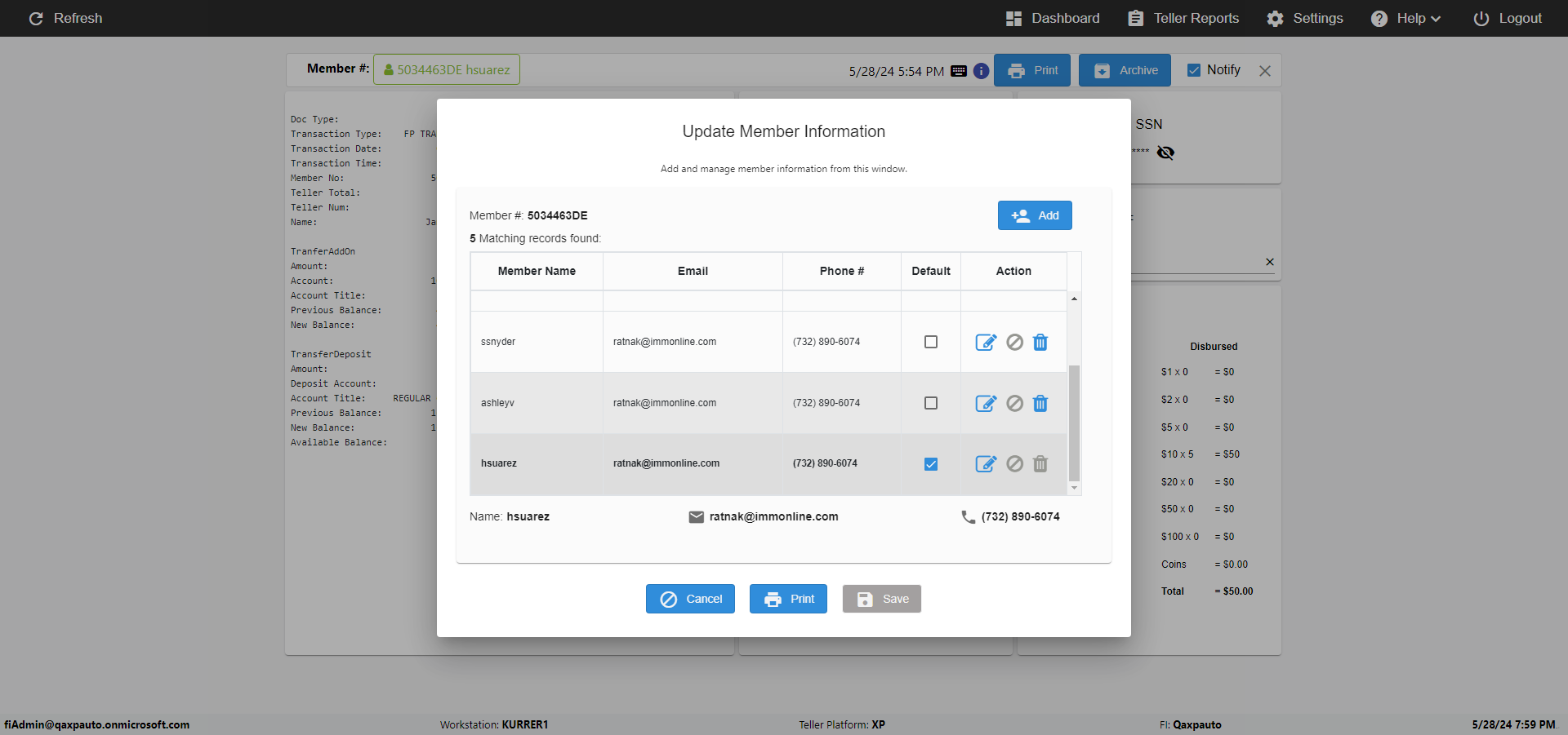 | {Toggel=TRUE, Archived Transactions=no, Description=verify Normal MemberID And Archive Information Update (Use Normal only), Email=Ratnak@immonline.com, Archive=, Document Type=, Notify=, SignatureTab=, DisbursedExpression=, Operation=, Teller LastName=, Disbursed cash=, errorint=, TestID=verifyNormalMemberAddUpdateContactInfo, Print=, DisbursedExpressionValue=, Phone=(732) 890-6074, ReceivedCashValue=, Member=5034463, UserPwd=iMM2022!, Transtatus=Archived-false;Active-true;Error-false, Docment ID=, Teller=, Teller FirstName=, errorMessage=, ReceivedExpressionValue=, Date=11/01/2021 - 11/20/2021, Platfrom=, Received cash=, Transaction=, Header=, Expression=, Username=JoeTeller@Qaxpauto.onmicrosoft.com, DisbursedCashValue=, FullName=Johna, ReceivedExpression=, SMS=, Memo=} |