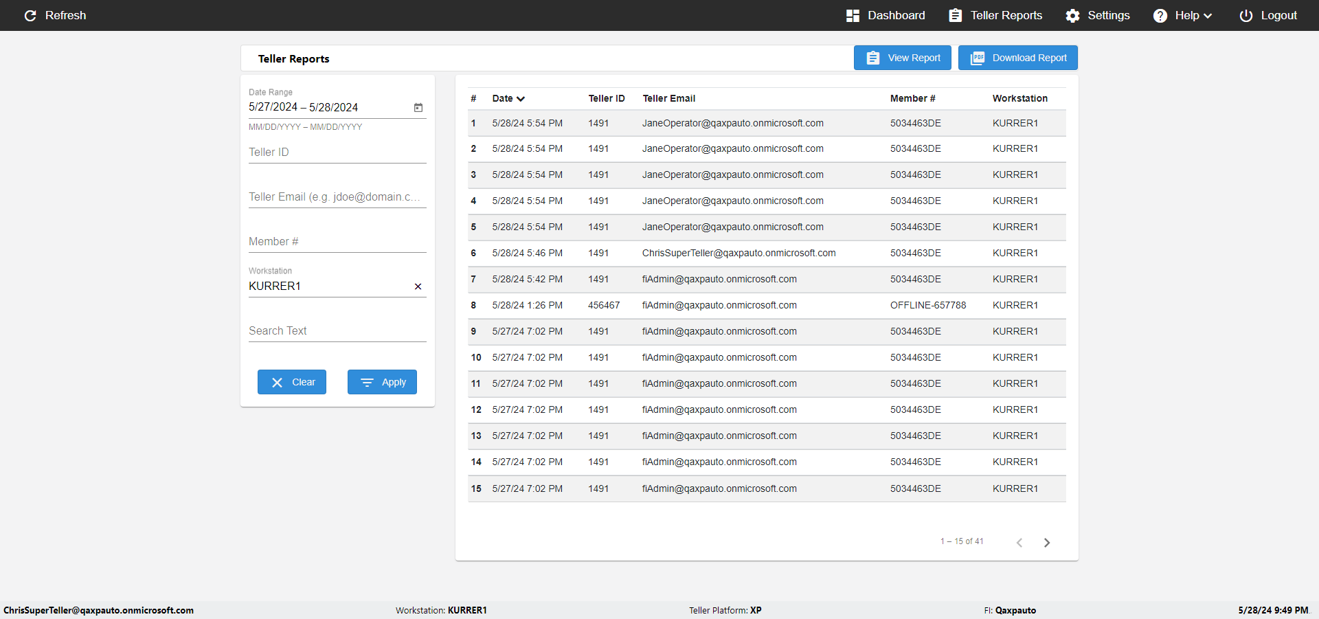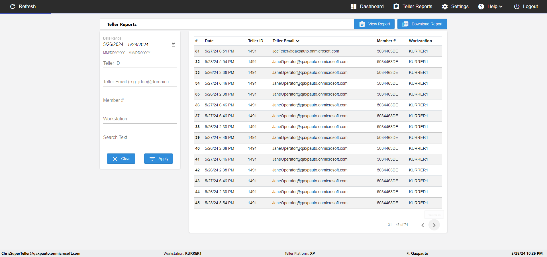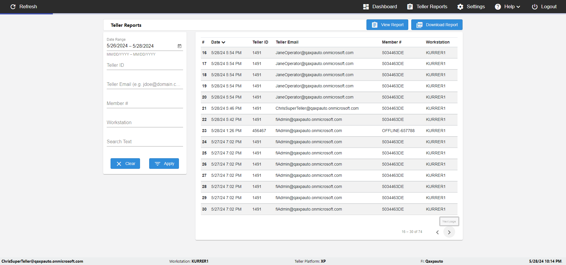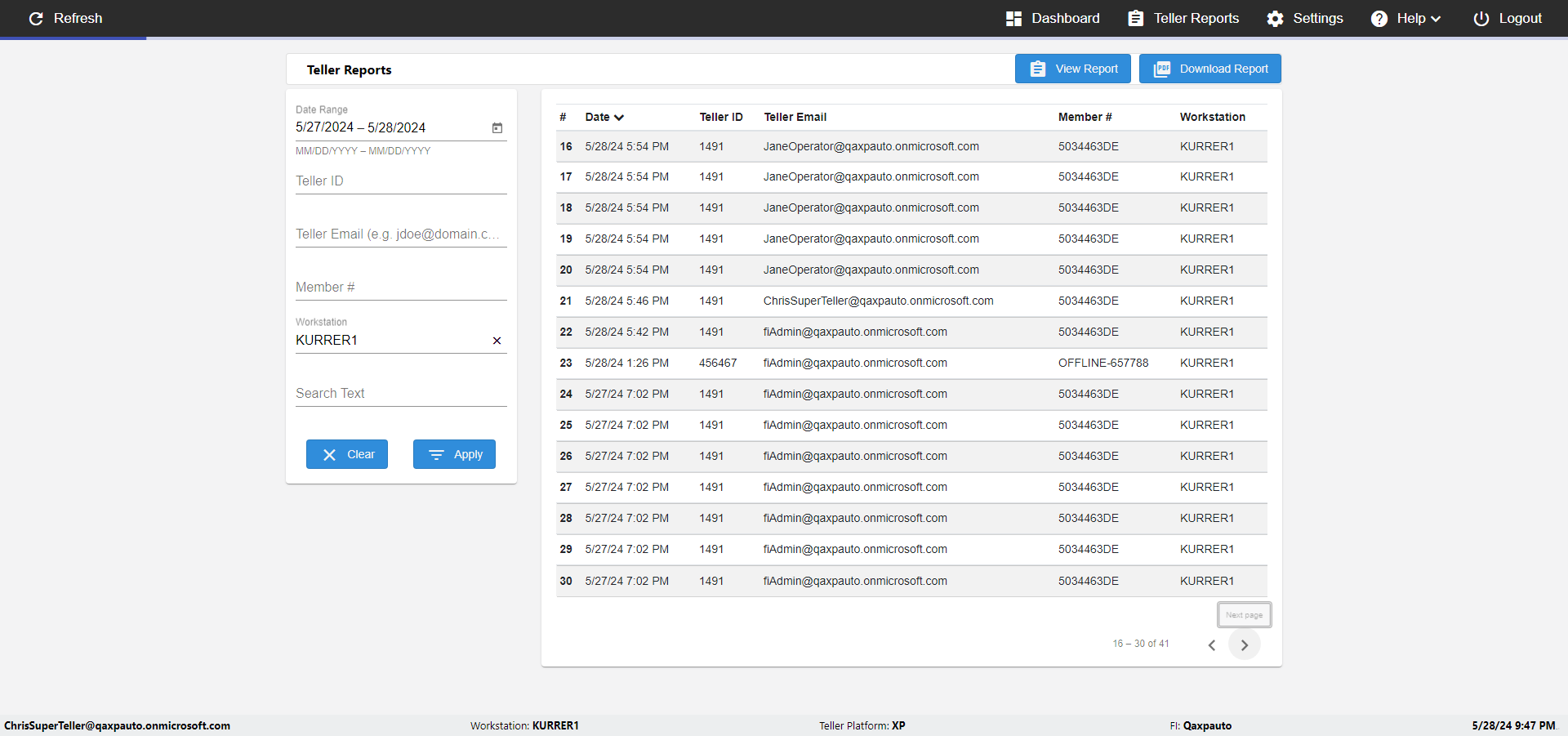 | 09:35:08 PM | Entered 'Teller Email' : ChrisSuperTeller@Qaxpauto.onmicrosoft.com [ScreenShot] | |