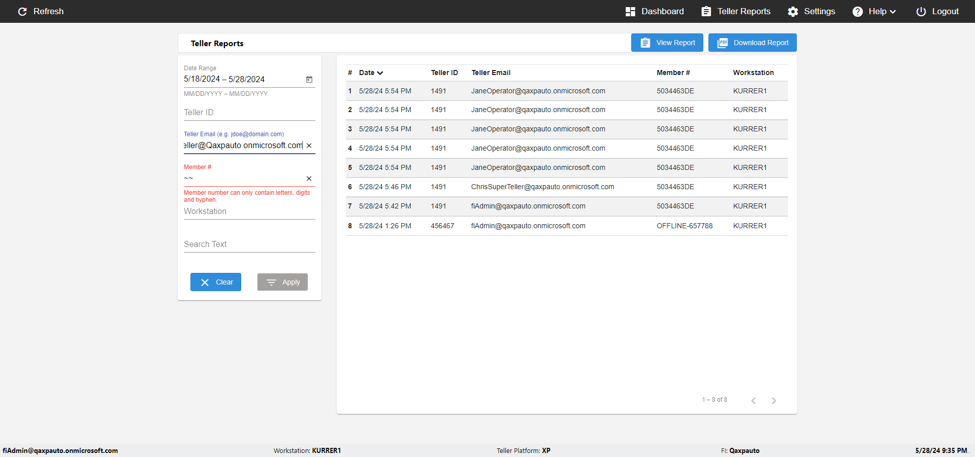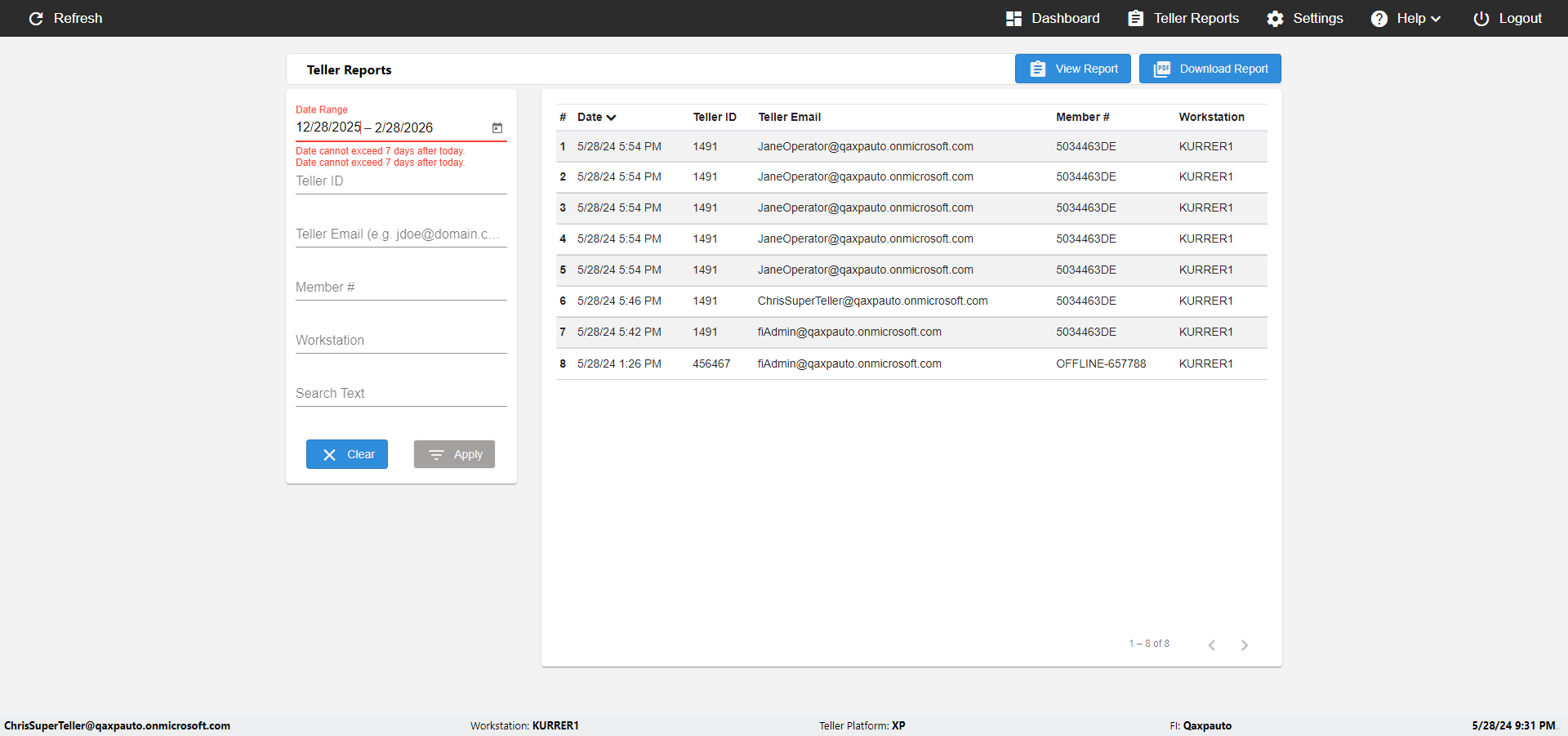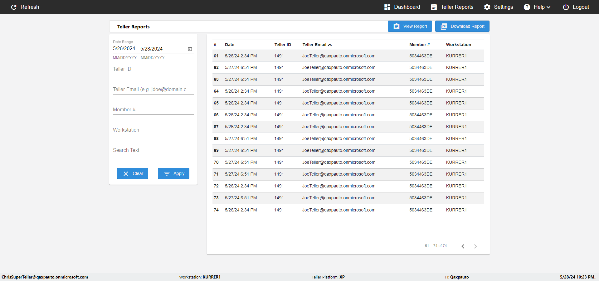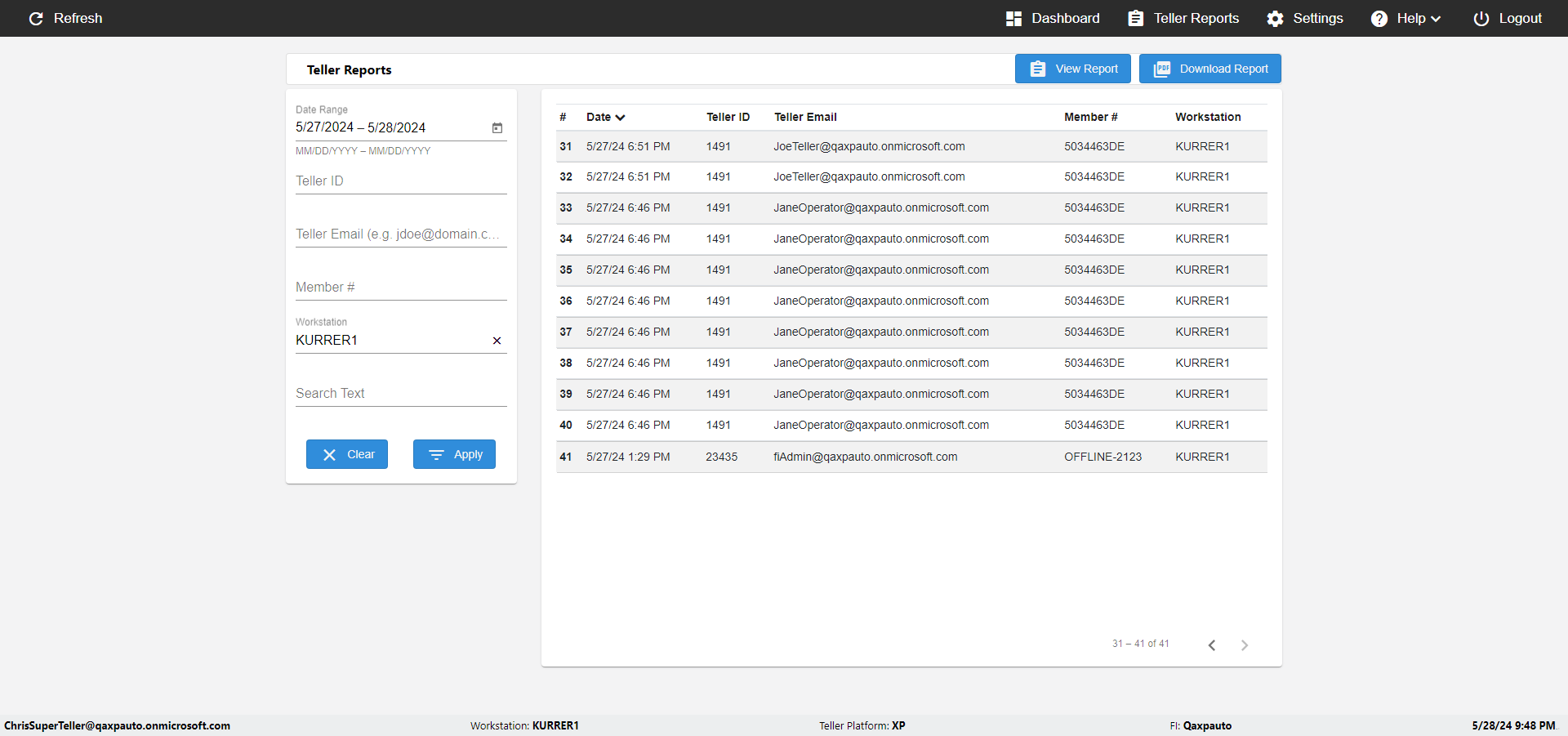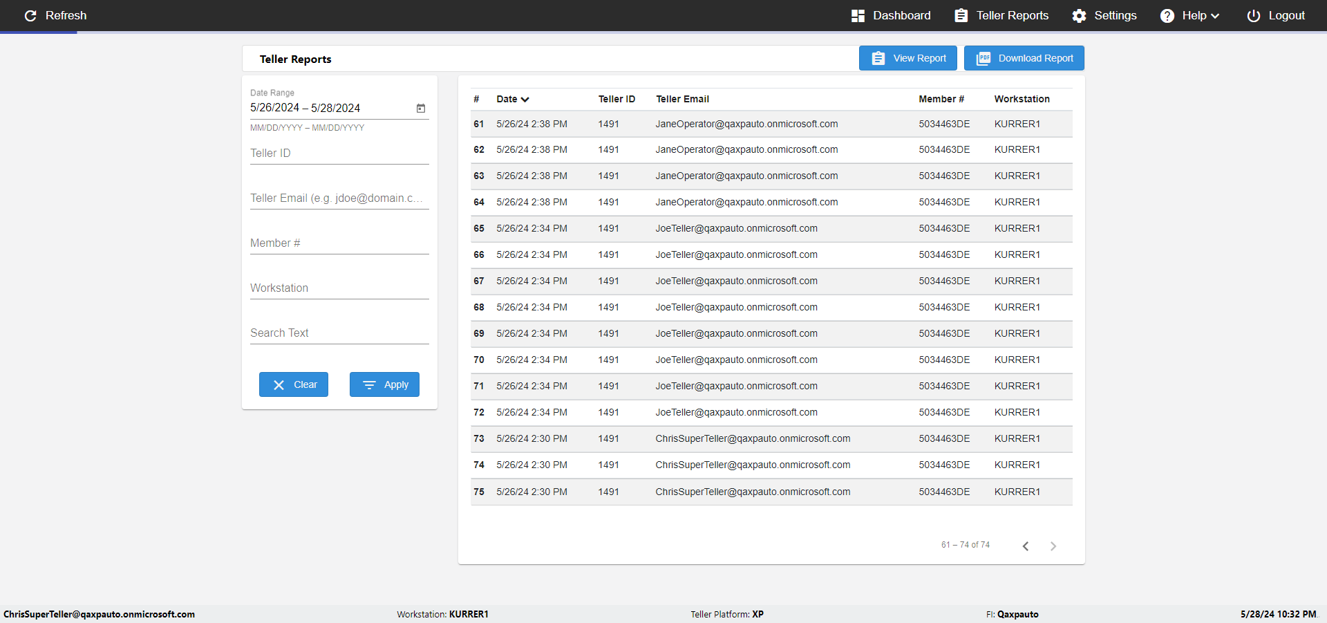 | 09:35:08 PM | Entered 'Teller Email' : ChrisSuperTeller@Qaxpauto.onmicrosoft.com [ScreenShot] | |