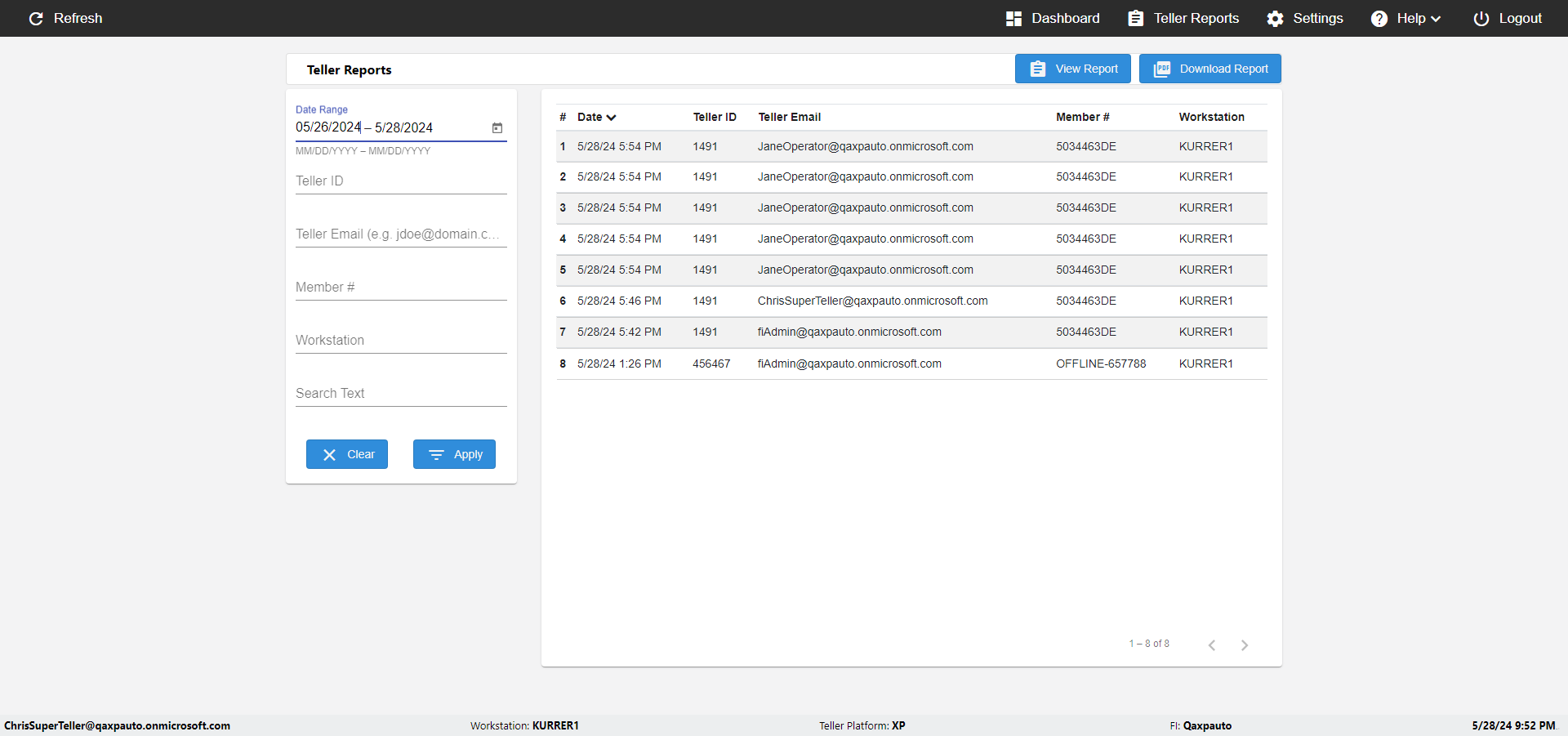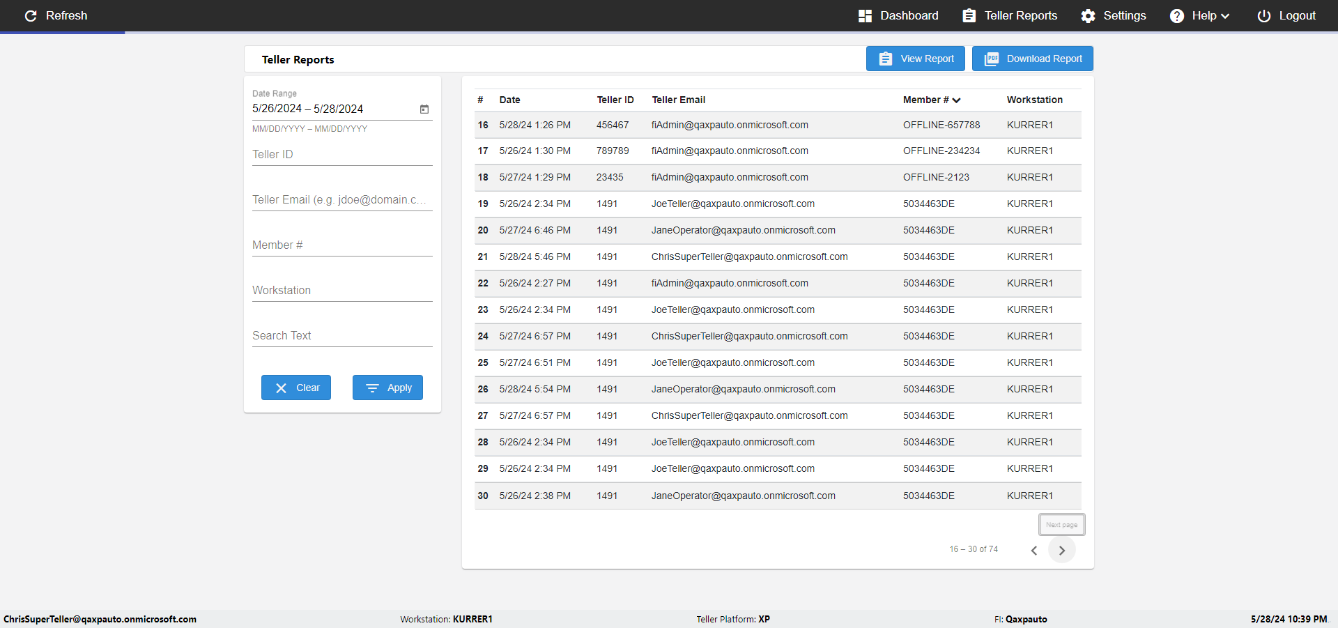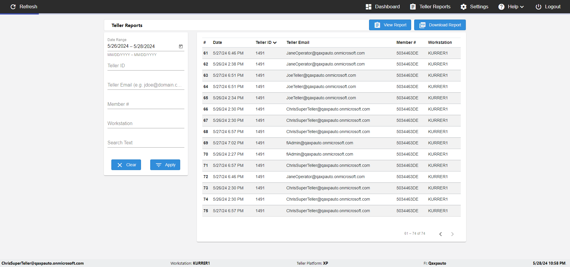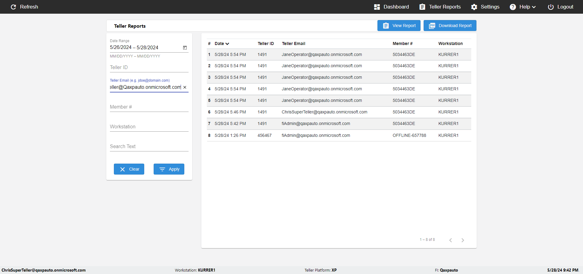 | 09:35:08 PM | Entered 'Teller Email' : ChrisSuperTeller@Qaxpauto.onmicrosoft.com [ScreenShot] | |