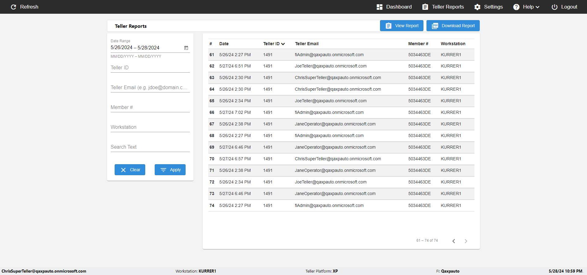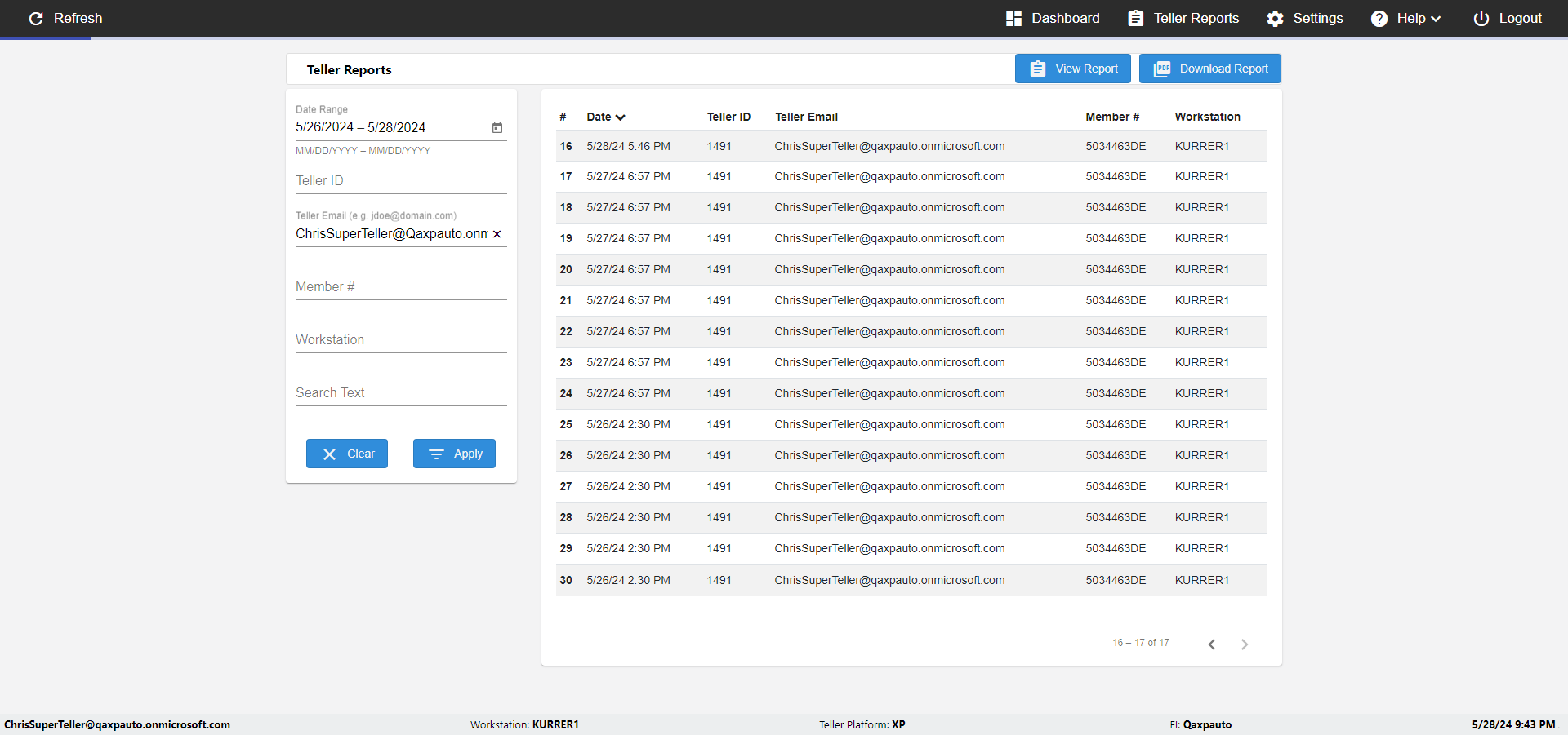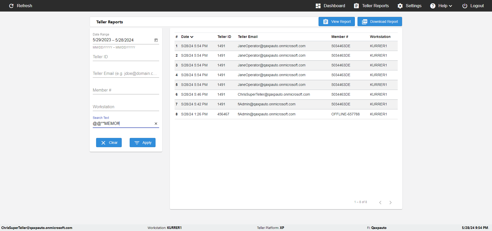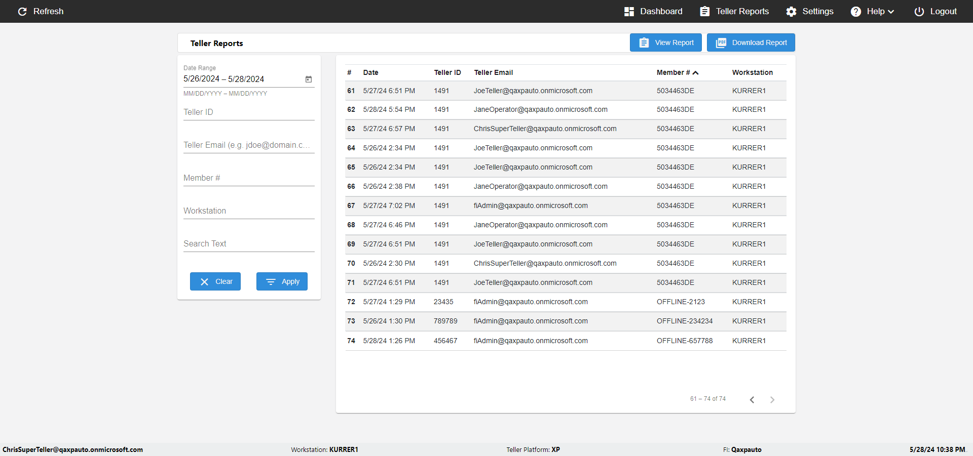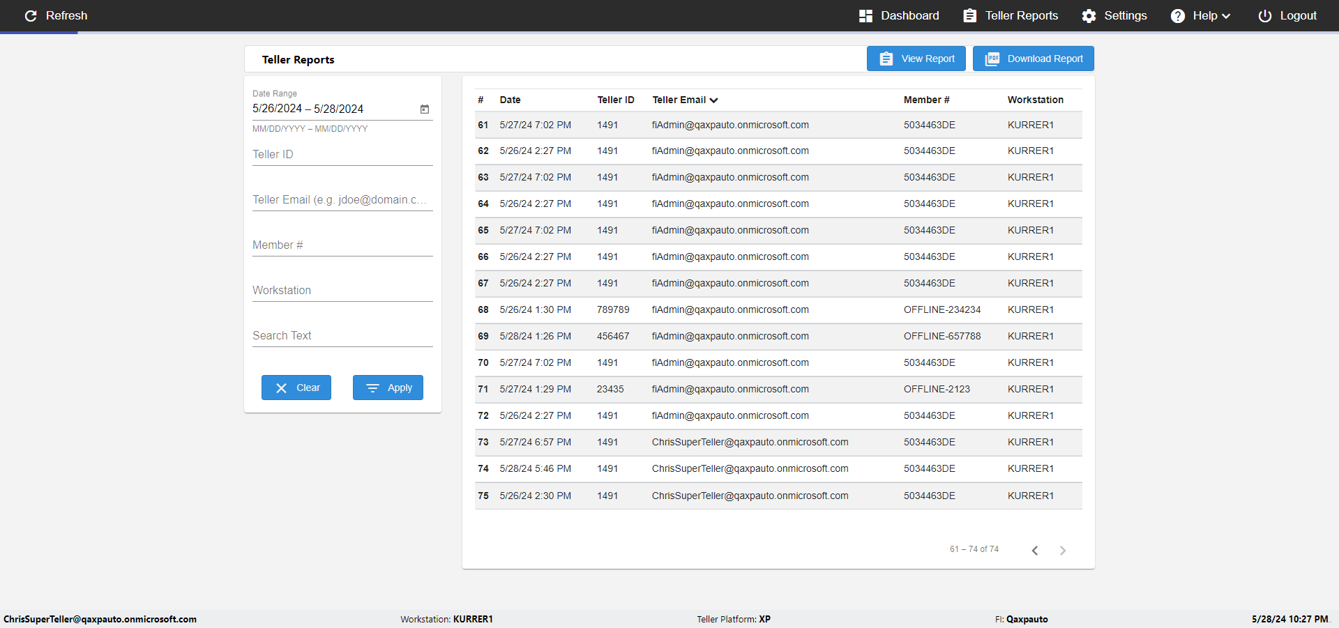 | 09:35:08 PM | Entered 'Teller Email' : ChrisSuperTeller@Qaxpauto.onmicrosoft.com [ScreenShot] | |