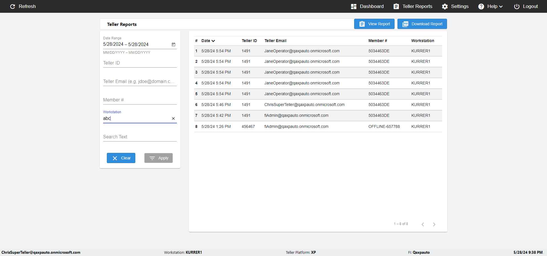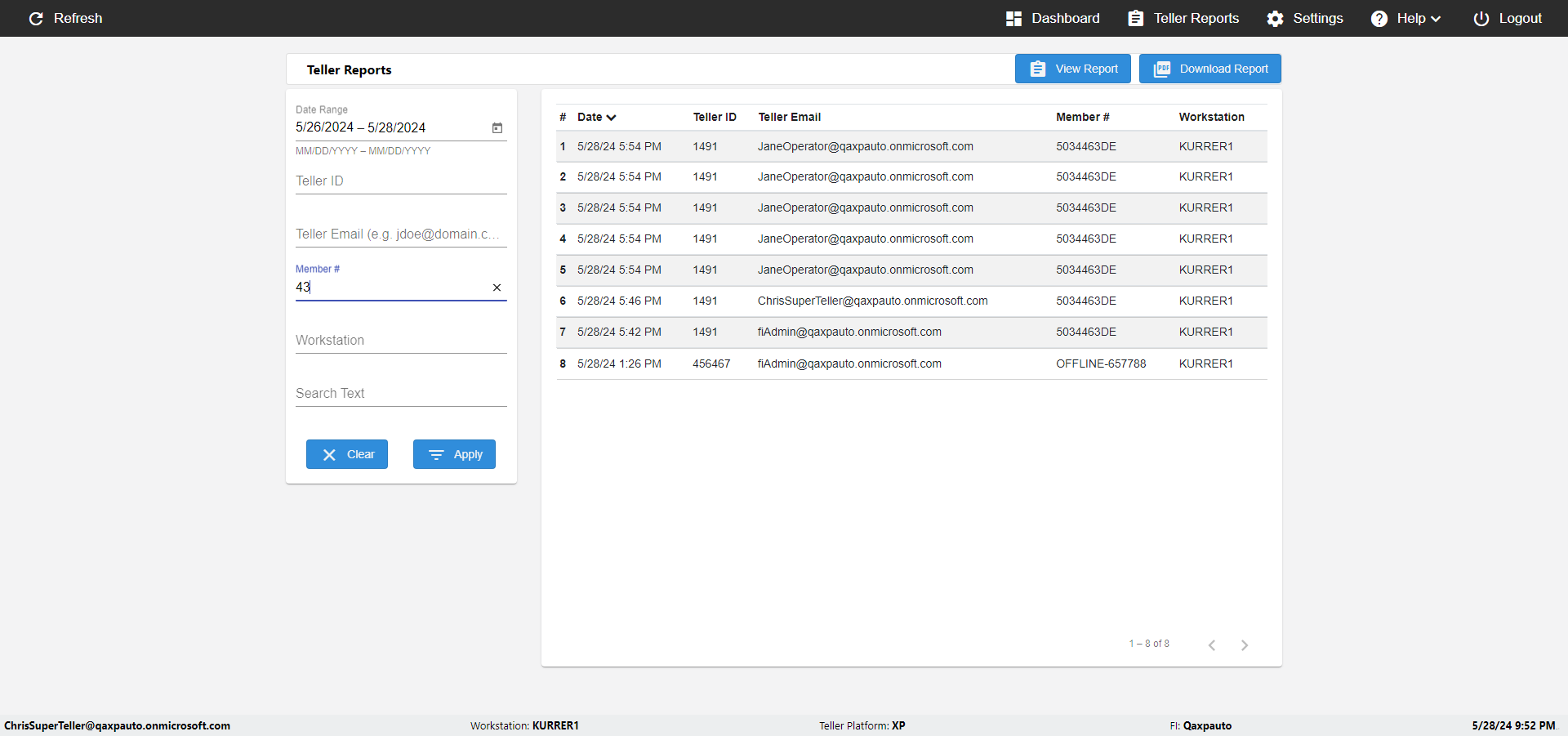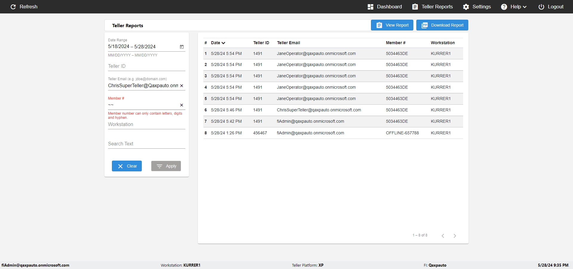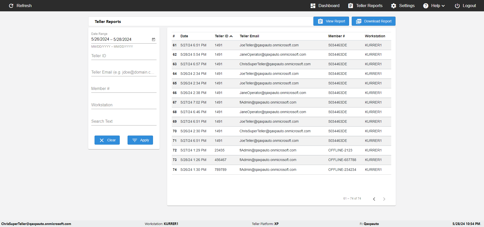 | 09:35:08 PM | Entered 'Teller Email' : ChrisSuperTeller@Qaxpauto.onmicrosoft.com [ScreenShot] | |