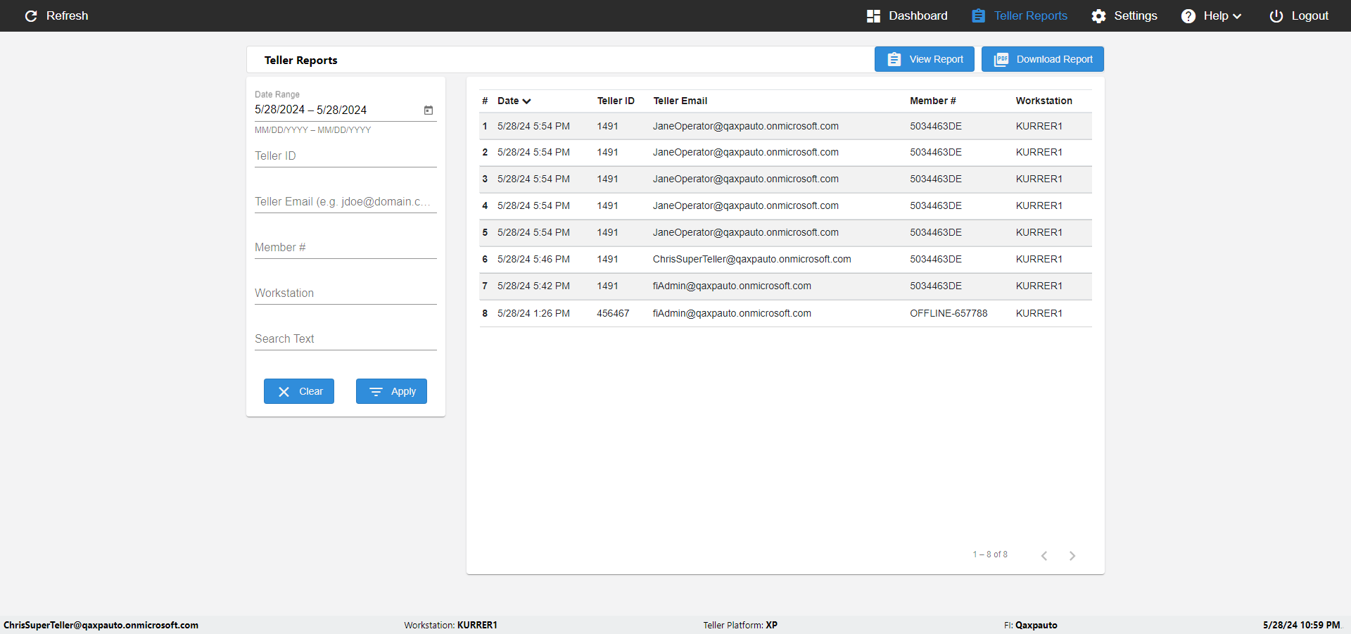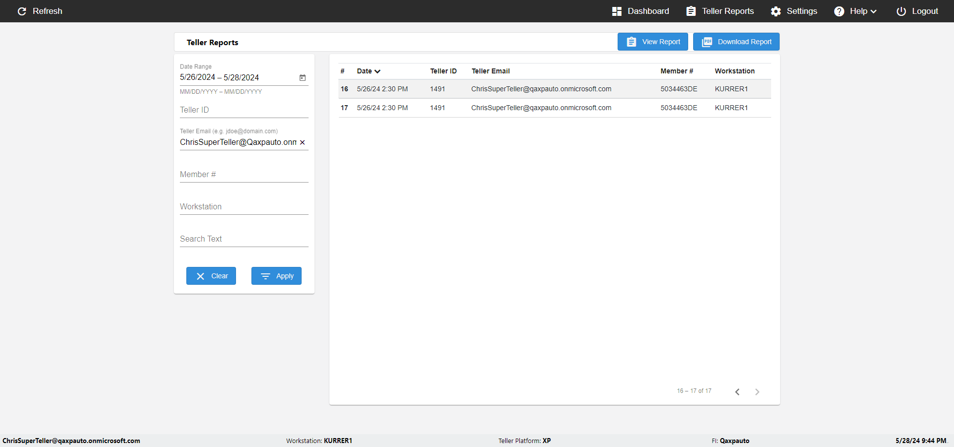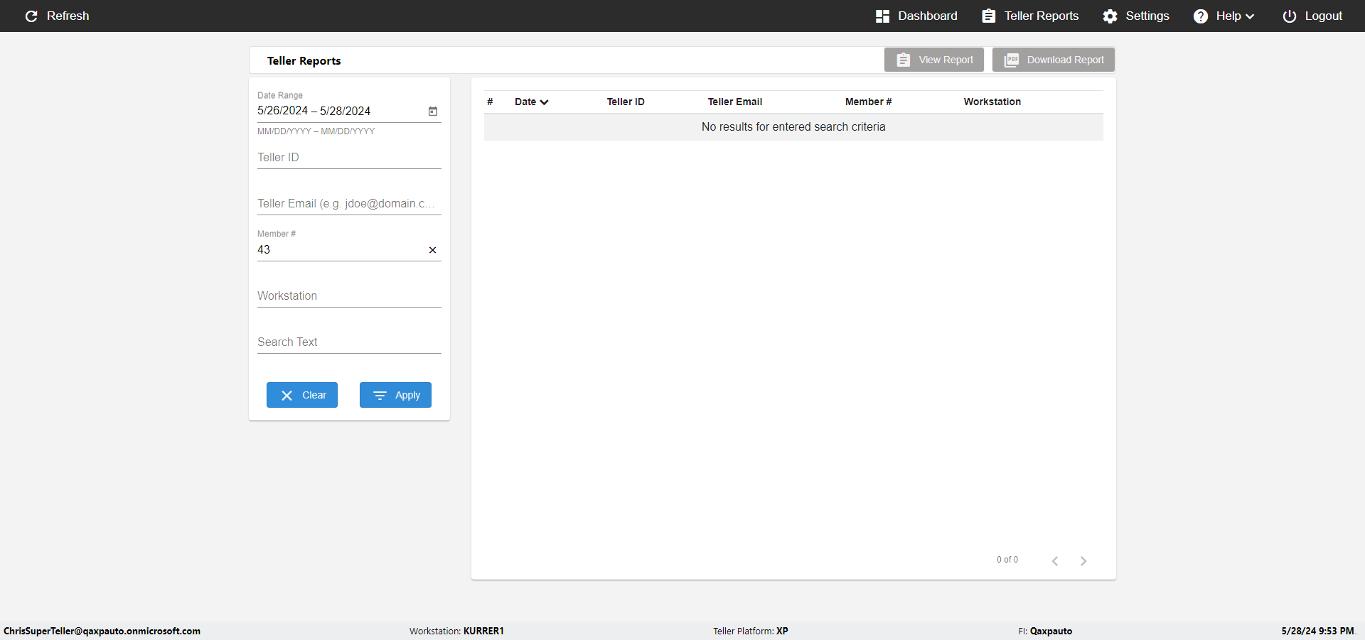 | 10:43:29 PM | ***** verify Search Elements In Report Page with Date and Teller ID ***** | |