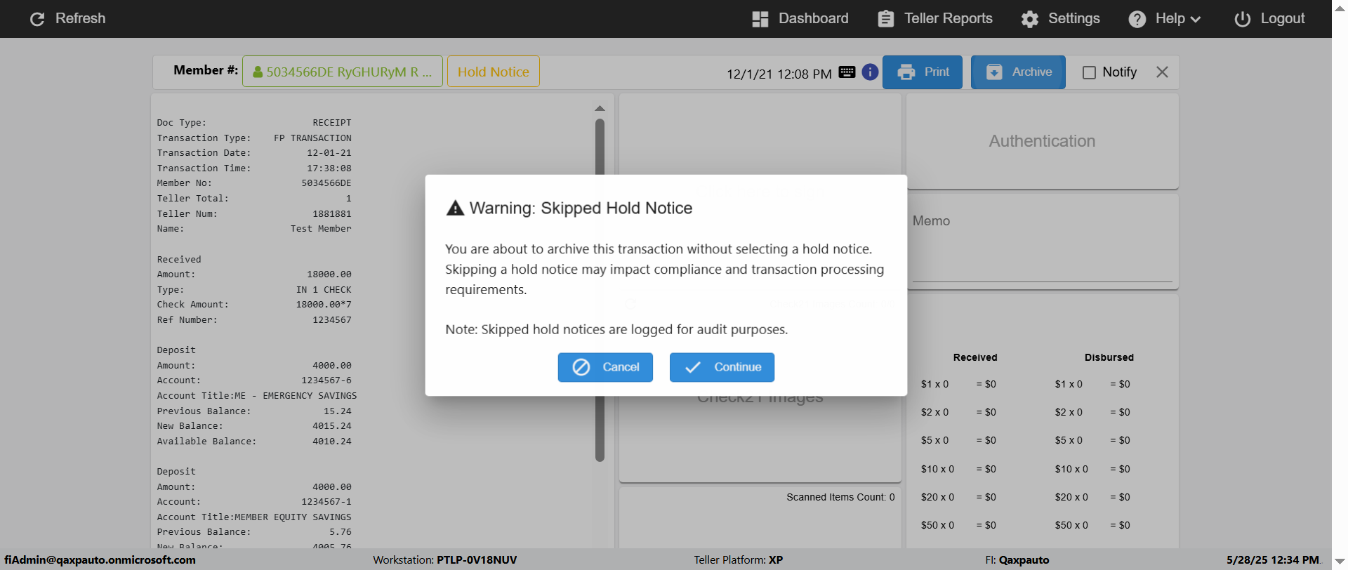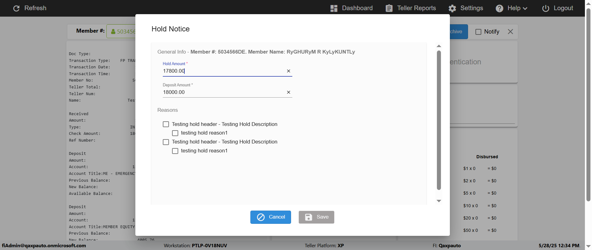 ({Toggel=, Archived Transactions=no, Description=verify Hold Notice Warning Message with Reasons Not Saved, Email=, Archive=, Document Type=, Notify=, SignatureTab=, DisbursedExpression=, Operation=, Teller LastName=, Disbursed cash=, errorint=, TestID=verifyHoldNoticeWarningWithoutReasons, Print=, DisbursedExpressionValue=, Phone=, ReceivedCashValue=, Member=5034566, UserPwd=iMM2022!, Transtatus=Archived-false;Active-true;Error-false, Docment ID=, Teller=1881881, Teller FirstName=, errorMessage=, ReceivedExpressionValue=, Date=, Platfrom=Enable Hold Notice-true; Hold Notice Warning-true;, Received cash=, Transaction=, Header=, Expression=, Username=fiAdmin@Qaxpauto.onmicrosoft.com, DisbursedCashValue=, FullName=, ReceivedExpression=, SMS=, Memo=})