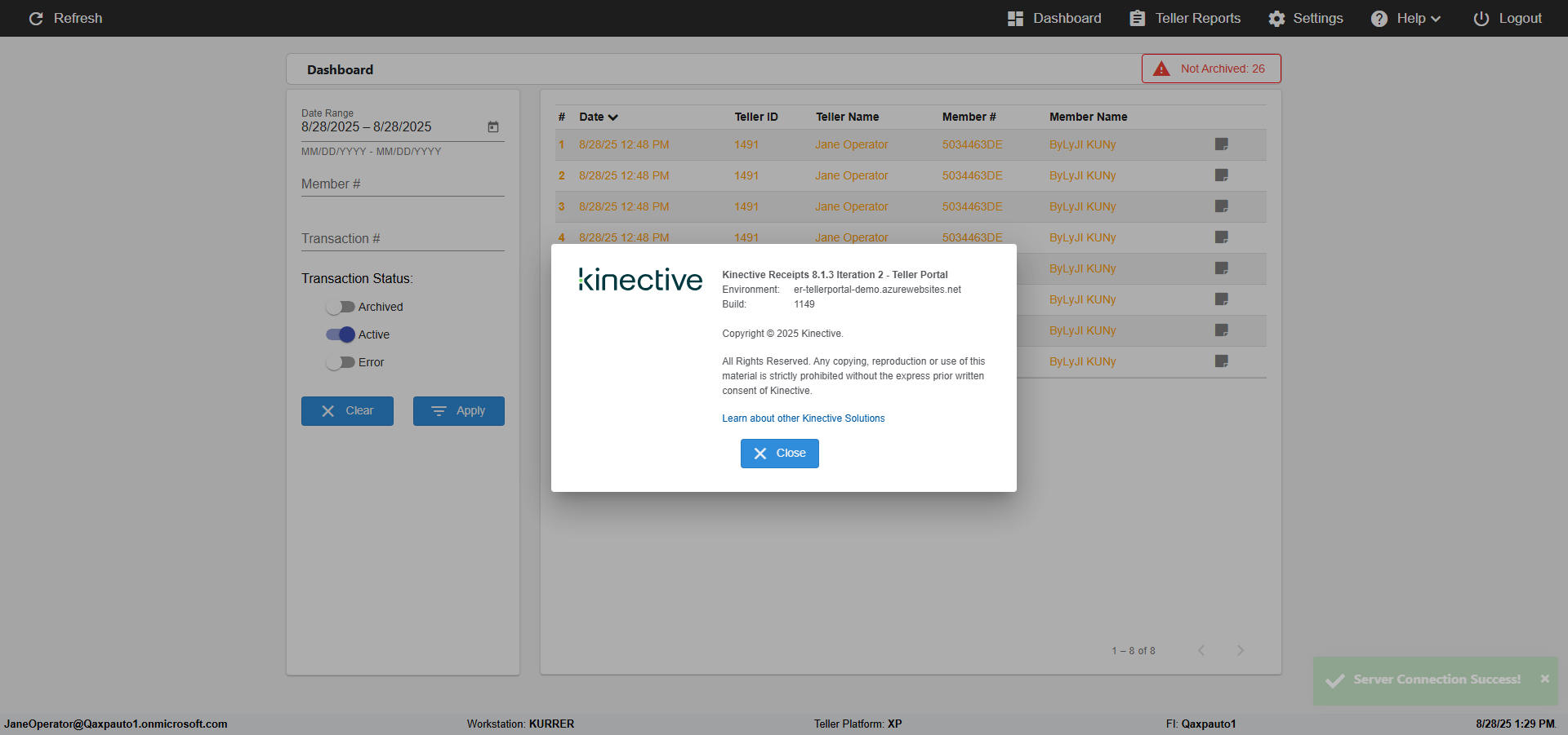 | 01:28:21 PM | ***** verify Heaader Items in Teller Portal ***** | |