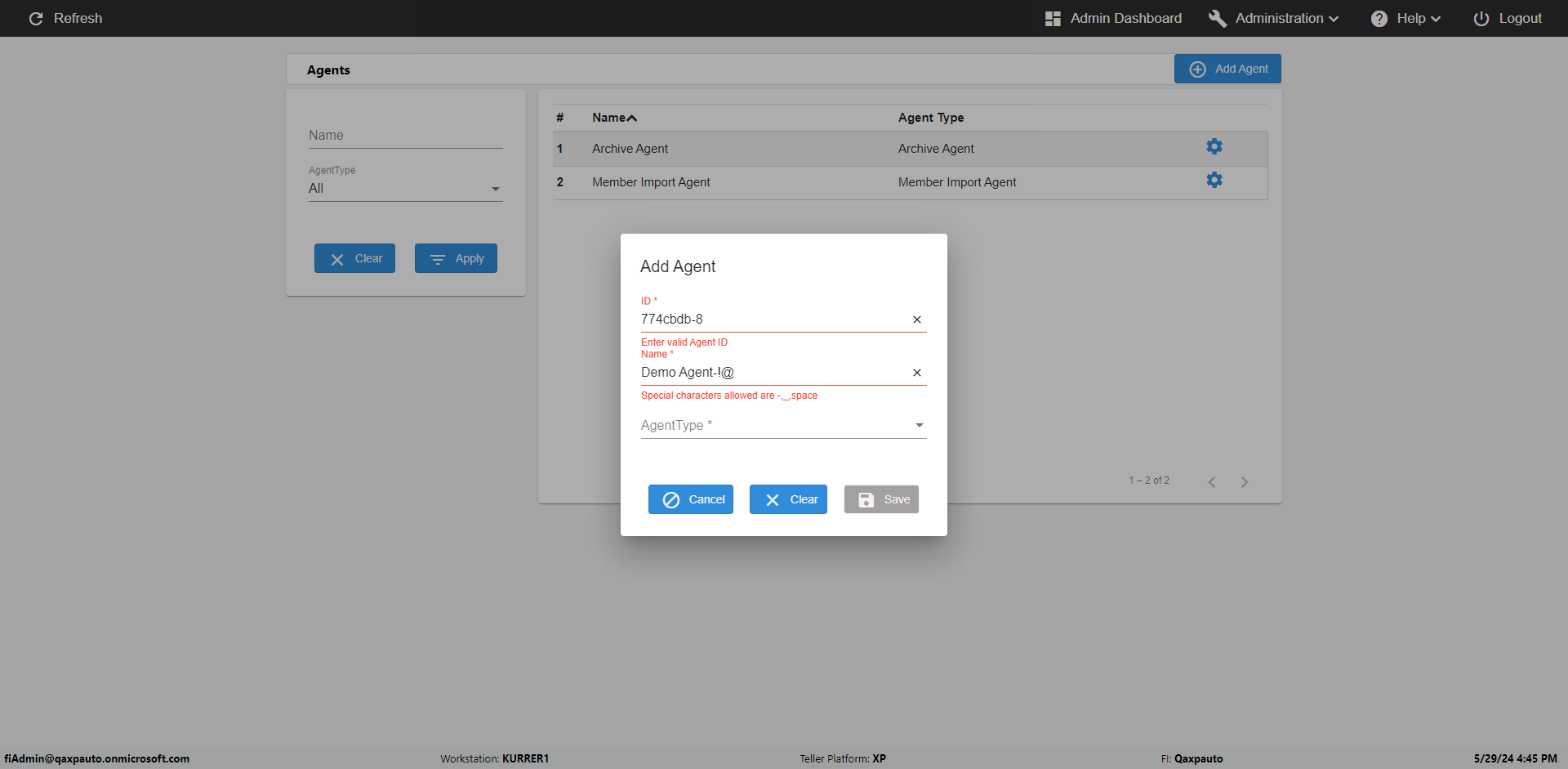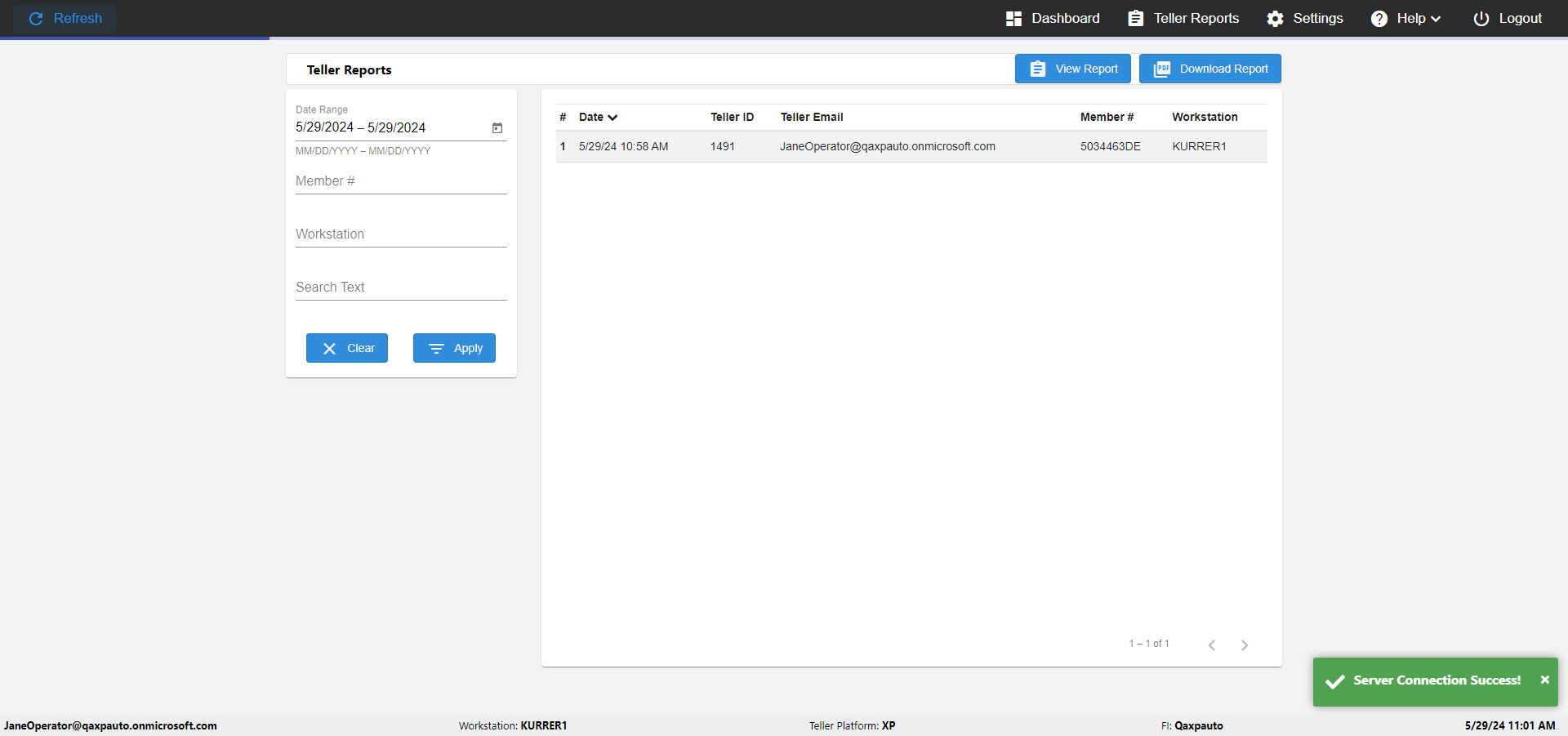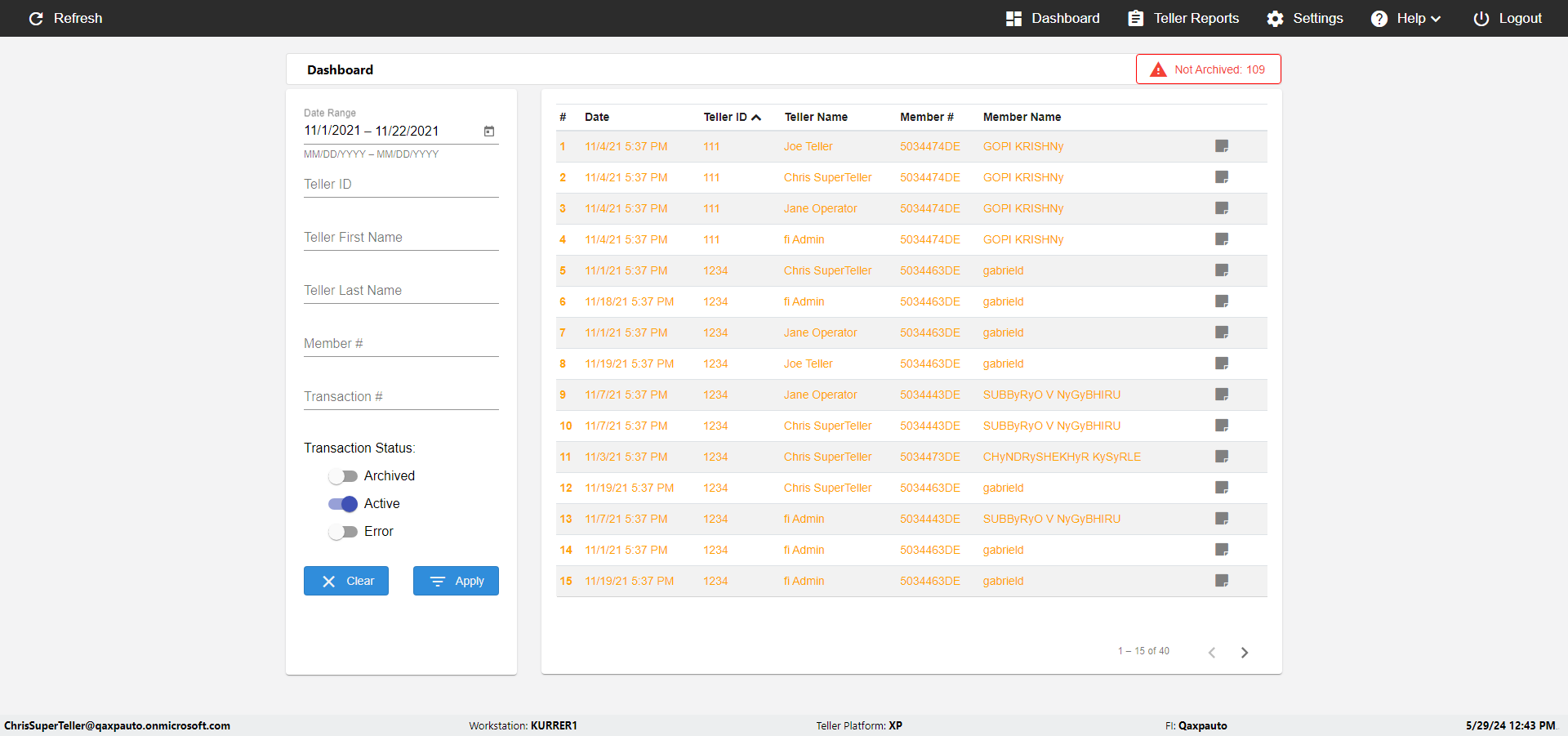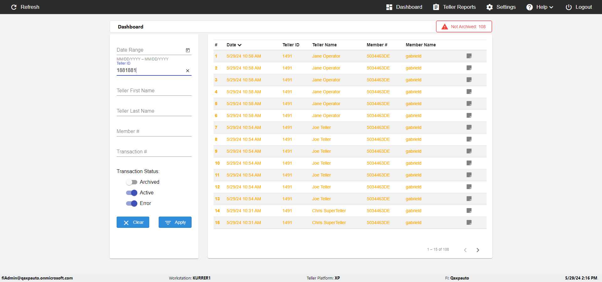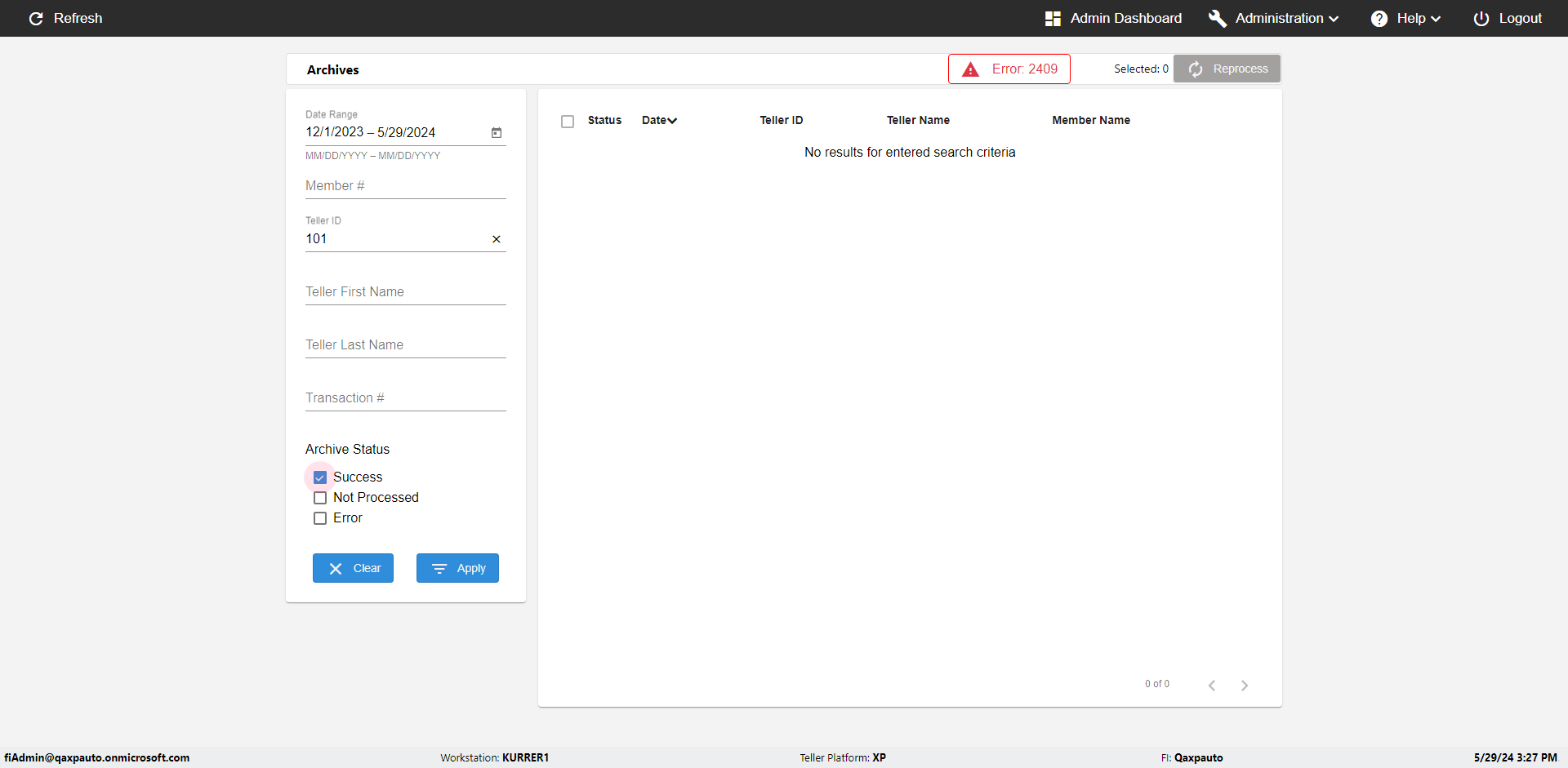 | {UserPwd=iMM2022!, Description=verify Error Messages in Report Page for Teller ID, Teller ID=%&^heg, errorMessage=Special characters not allowed., Teller Email=, View=, Date=, Clear=, Workstation=, errorint=1, TestID=verifyErrorMessagesInReports, Transaction=, Header=, Username=ChrisSuperTeller@Qaxpauto.onmicrosoft.com, Export=, Member #=, Search Text=, Level=} |