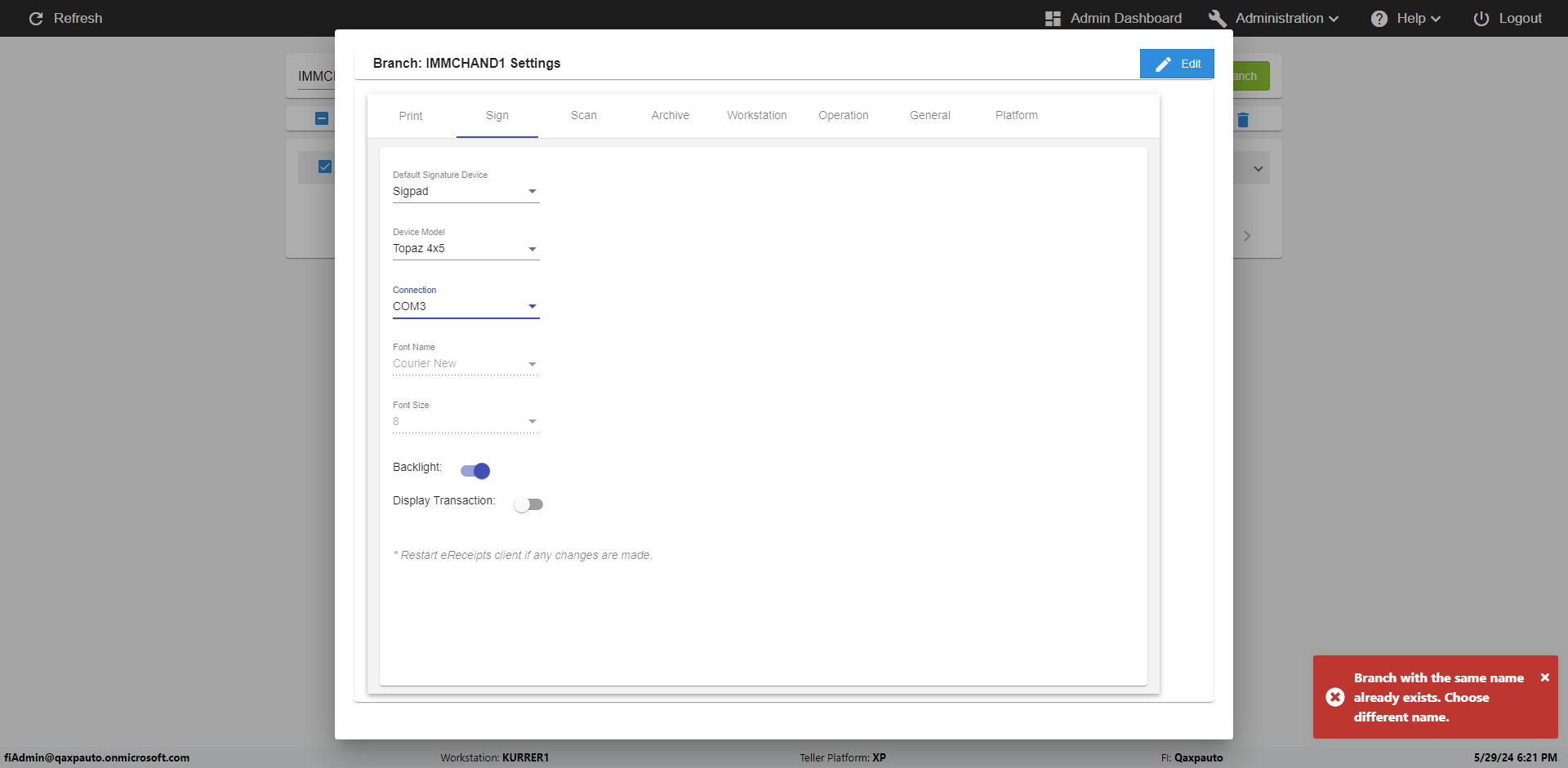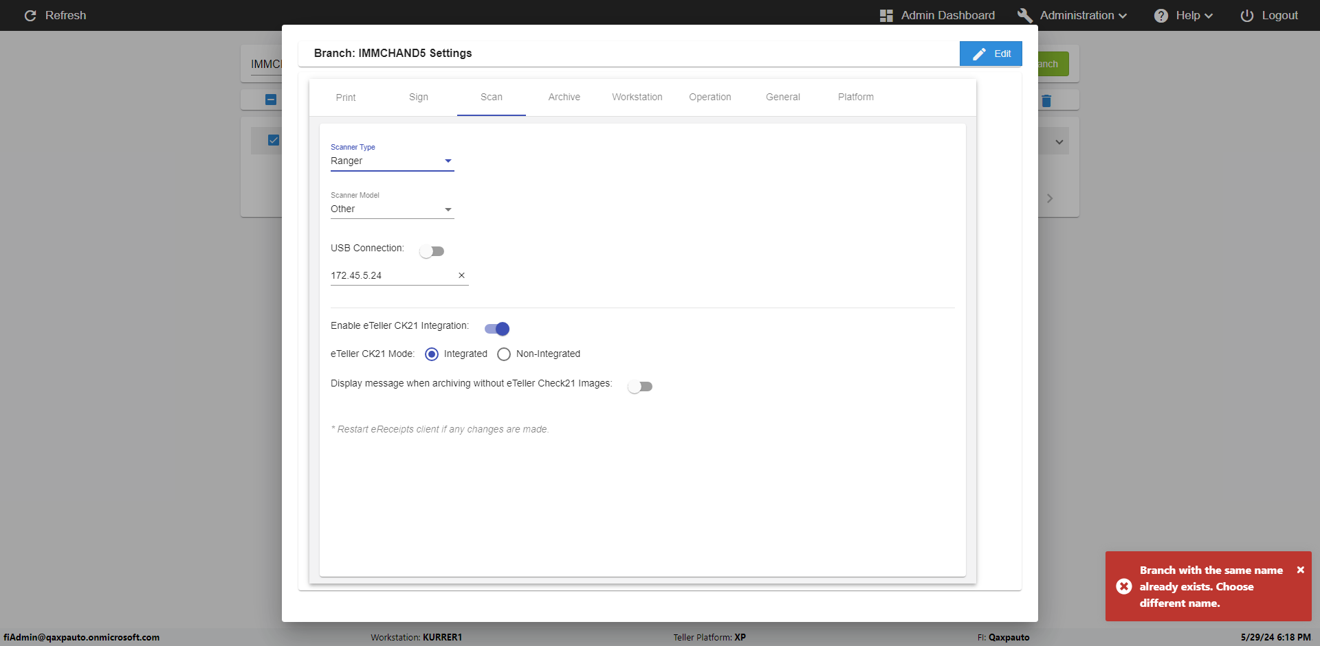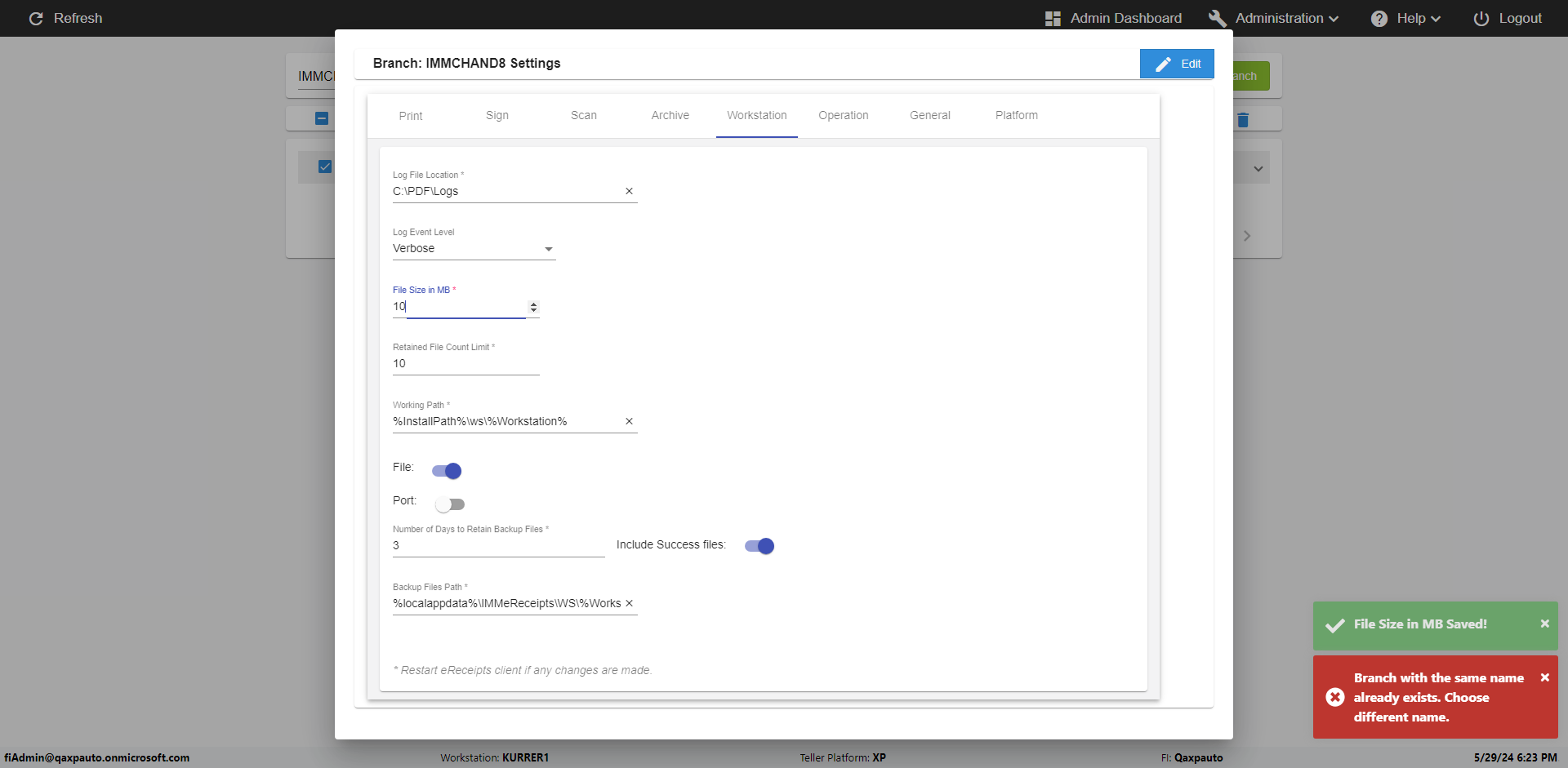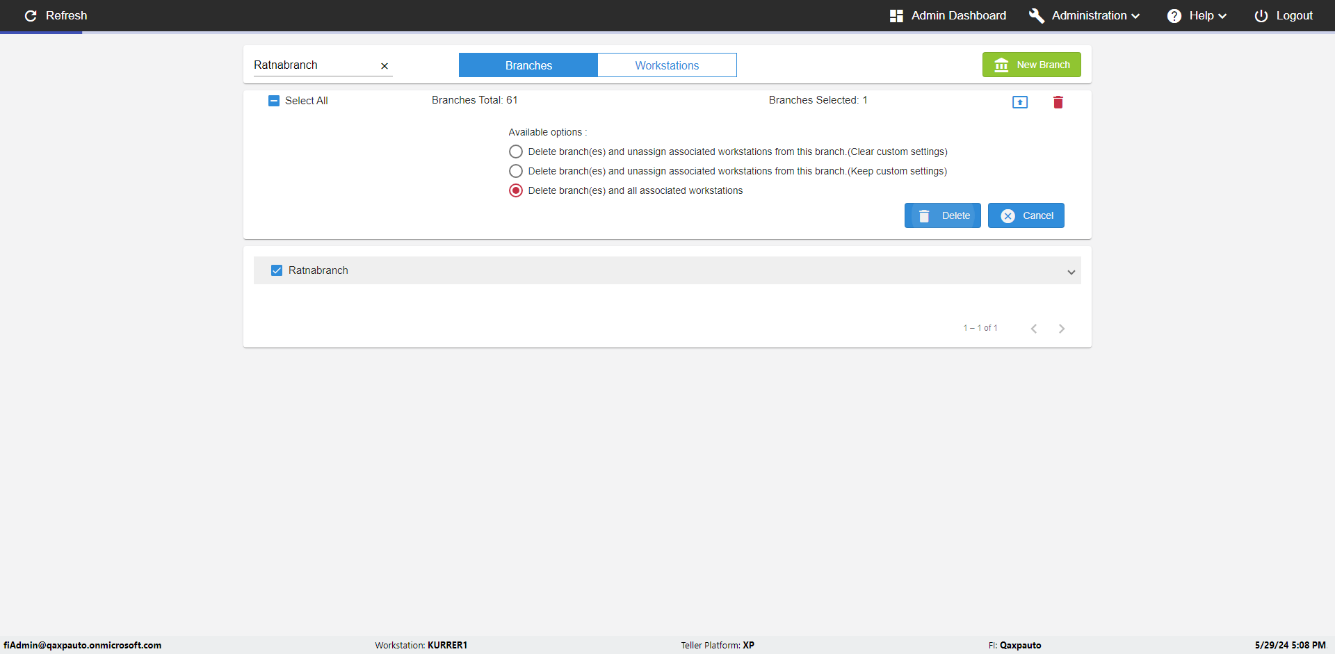 | {Archived Transactions=, Archive=, print signatur=, Name=, MultipleWorkstation=, WorkstationDeleteOption=, BranchName=QABranch, Agent=, UserPwd=iMM2022!, BranchDeleteOption=, Receipt=, Role=, Brand=, Print signature line=, TimeZone=, Header=, MappedOption=, Scan=, PortNumber=, FromWks=, FromBranch=Sun National, Description=verify Branch In Branches Page, weeks=, Operation=, Clear=, TestID=verifyBranchInBranchesPage, Phone=, WorkstationName=, ToBranch=Test Branch, ToWks=, Subscription Names=, FilePath=, Transtatus=Archived-false;Active-true;Error-false, Report=, Index_Field_Name=, Agents=, Text=, Hold Notice=, Suppress=, SchedualType=, Date=, Platfrom=, GroupId=, print Disburstments=, SMTP=, Imaging System=, MultipleBranches=, Username=fiAdmin@Qaxpauto.onmicrosoft.com, Sign=} |