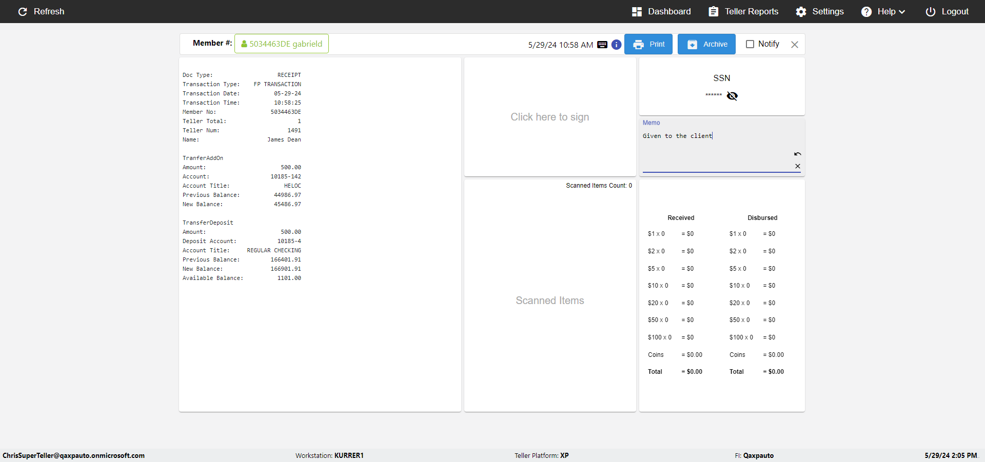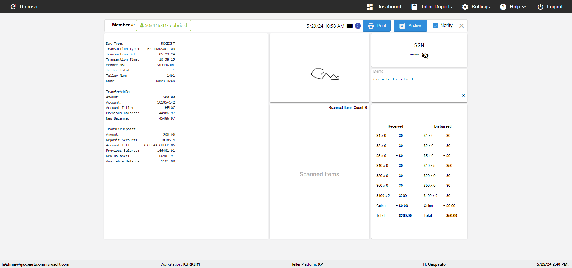 | {Toggel=, Archived Transactions=no, Description=, Email=, Archive=, Document Type=SSN, Notify=, SignatureTab=, DisbursedExpression=, Operation=, Teller LastName=, Disbursed cash=, errorint=, TestID=verifyAuthenticationMemoAndScannedItemscardInReceiptPage, Print=, DisbursedExpressionValue=, Phone=, ReceivedCashValue=, Member=, UserPwd=iMM2022!, Transtatus=Archived-false;Active-true;Error-false, Docment ID=216554, Teller=, Teller FirstName=, errorMessage=, ReceivedExpressionValue=, Date=, Platfrom=, Received cash=, Transaction=, Header=, Expression=, Username=ChrisSuperTeller@Qaxpauto.onmicrosoft.com, DisbursedCashValue=, FullName=, ReceivedExpression=, SMS=, Memo=Given to the client} |
