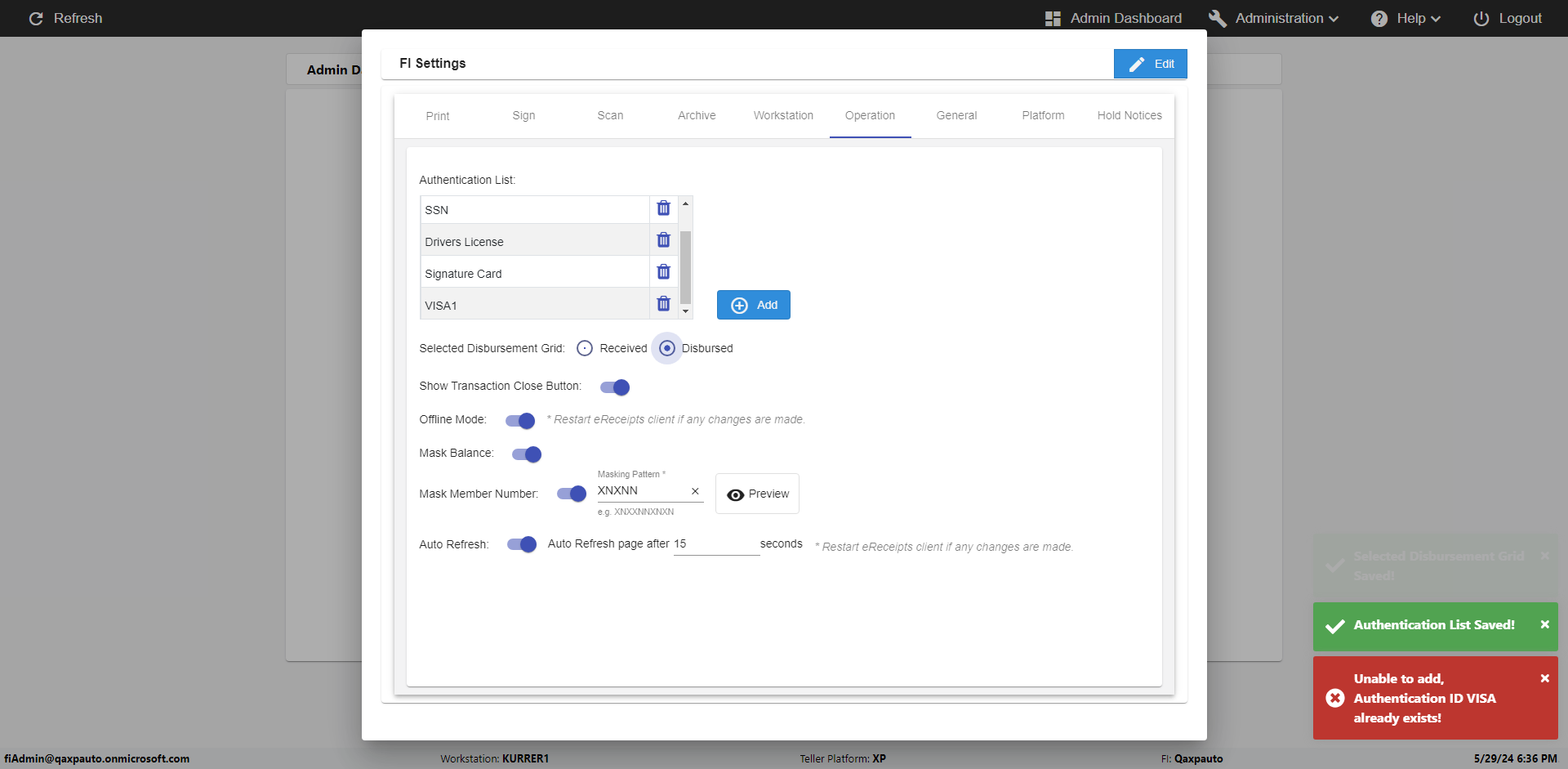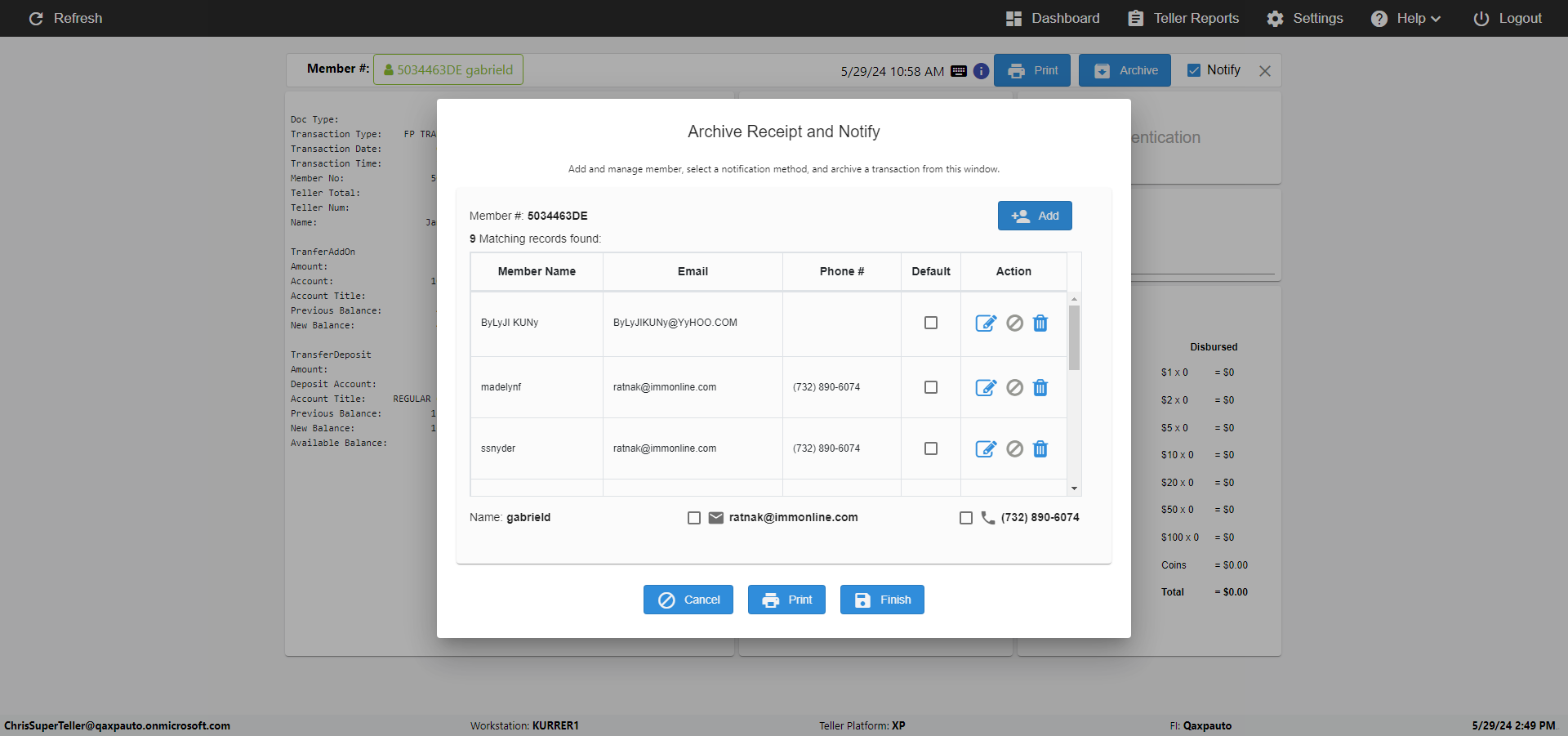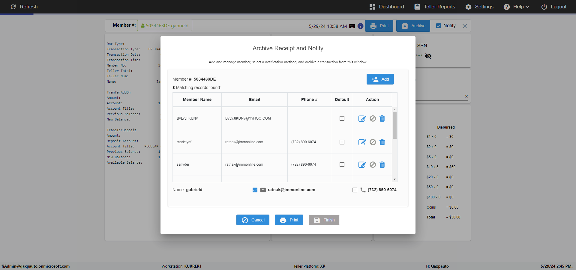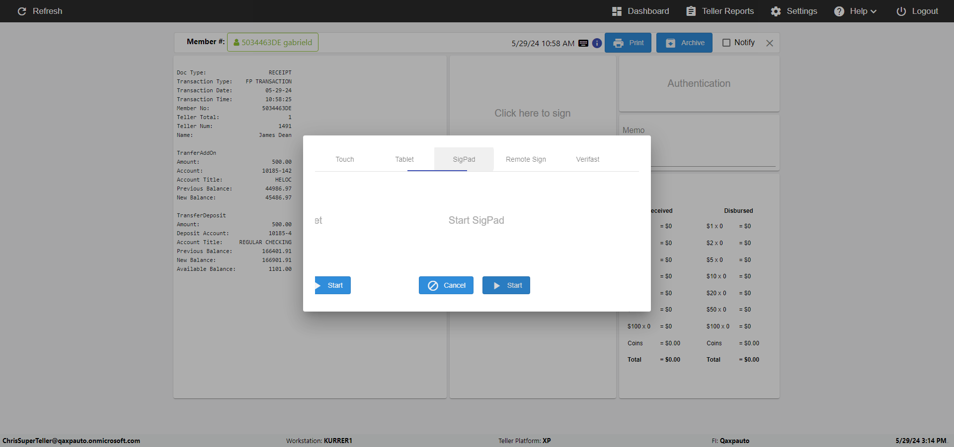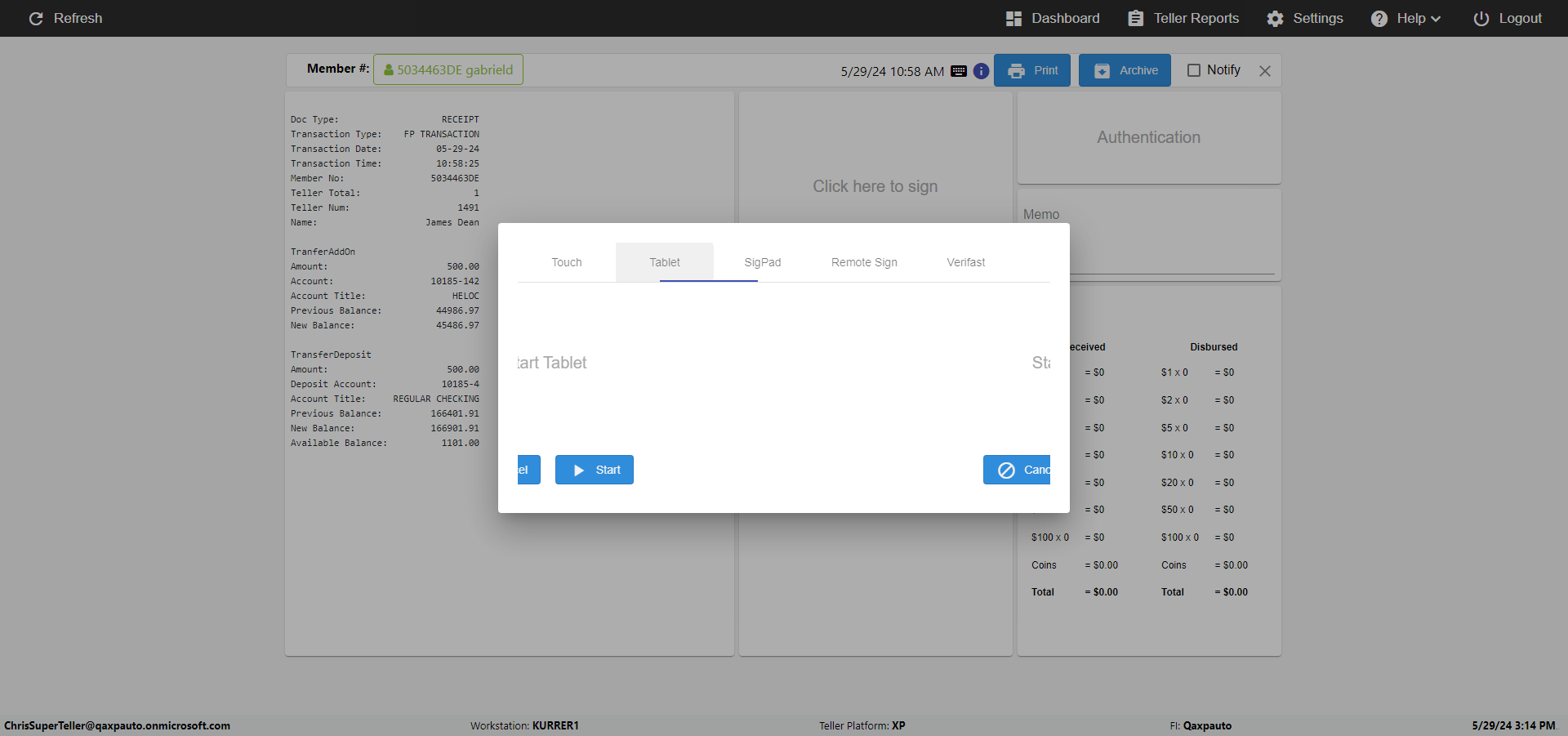 | {Toggel=, Archived Transactions=yes, Description=verify End TO End Test OF Normal Teller In Ereceipt Page, Email=FALSE, Archive=TRUE, Document Type=SSN, Notify=TRUE, SignatureTab=Touch,, DisbursedExpression=|-10*5, Operation=, Teller LastName=, Disbursed cash=1-1|2-2|5-2|10-1|20-2|50-1|100-1|Coins-3, errorint=, TestID=verifyEndTOEndTestOFNormalTellerInEreceipt, Print=FALSE, DisbursedExpressionValue=FALSE, Phone=(555) 021-3315, ReceivedCashValue=FALSE, Member=, UserPwd=iMM2022!, Transtatus=Archived-false;Active-true;Error-false, Docment ID=216554, Teller=, Teller FirstName=, errorMessage=, ReceivedExpressionValue=TRUE, Date=, Platfrom=, Received cash=1-1|2-2|5-2|10-1|20-2|50-1|100-1|Coins-3, Transaction=, Header=, Expression=, Username=ChrisSuperTeller@Qaxpauto.onmicrosoft.com, DisbursedCashValue=TRUE, FullName=, ReceivedExpression=|+100*2, SMS=FALSE, Memo=eReceipts Demo} |