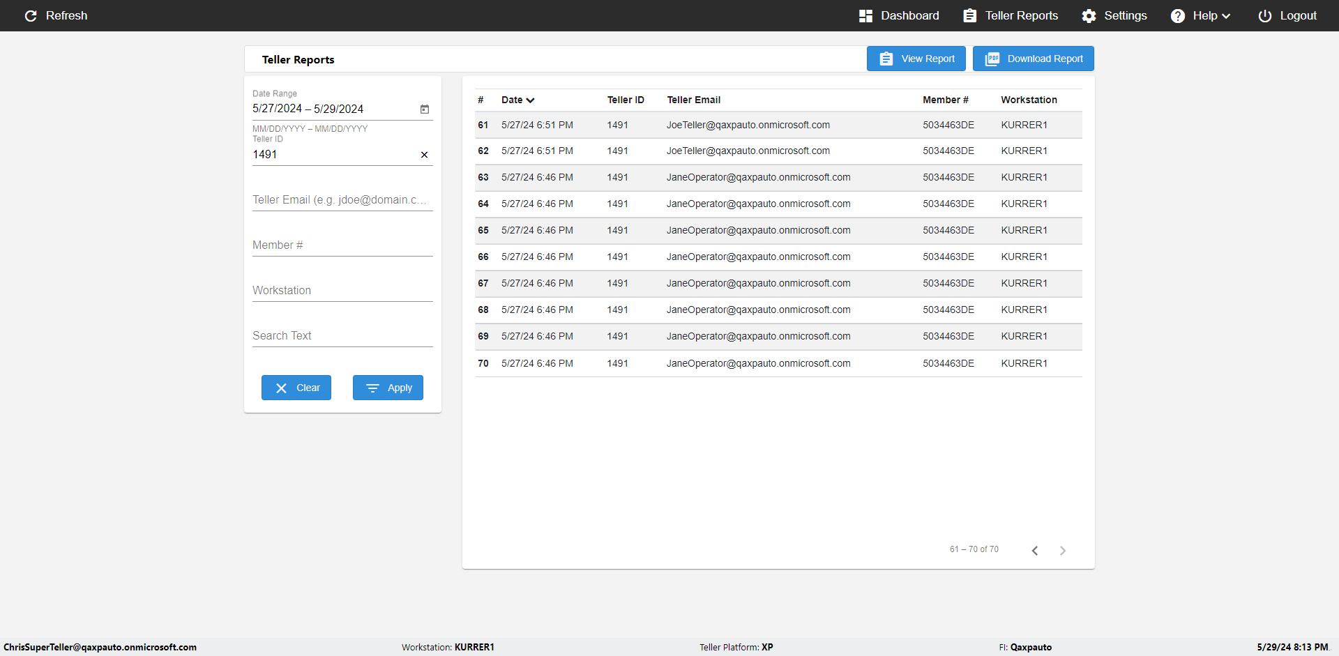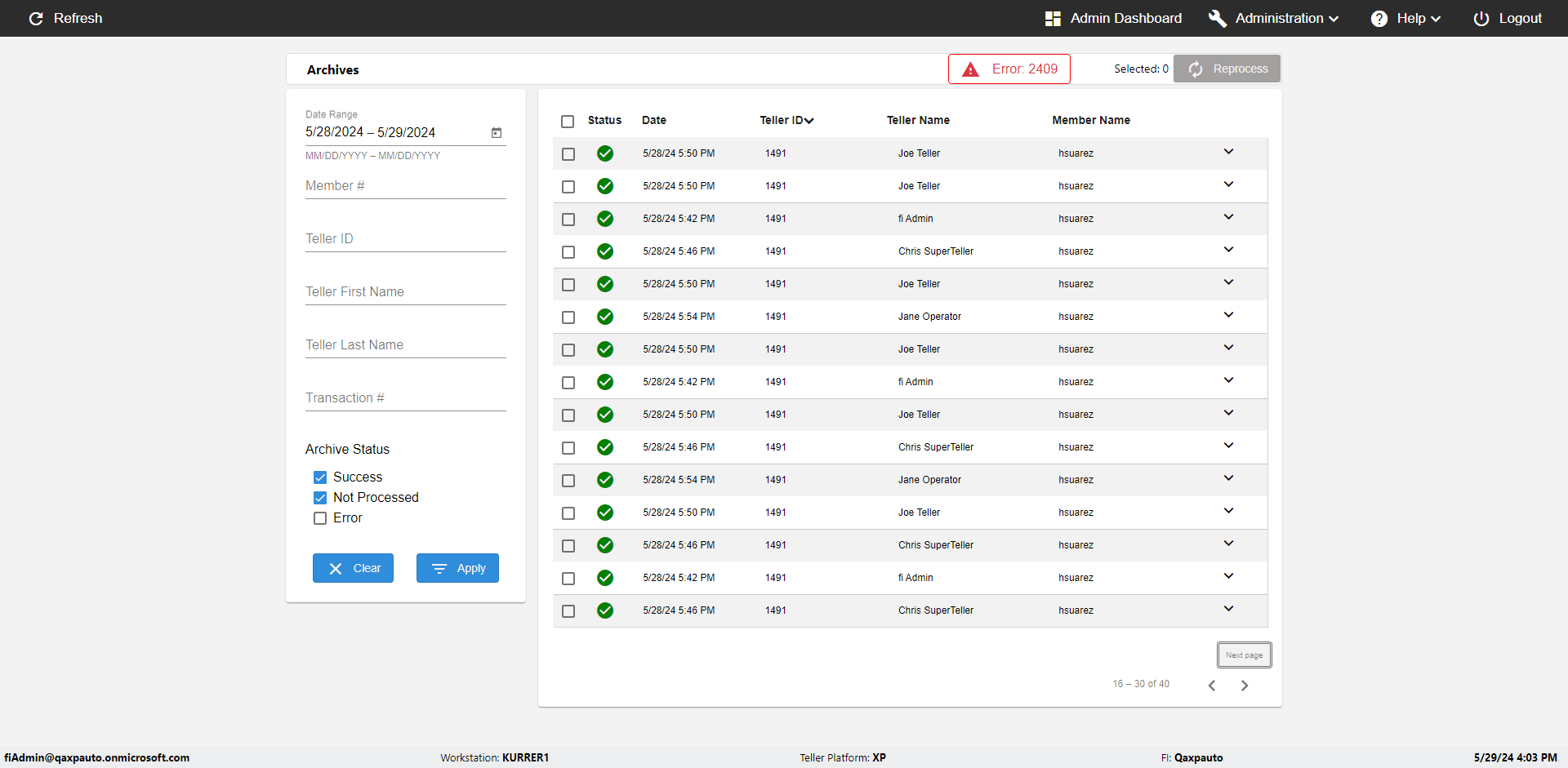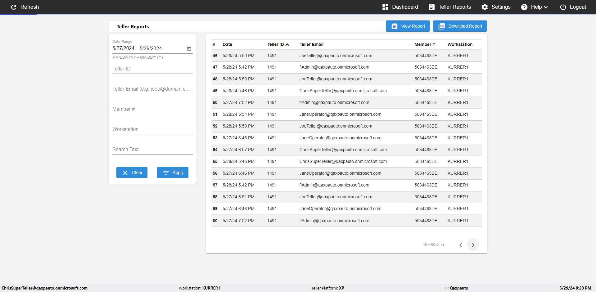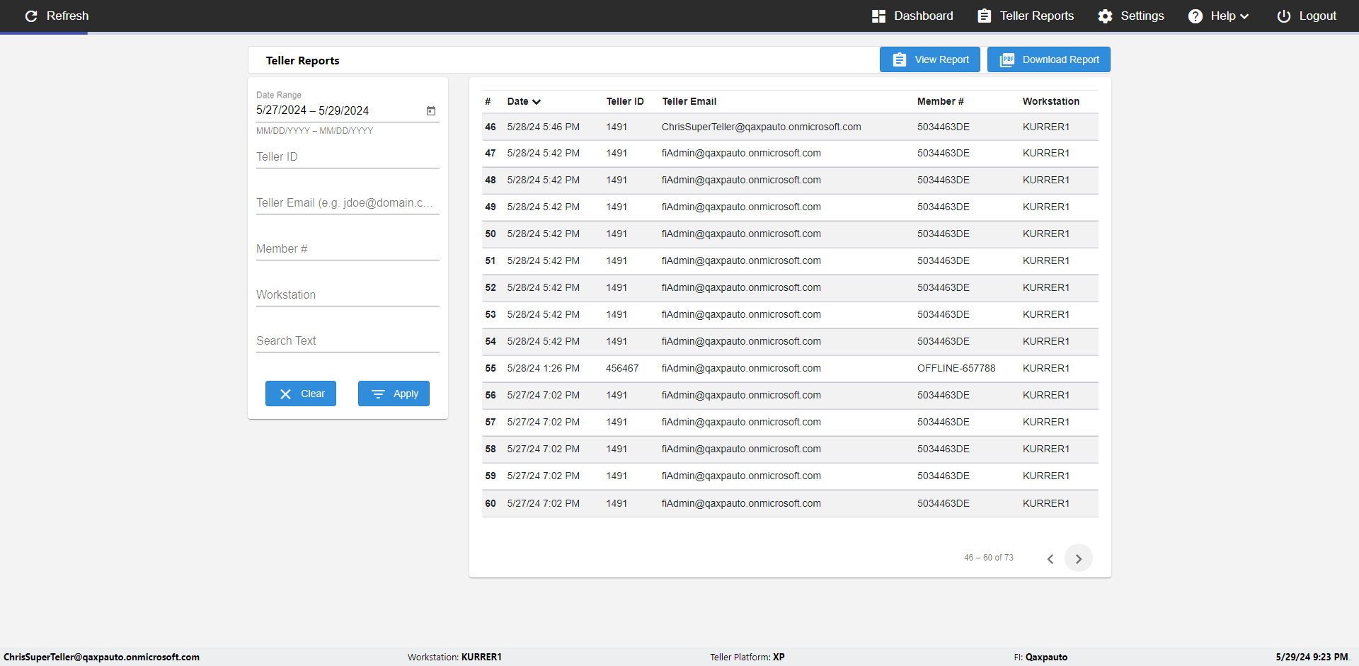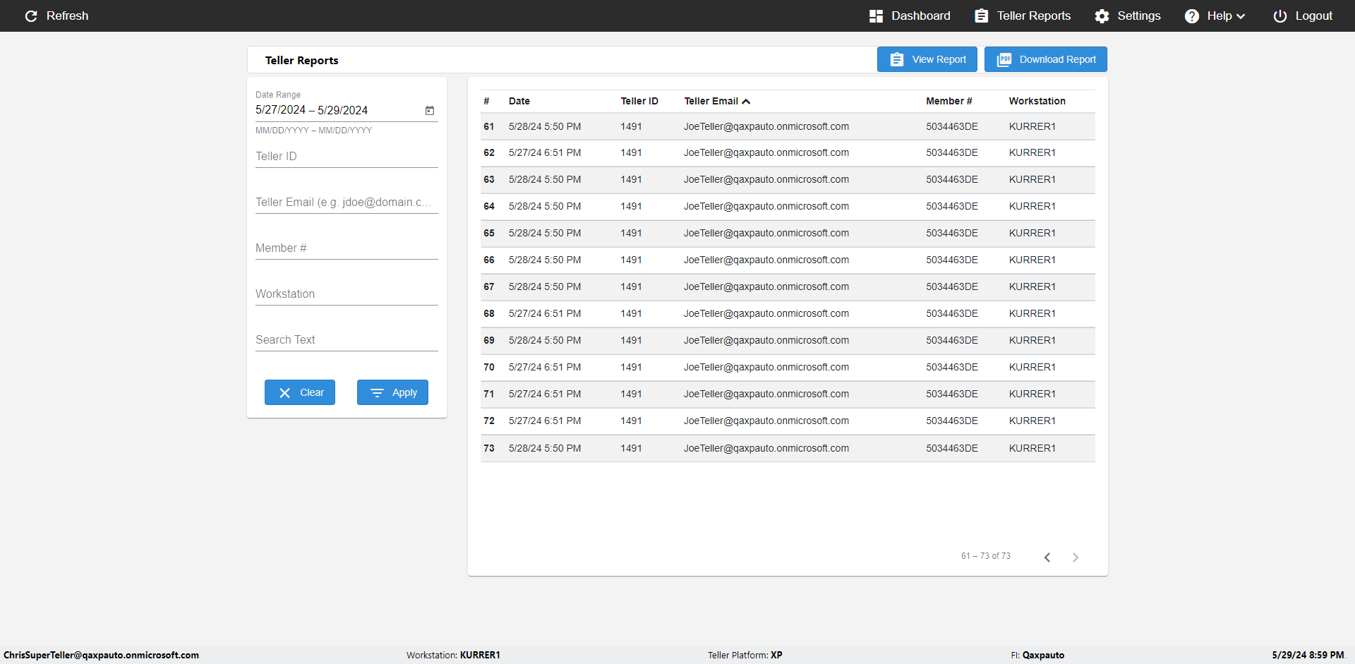 | {UserPwd=iMM2022!, Description=verify Error Messages in Report Page for Date, Teller ID=, errorMessage=Date cannot exceed 7 days after today.;Date cannot exceed 7 days after today., Teller Email=, View=, Date=12/28/2025 - 2/28/2026, Clear=, Workstation=, errorint=2, TestID=verifyErrorMessagesInReports, Transaction=, Header=, Username=ChrisSuperTeller@Qaxpauto.onmicrosoft.com, Export=, Member #=, Search Text=, Level=} |