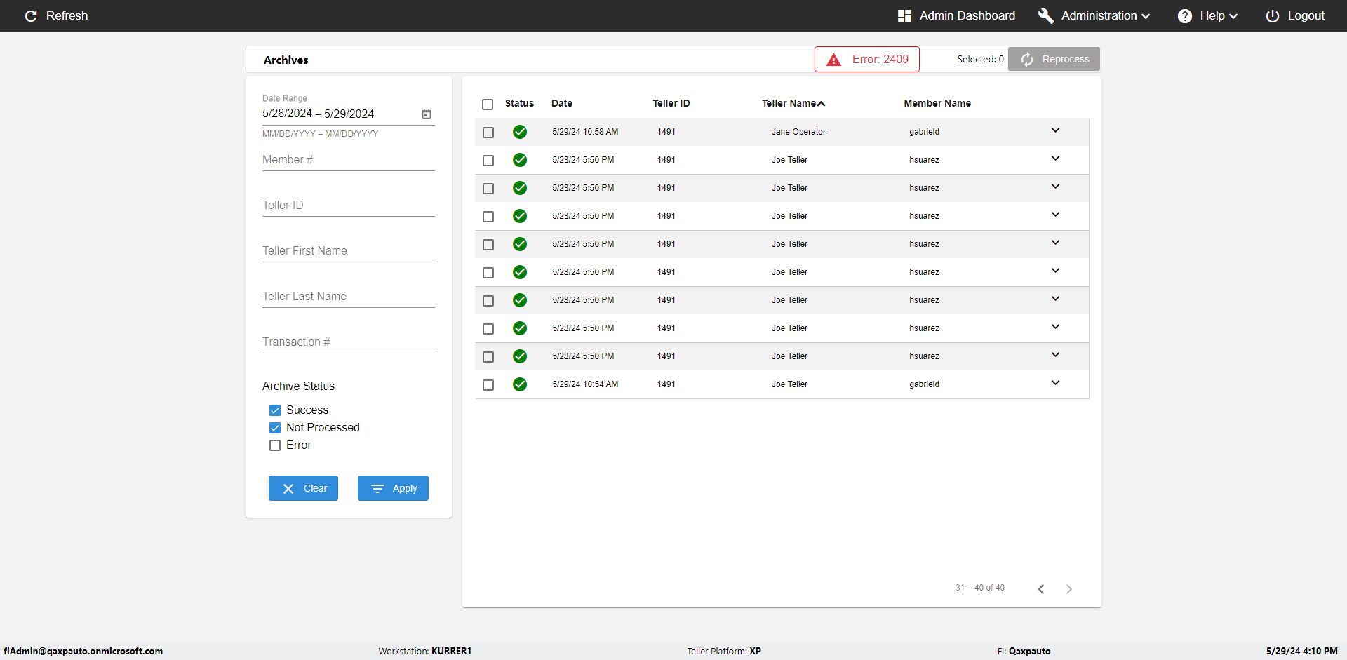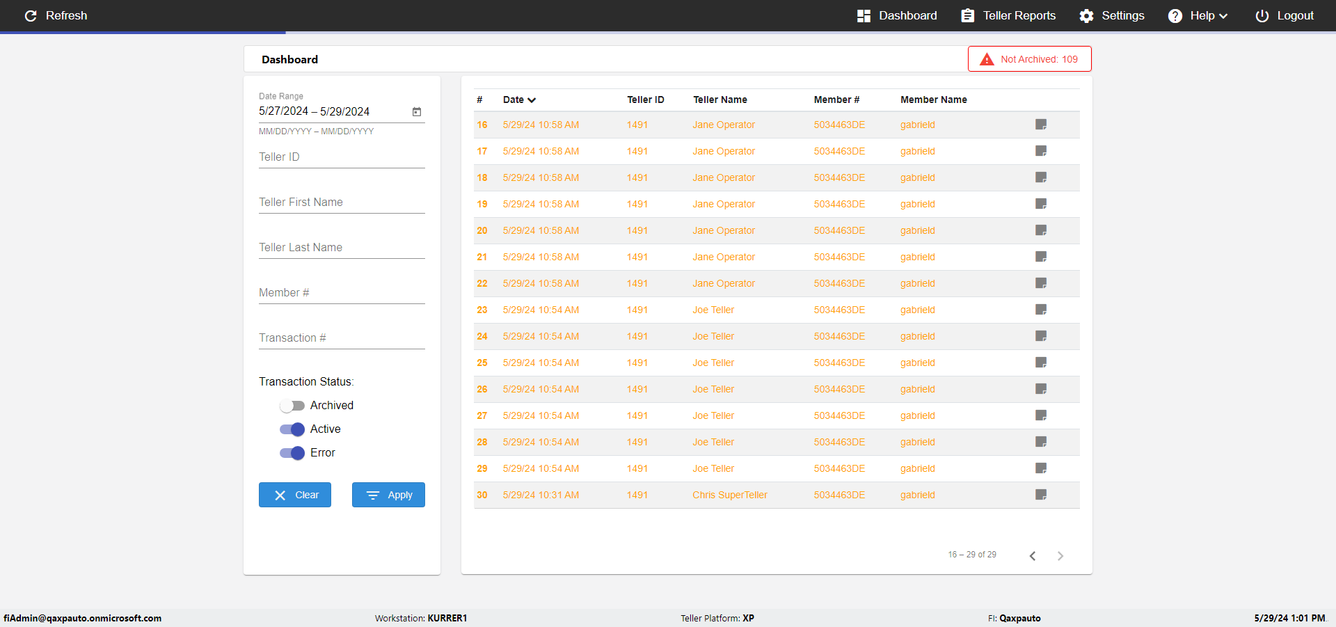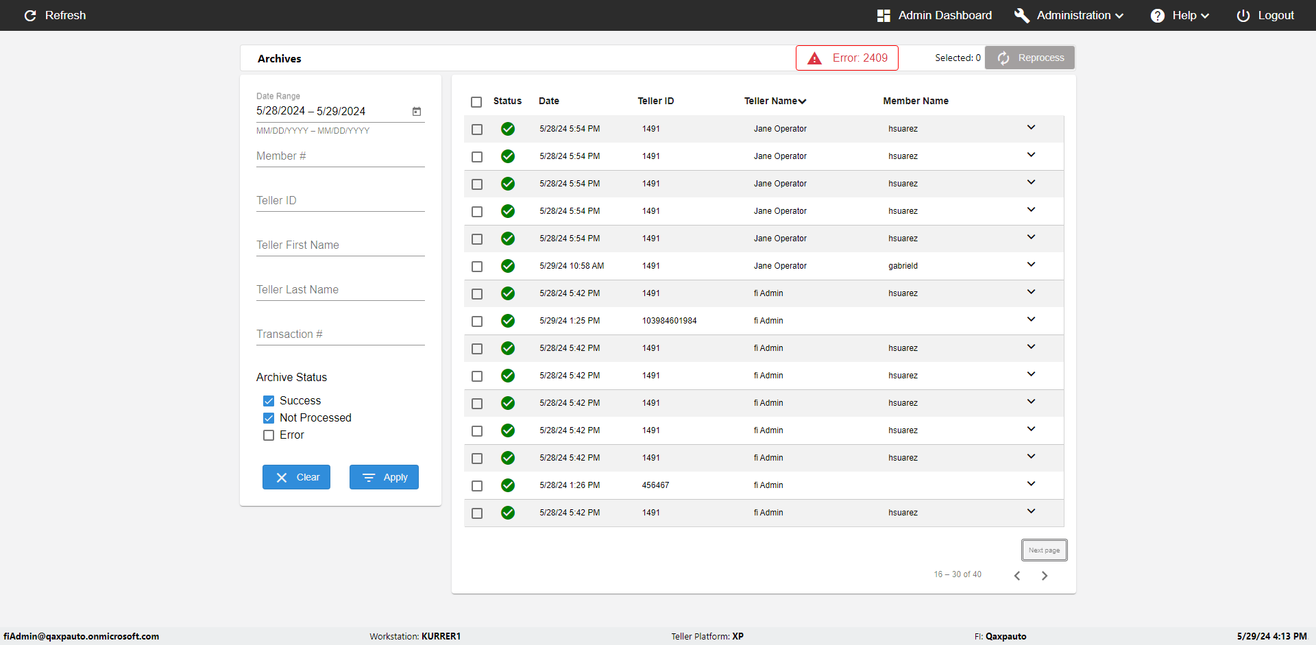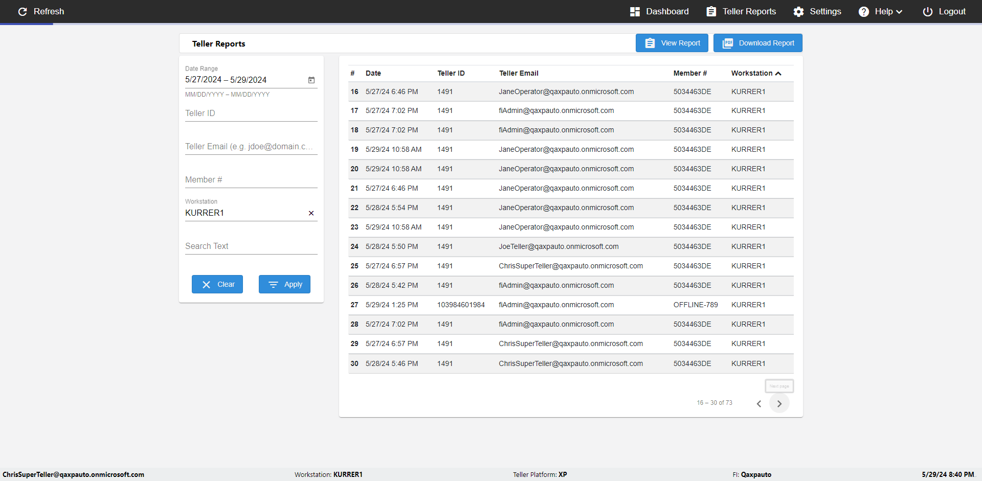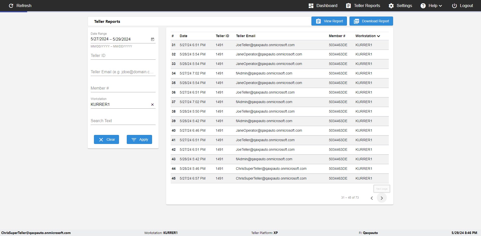 | {UserPwd=iMM2022!, Description=verify Error Messages in Report Page for Date, Teller ID=, errorMessage=Date cannot exceed 7 days after today.;Date cannot exceed 7 days after today., Teller Email=, View=, Date=12/28/2025 - 2/28/2026, Clear=, Workstation=, errorint=2, TestID=verifyErrorMessagesInReports, Transaction=, Header=, Username=ChrisSuperTeller@Qaxpauto.onmicrosoft.com, Export=, Member #=, Search Text=, Level=} |