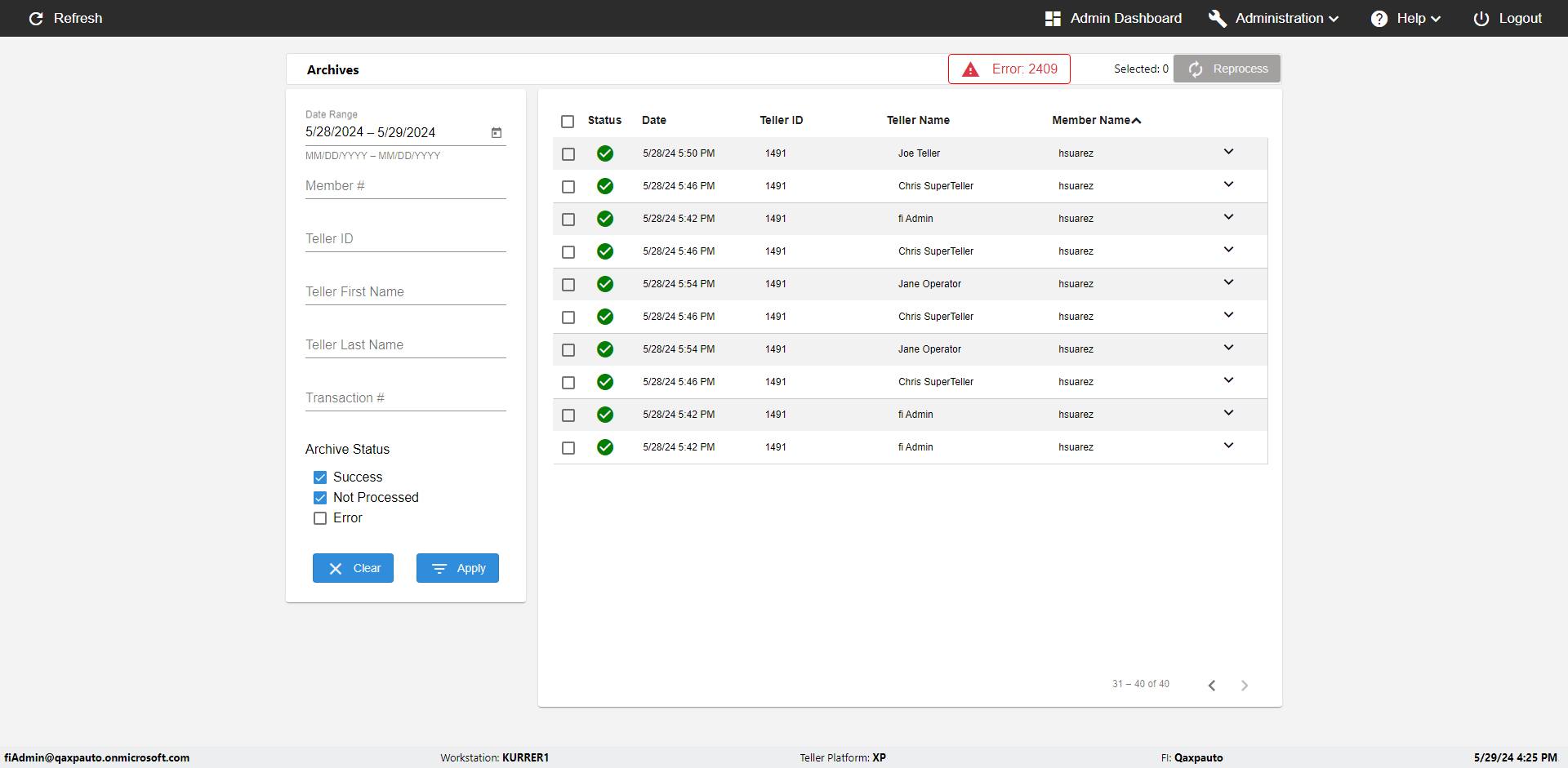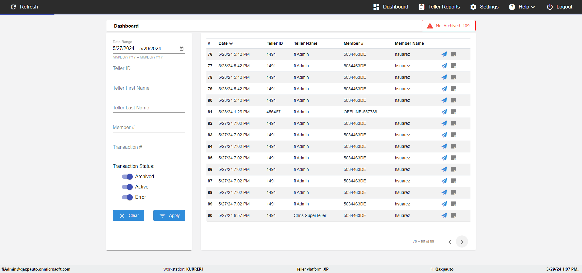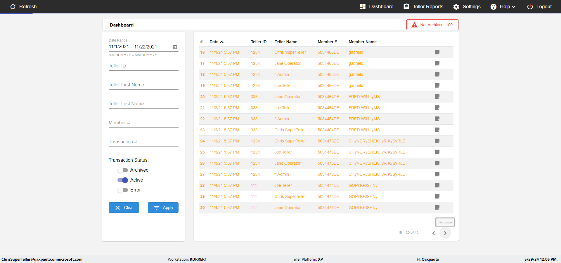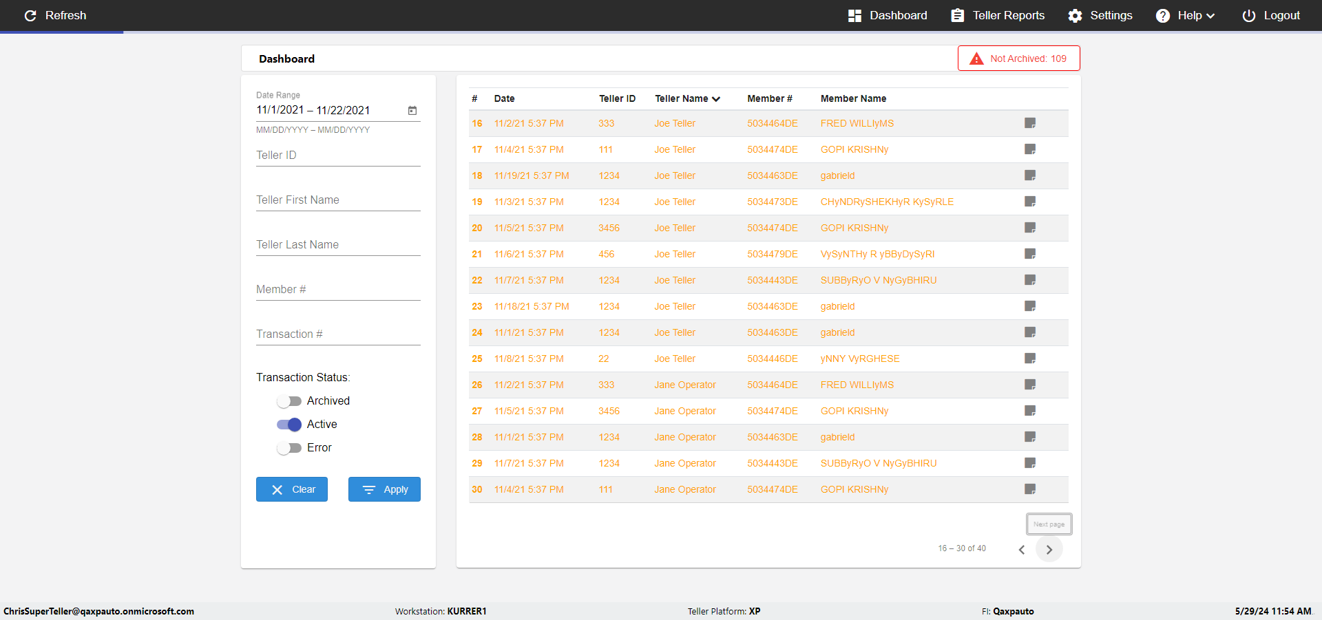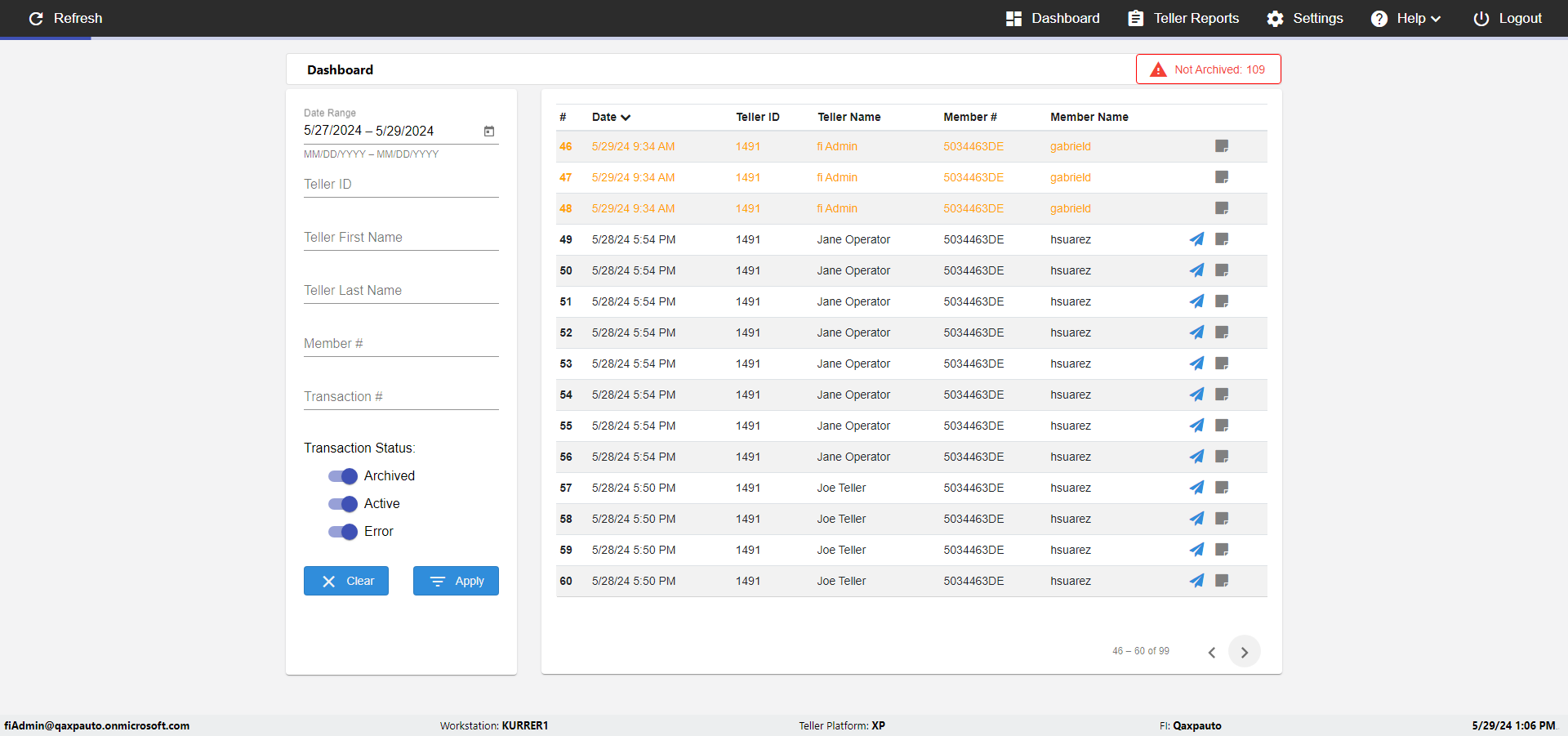 | {UserPwd=iMM2022!, Description=verify Error Messages in Report Page for Date, Teller ID=, errorMessage=Date cannot exceed 7 days after today.;Date cannot exceed 7 days after today., Teller Email=, View=, Date=12/28/2025 - 2/28/2026, Clear=, Workstation=, errorint=2, TestID=verifyErrorMessagesInReports, Transaction=, Header=, Username=ChrisSuperTeller@Qaxpauto.onmicrosoft.com, Export=, Member #=, Search Text=, Level=} |