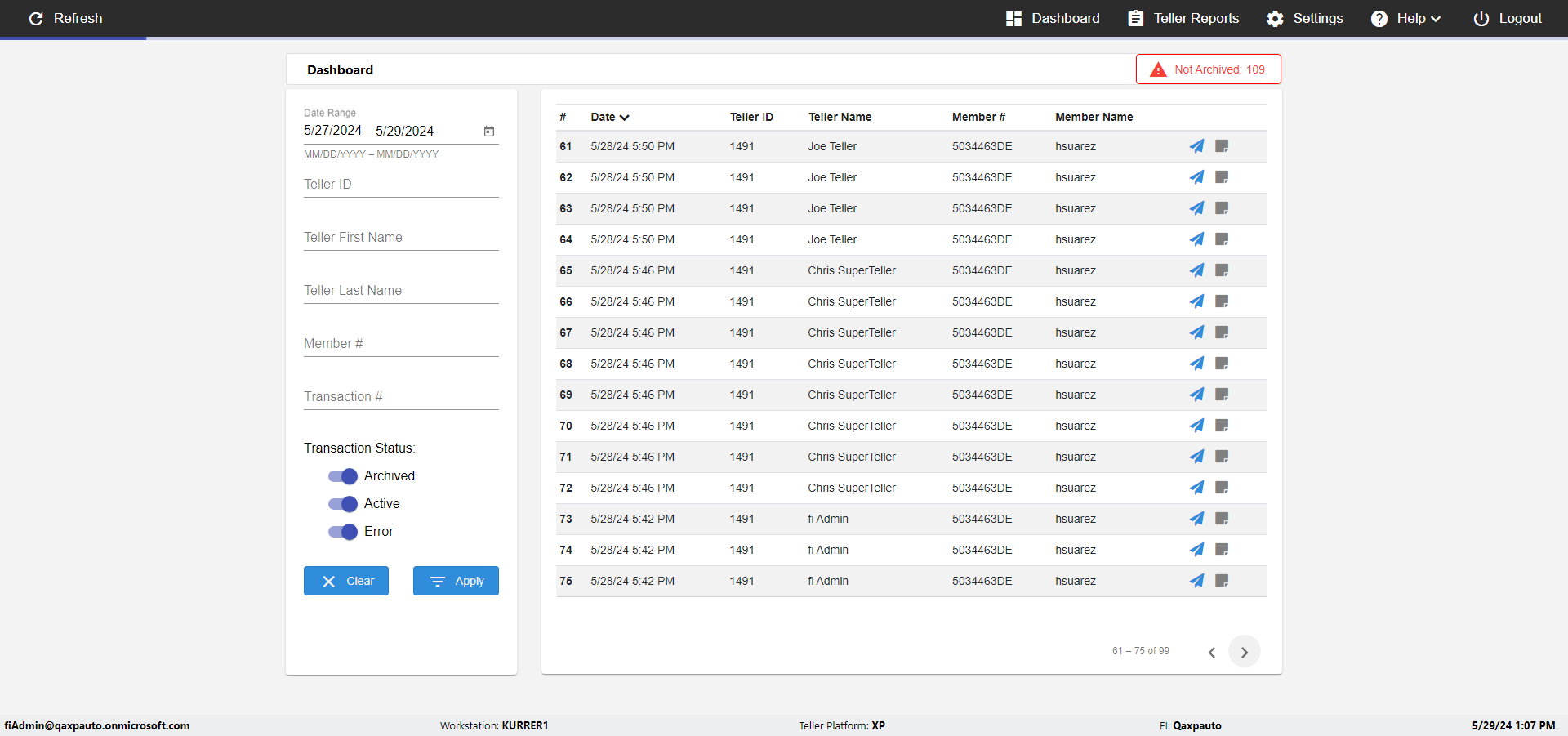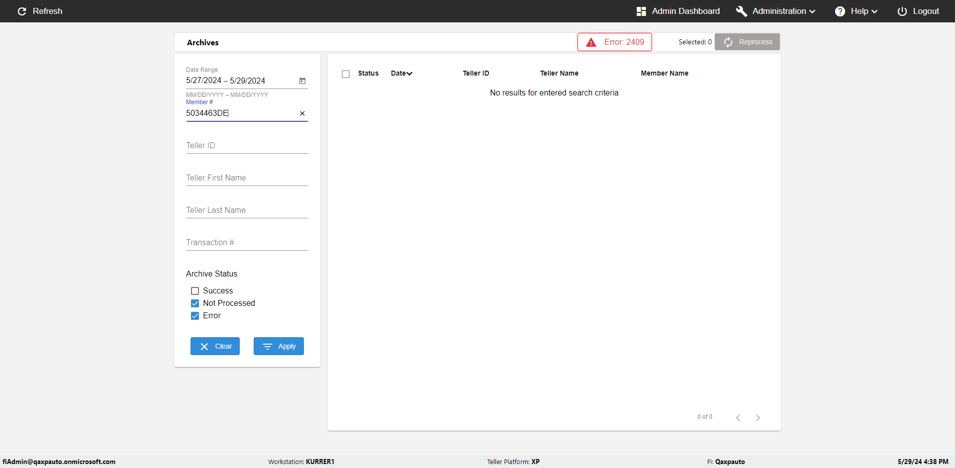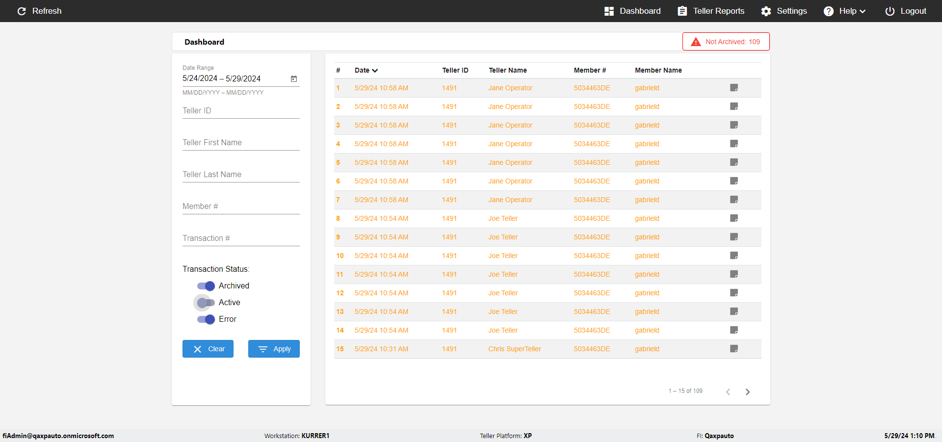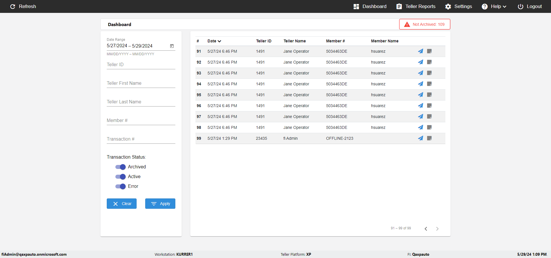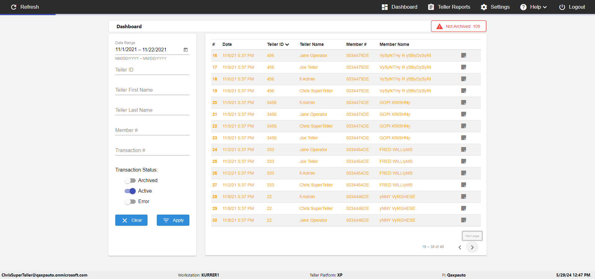 | {UserPwd=iMM2022!, Description=verify Error Messages in Report Page for Date, Teller ID=, errorMessage=Date cannot exceed 7 days after today.;Date cannot exceed 7 days after today., Teller Email=, View=, Date=12/28/2025 - 2/28/2026, Clear=, Workstation=, errorint=2, TestID=verifyErrorMessagesInReports, Transaction=, Header=, Username=ChrisSuperTeller@Qaxpauto.onmicrosoft.com, Export=, Member #=, Search Text=, Level=} |