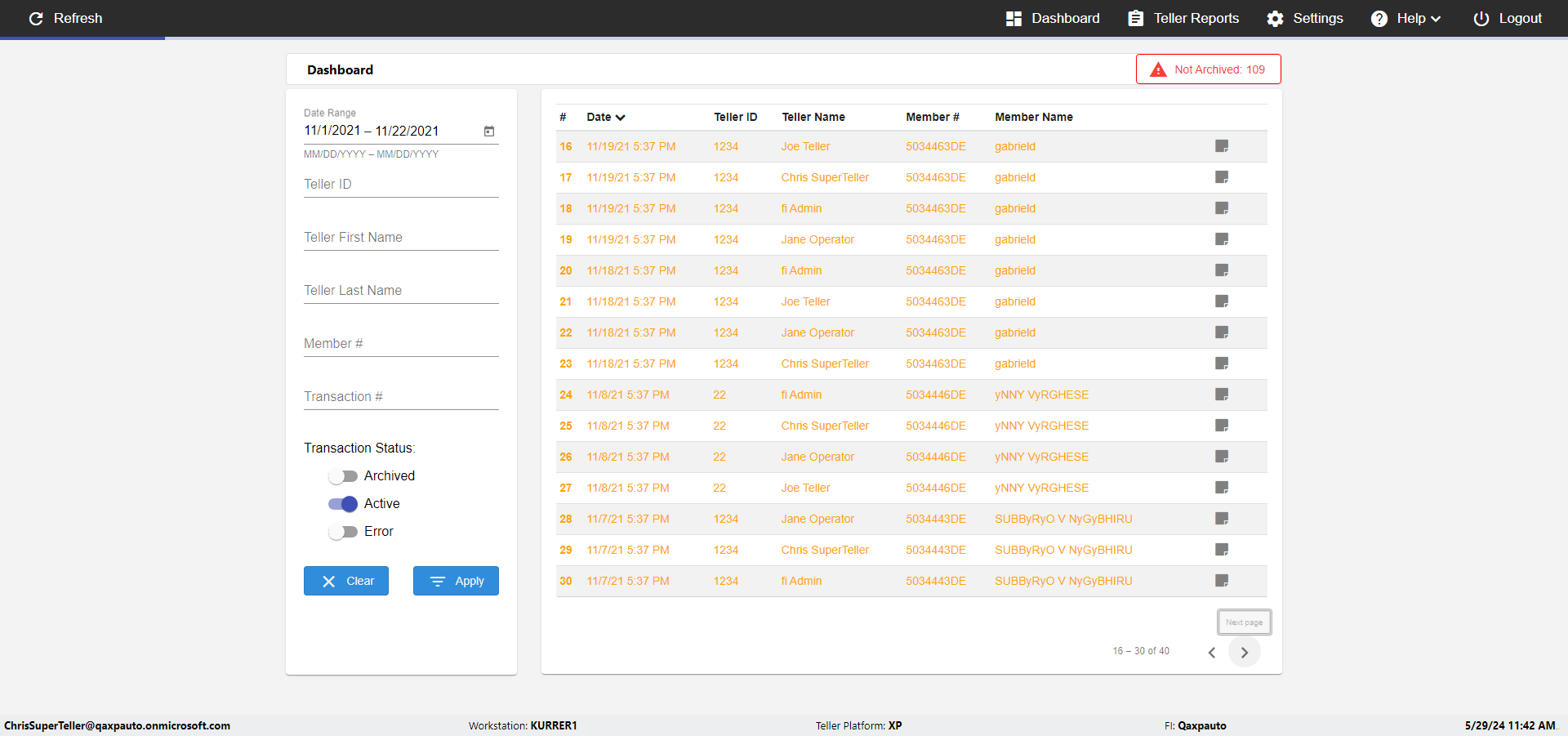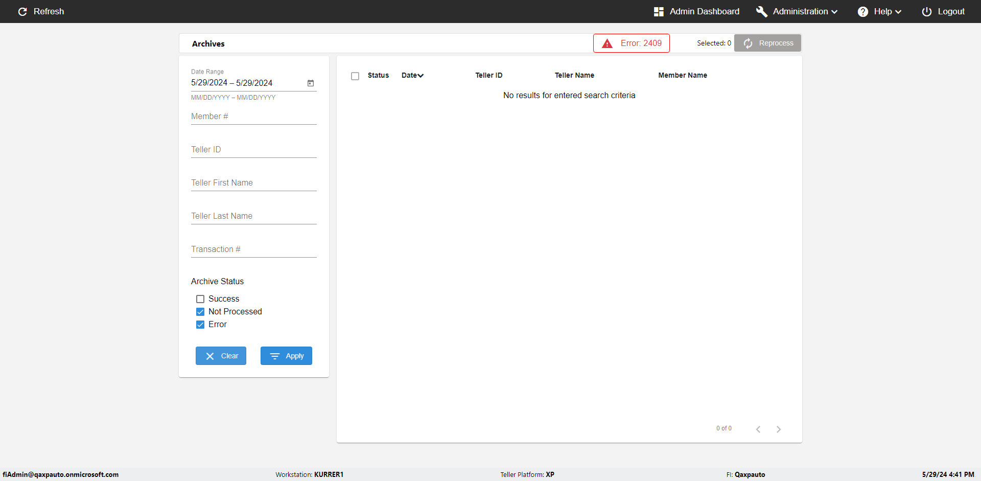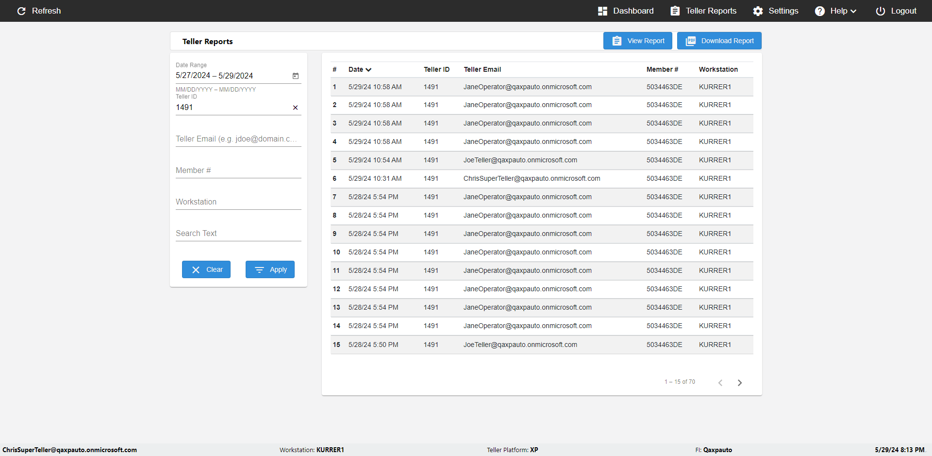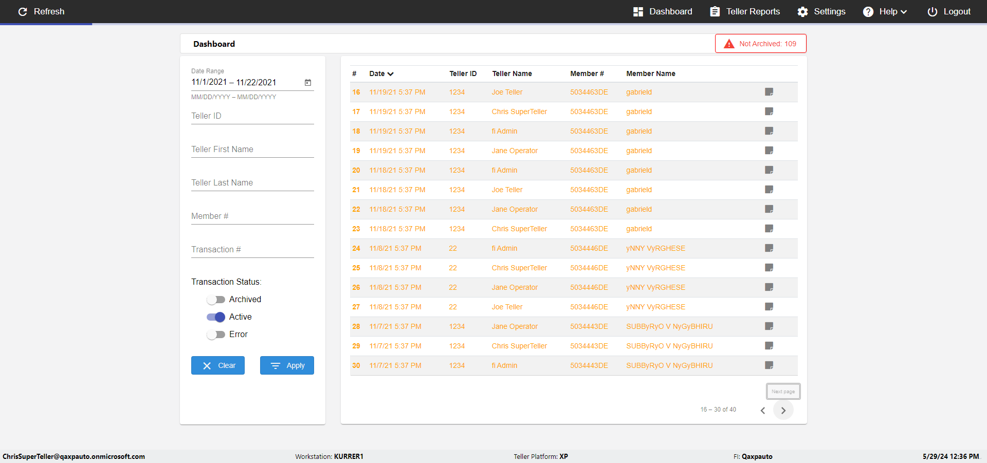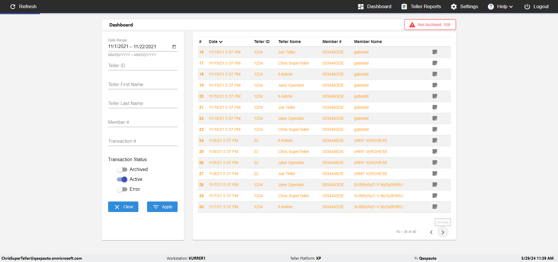 | {UserPwd=iMM2022!, Description=verify Error Messages in Report Page for Date, Teller ID=, errorMessage=Date cannot exceed 7 days after today.;Date cannot exceed 7 days after today., Teller Email=, View=, Date=12/28/2025 - 2/28/2026, Clear=, Workstation=, errorint=2, TestID=verifyErrorMessagesInReports, Transaction=, Header=, Username=ChrisSuperTeller@Qaxpauto.onmicrosoft.com, Export=, Member #=, Search Text=, Level=} |