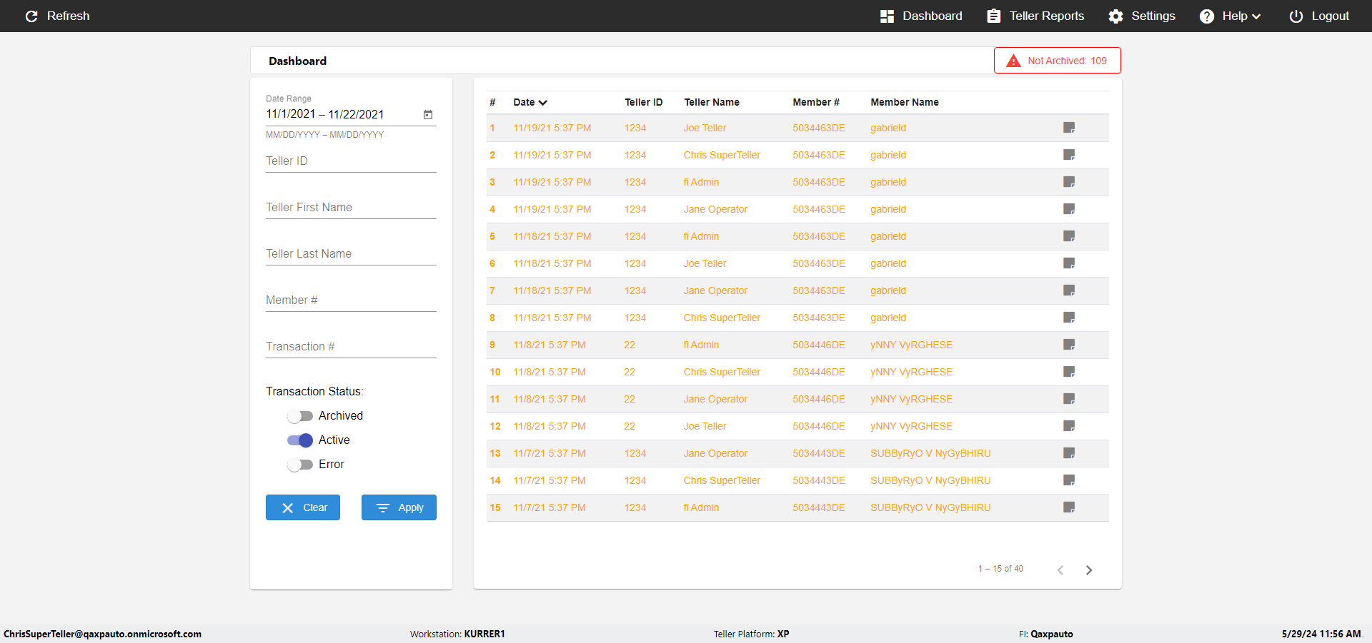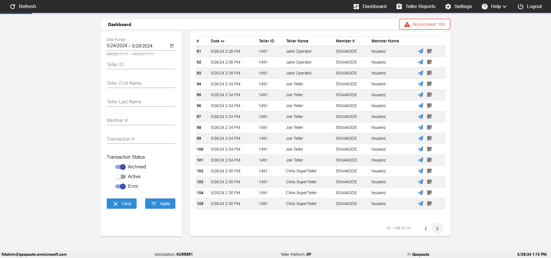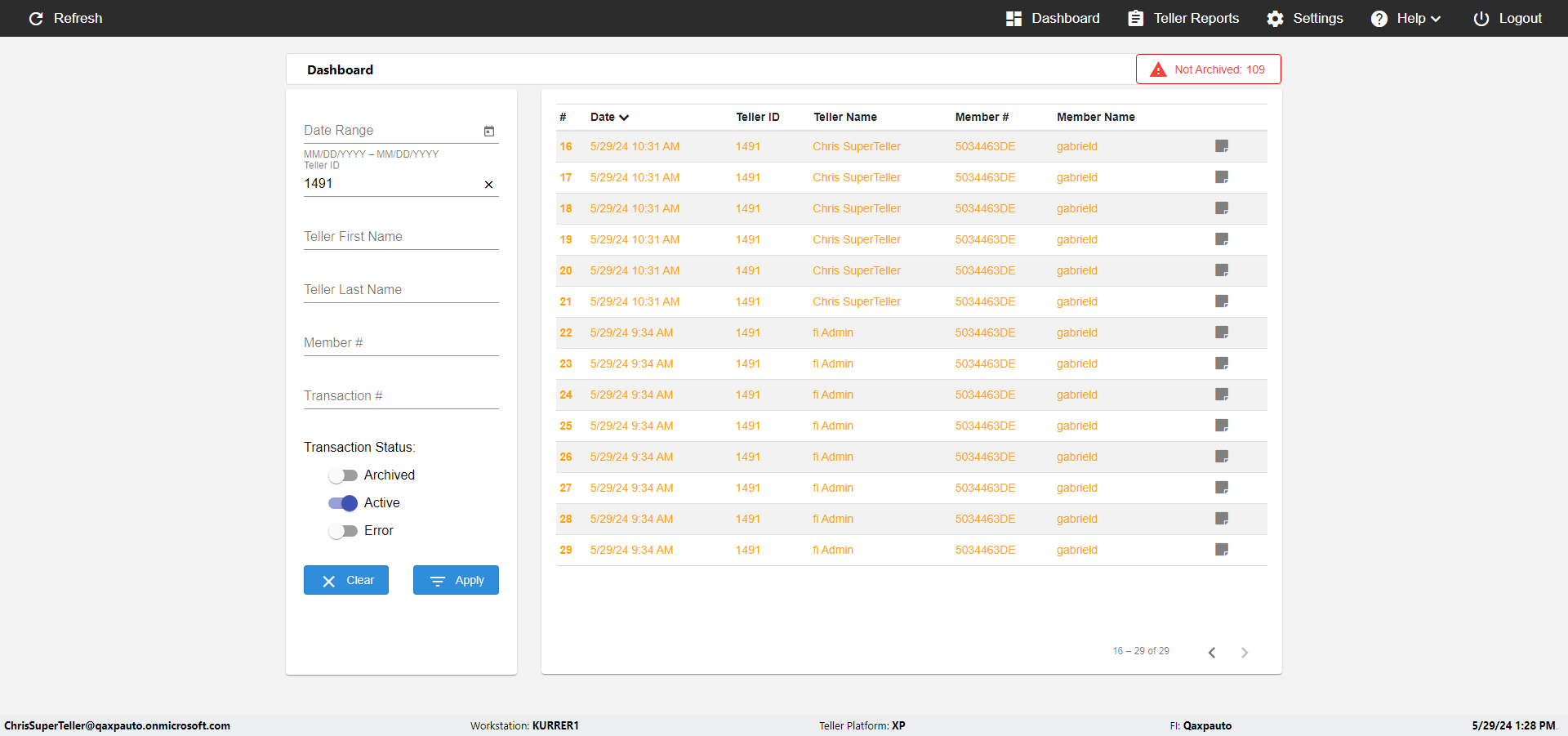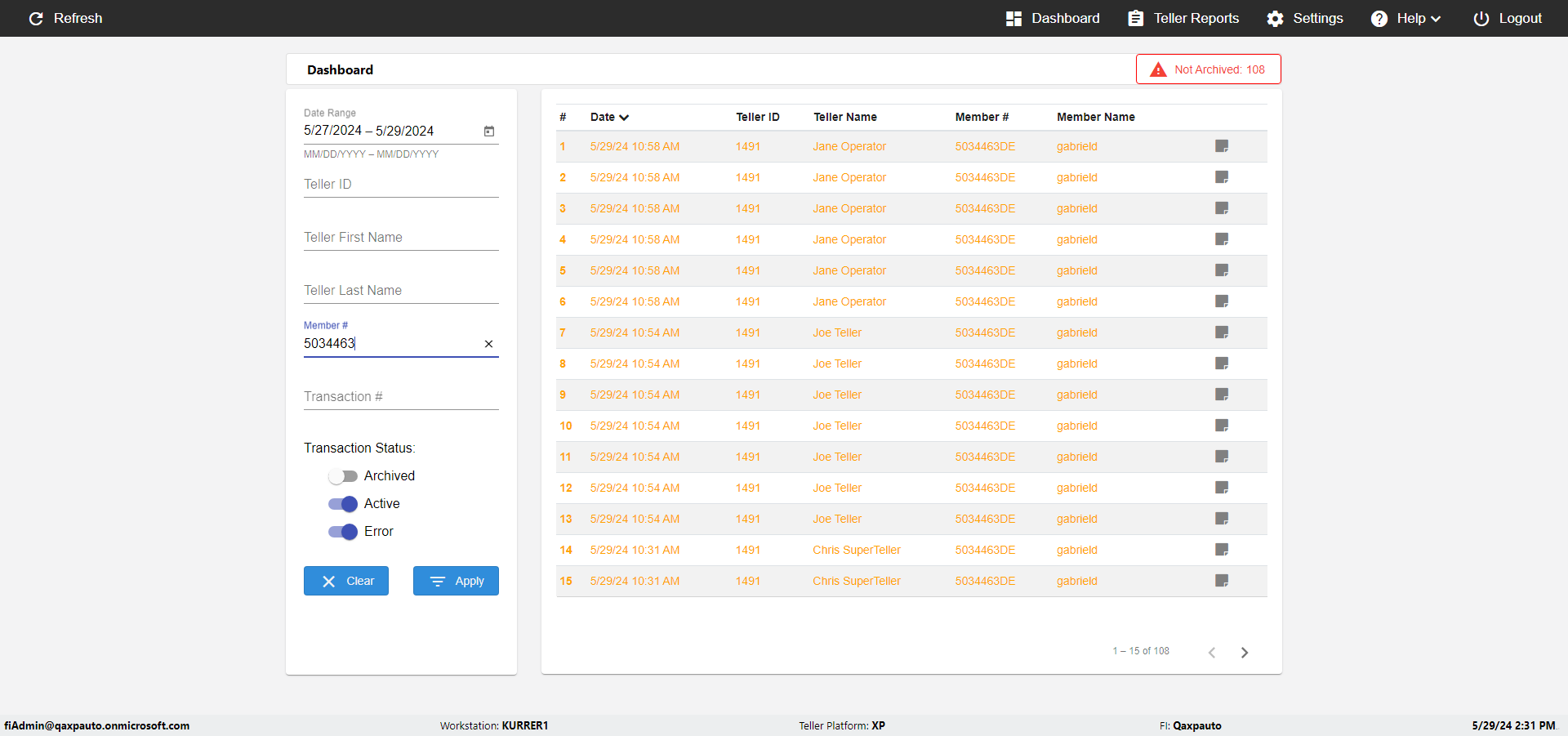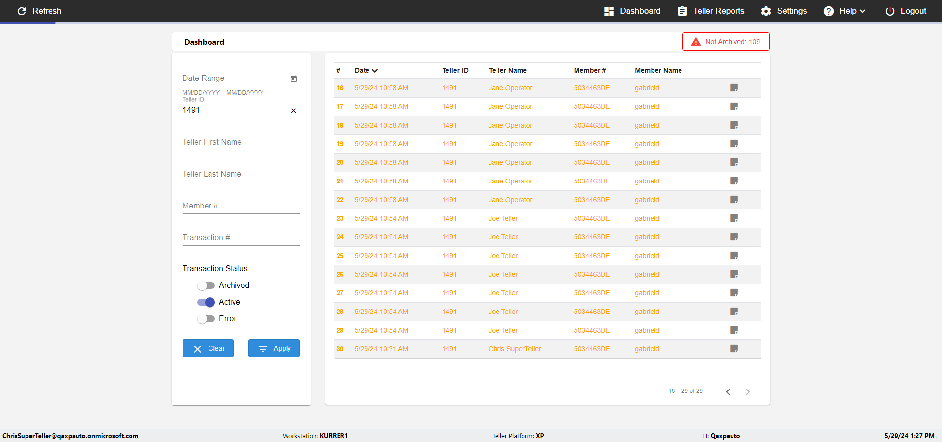 | {UserPwd=iMM2022!, Description=verify Error Messages in Report Page for Date, Teller ID=, errorMessage=Date cannot exceed 7 days after today.;Date cannot exceed 7 days after today., Teller Email=, View=, Date=12/28/2025 - 2/28/2026, Clear=, Workstation=, errorint=2, TestID=verifyErrorMessagesInReports, Transaction=, Header=, Username=ChrisSuperTeller@Qaxpauto.onmicrosoft.com, Export=, Member #=, Search Text=, Level=} |