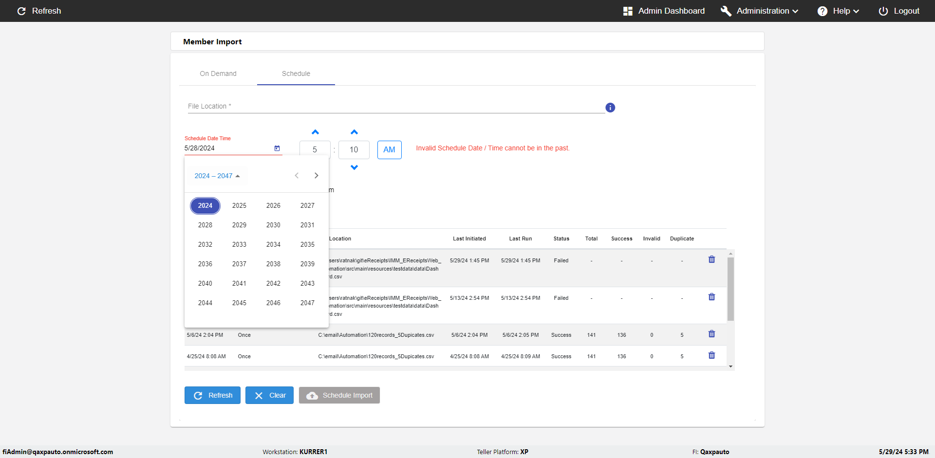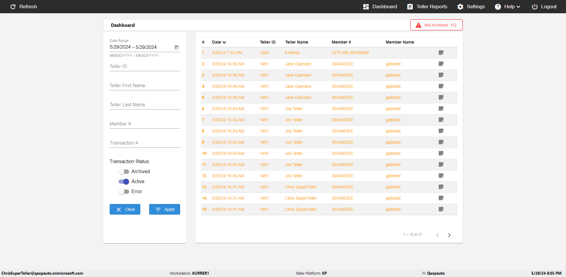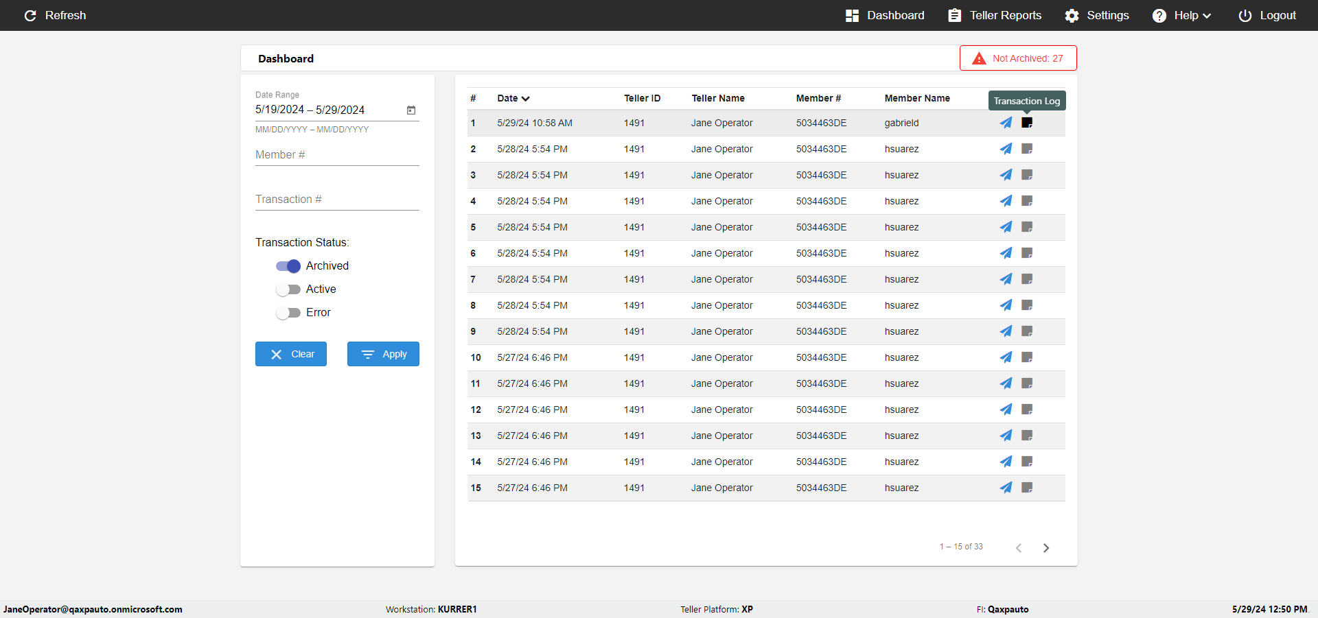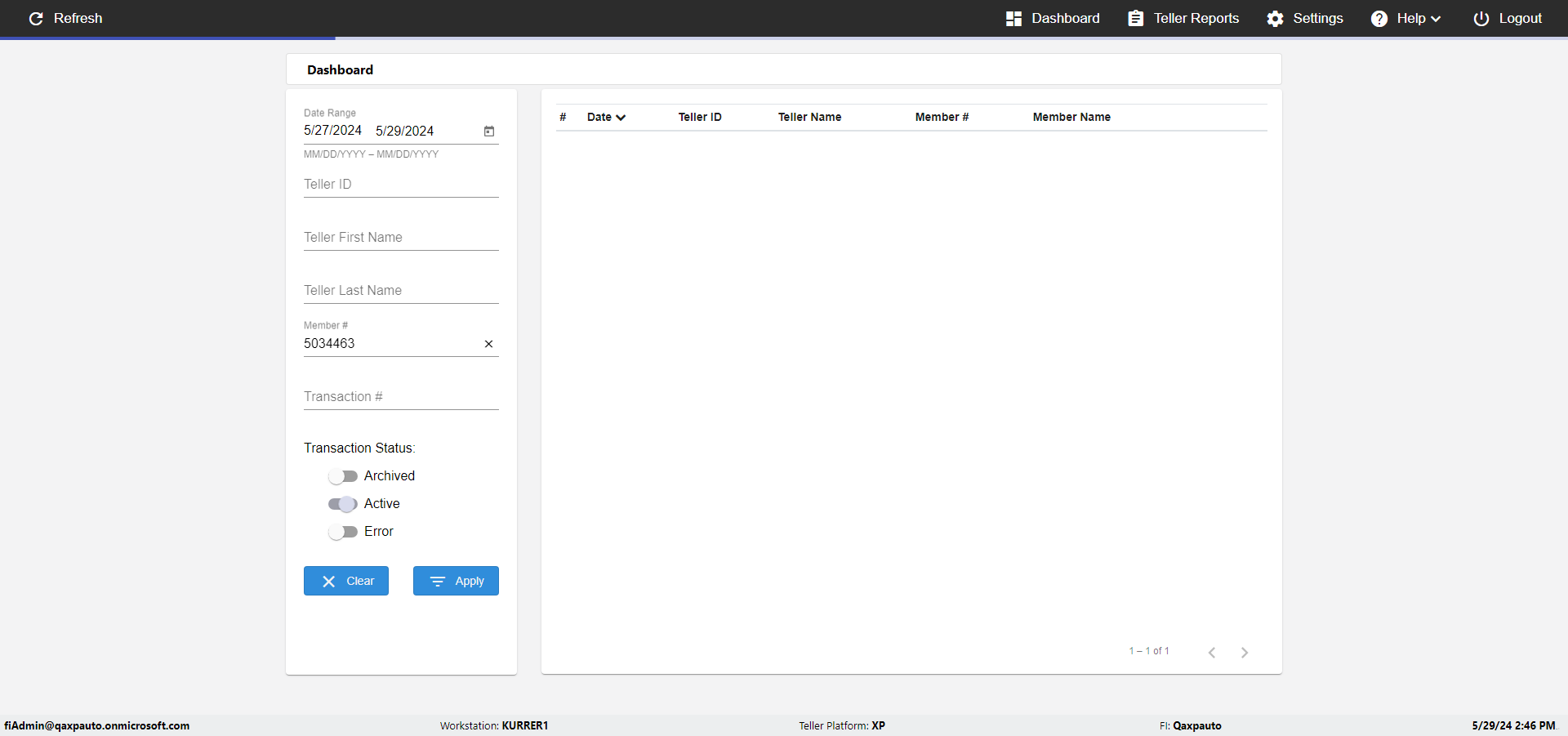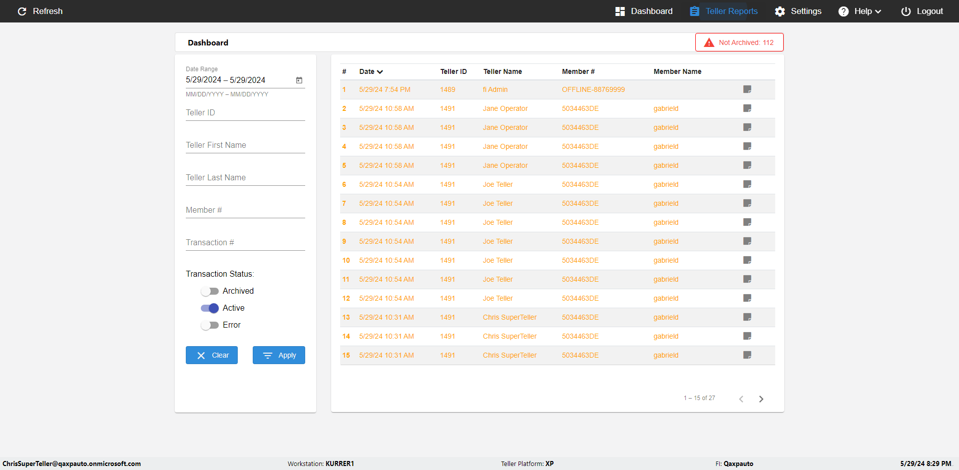 | {UserPwd=iMM2022!, Description=verify Error Messages in Report Page for Date, Teller ID=, errorMessage=Date cannot exceed 7 days after today.;Date cannot exceed 7 days after today., Teller Email=, View=, Date=12/28/2025 - 2/28/2026, Clear=, Workstation=, errorint=2, TestID=verifyErrorMessagesInReports, Transaction=, Header=, Username=ChrisSuperTeller@Qaxpauto.onmicrosoft.com, Export=, Member #=, Search Text=, Level=} |