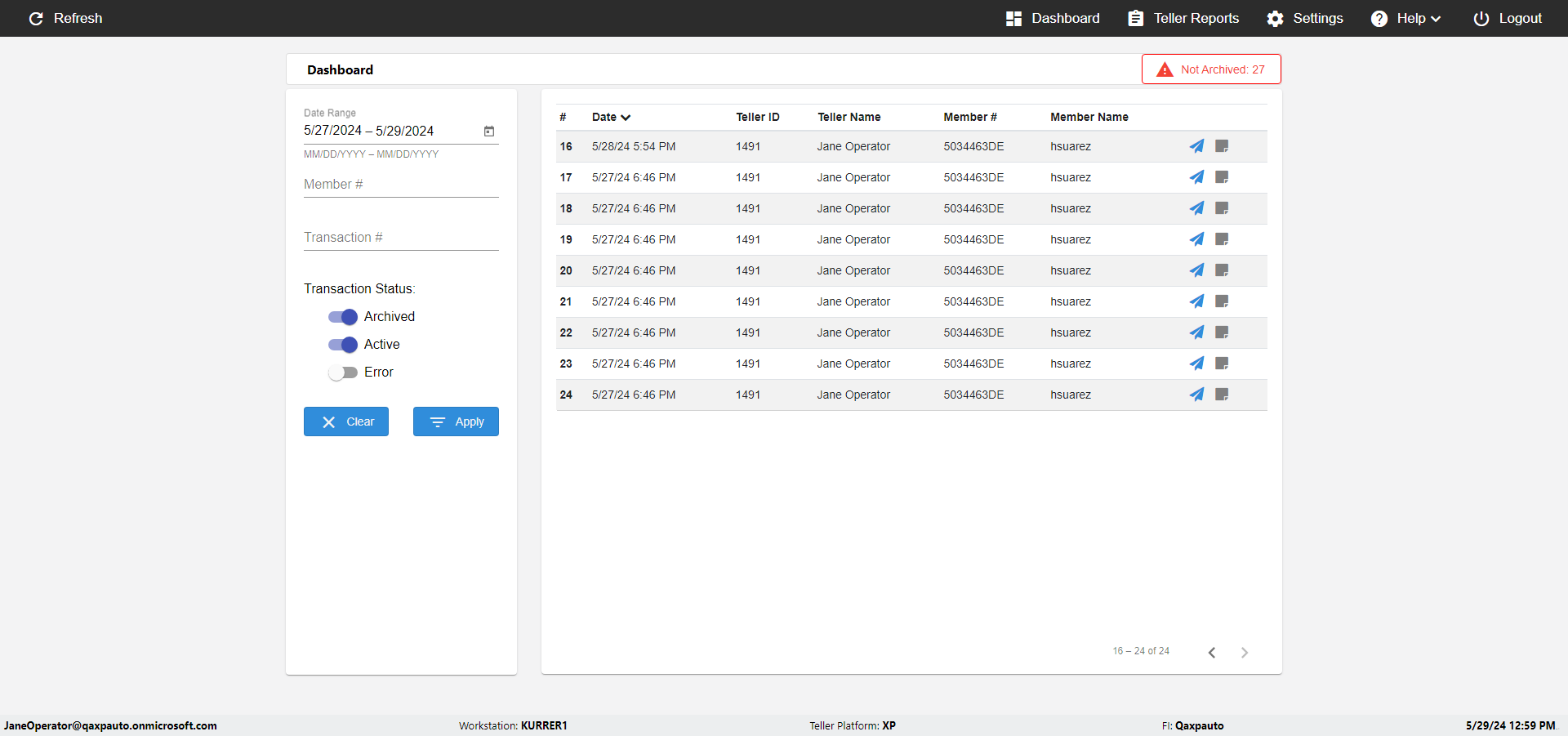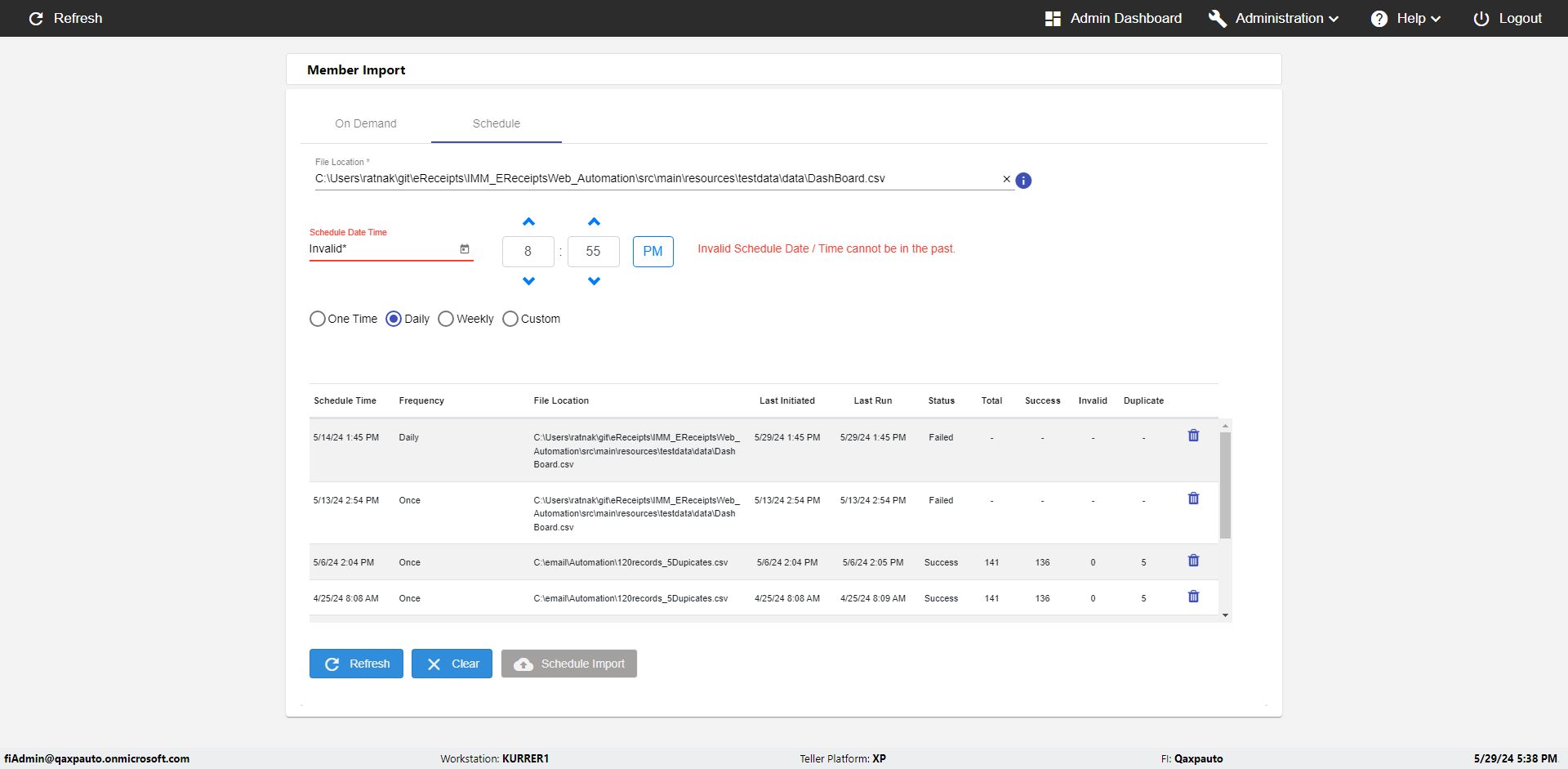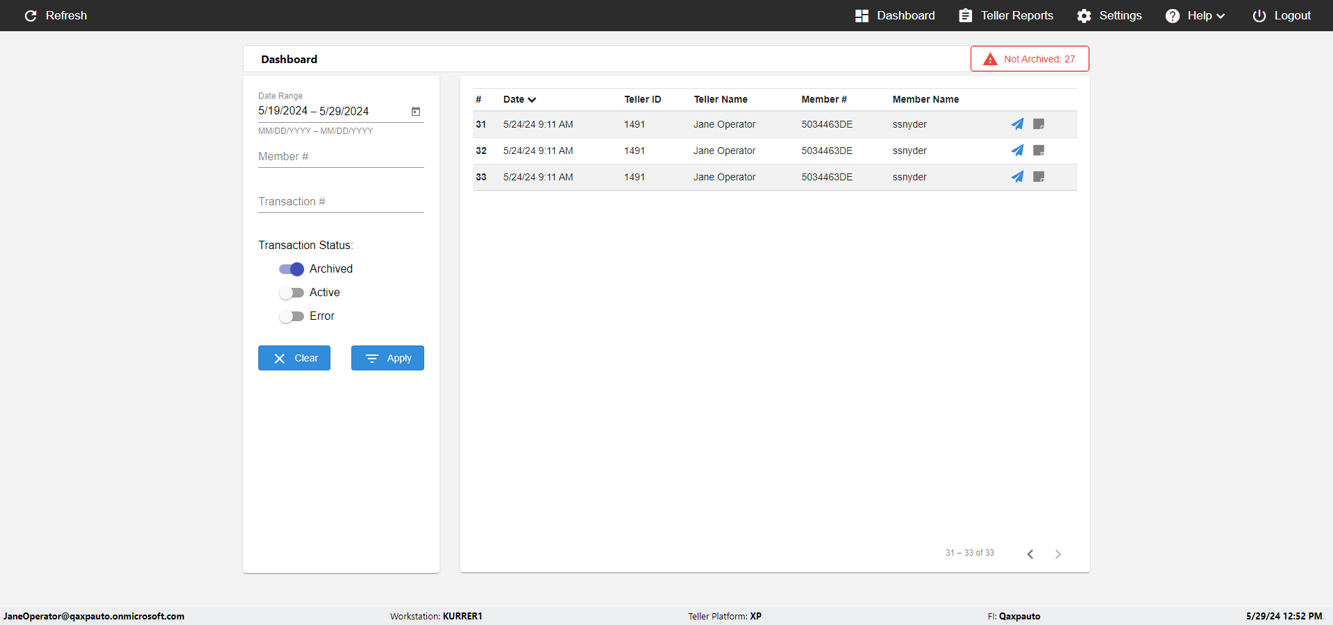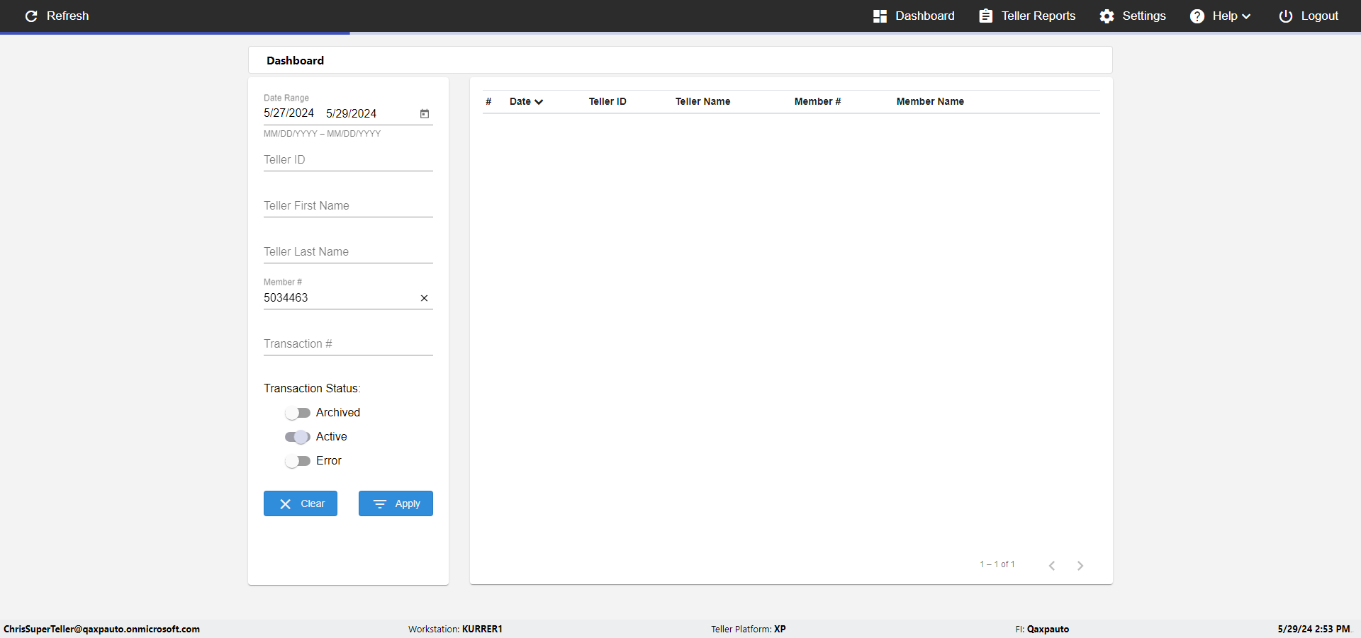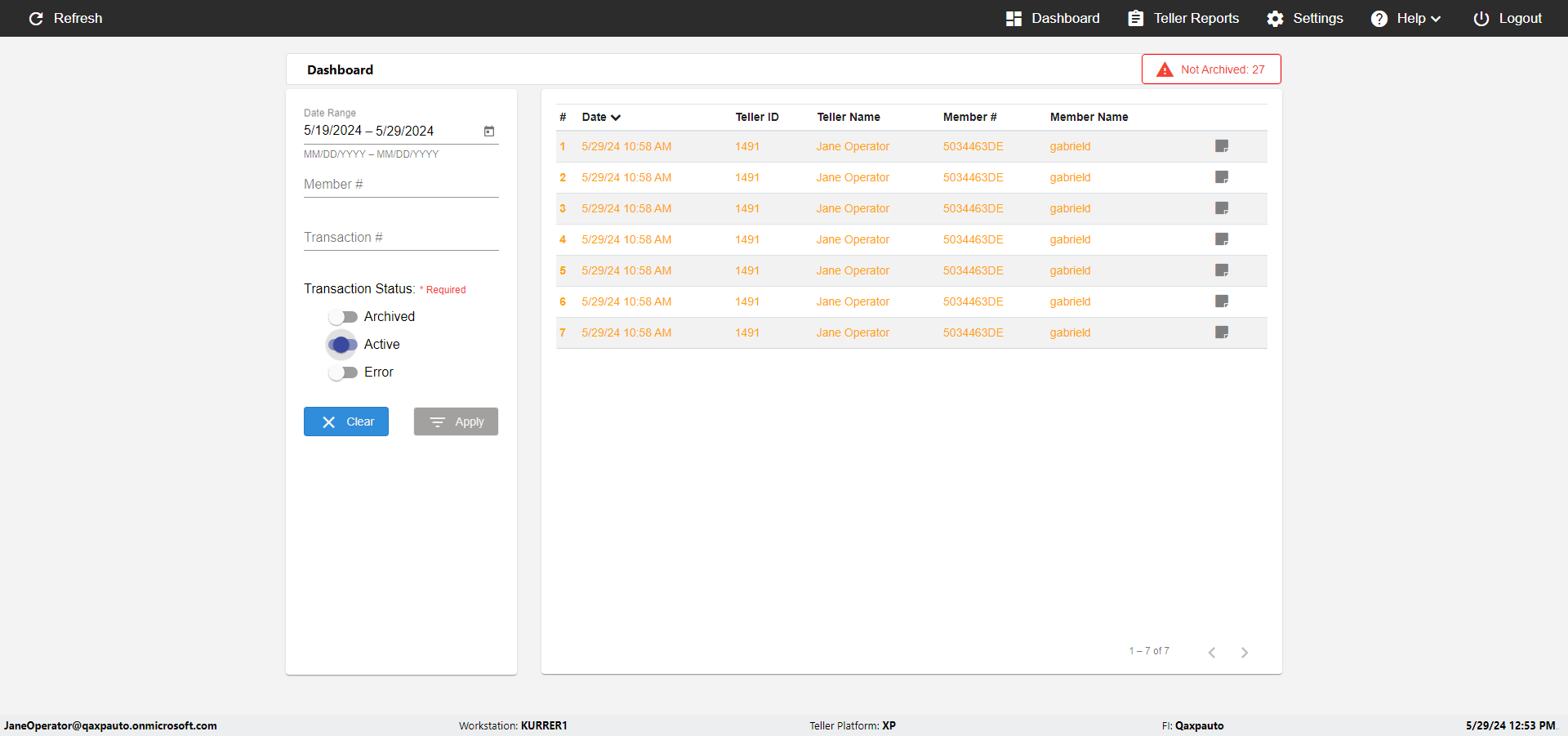 | {UserPwd=iMM2022!, Description=verify Error Messages in Report Page for Date, Teller ID=, errorMessage=Date cannot exceed 7 days after today.;Date cannot exceed 7 days after today., Teller Email=, View=, Date=12/28/2025 - 2/28/2026, Clear=, Workstation=, errorint=2, TestID=verifyErrorMessagesInReports, Transaction=, Header=, Username=ChrisSuperTeller@Qaxpauto.onmicrosoft.com, Export=, Member #=, Search Text=, Level=} |