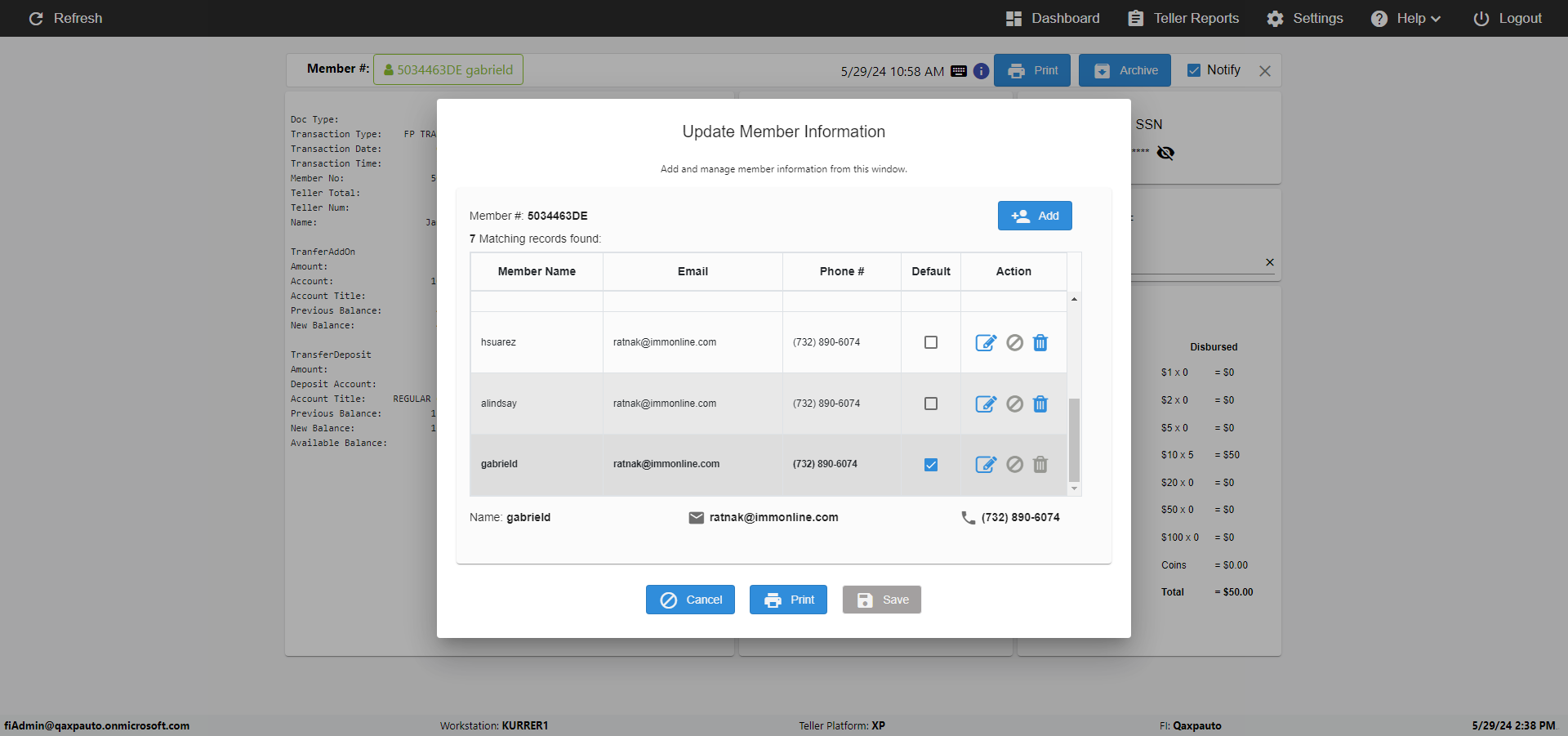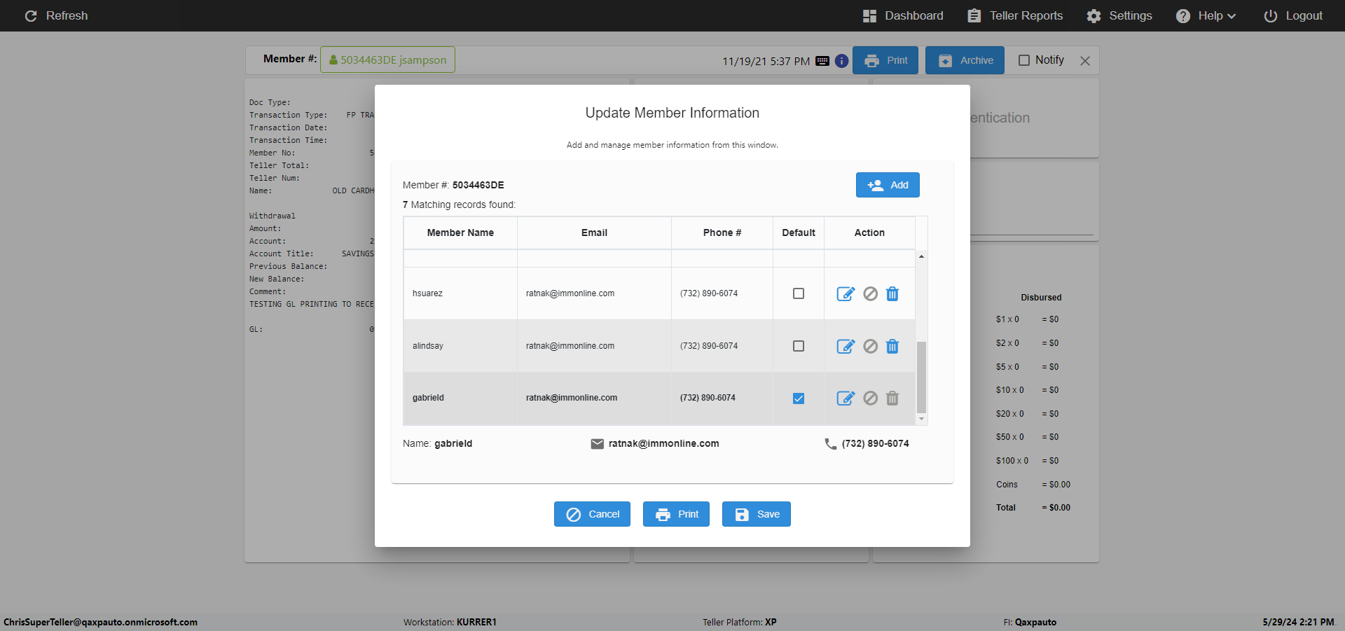 | {Toggel=TRUE, Archived Transactions=no, Description=verify MemberID And Archive Information Update, Email=Hohn@email.com, Archive=, Document Type=, Notify=, SignatureTab=, DisbursedExpression=, Operation=, Teller LastName=, Disbursed cash=, errorint=, TestID=verifyMemberAddUpdateContactInfo, Print=, DisbursedExpressionValue=, Phone=(555) 021-3315, ReceivedCashValue=, Member=5034463, UserPwd=iMM2022!, Transtatus=Archived-false;Active-true;Error-false, Docment ID=, Teller=, Teller FirstName=, errorMessage=, ReceivedExpressionValue=, Date=11/01/2021 - 11/20/2021, Platfrom=, Received cash=, Transaction=, Header=, Expression=, Username=ChrisSuperTeller@Qaxpauto.onmicrosoft.com, DisbursedCashValue=, FullName=John, ReceivedExpression=, SMS=, Memo=} |