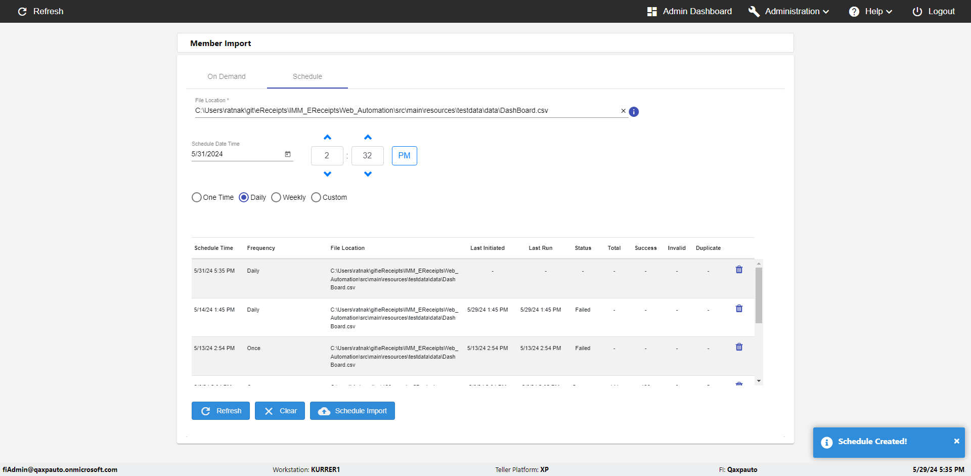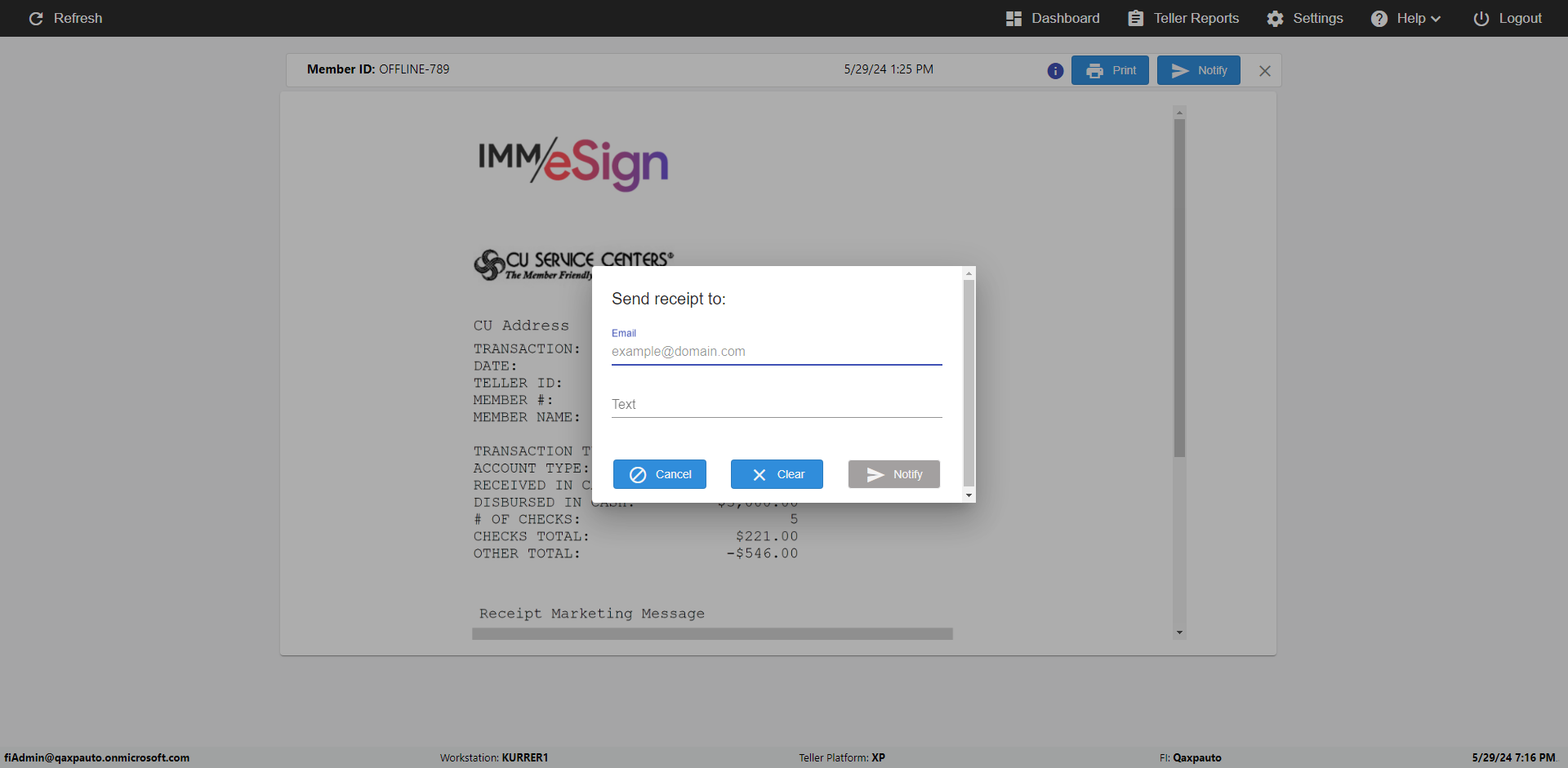 | {Description=verify Notify In Archive Receipt Page, Email=Ctest@gmail.com, Teller LastName=, print signatur=, errorint=2, TestID=verifyNotifyInArchiveReceiptPage, Color Transactions=yes, Member=, UserPwd=iMM2022!, Transtatus=Archived-True;Active-False;Error-False, Receipt=, Report=, Teller=, Teller FirstName=, errorMessage=Invalid Email Address;Invalid Phone Number, Suppress=, Date=, print Disburstments=, Print signature line=, Type=, Transaction=, Header=, Username=ChrisSuperTeller@Qaxpauto.onmicrosoft.com, SMS=(732) 890-6074, Sign=, Scan=} |