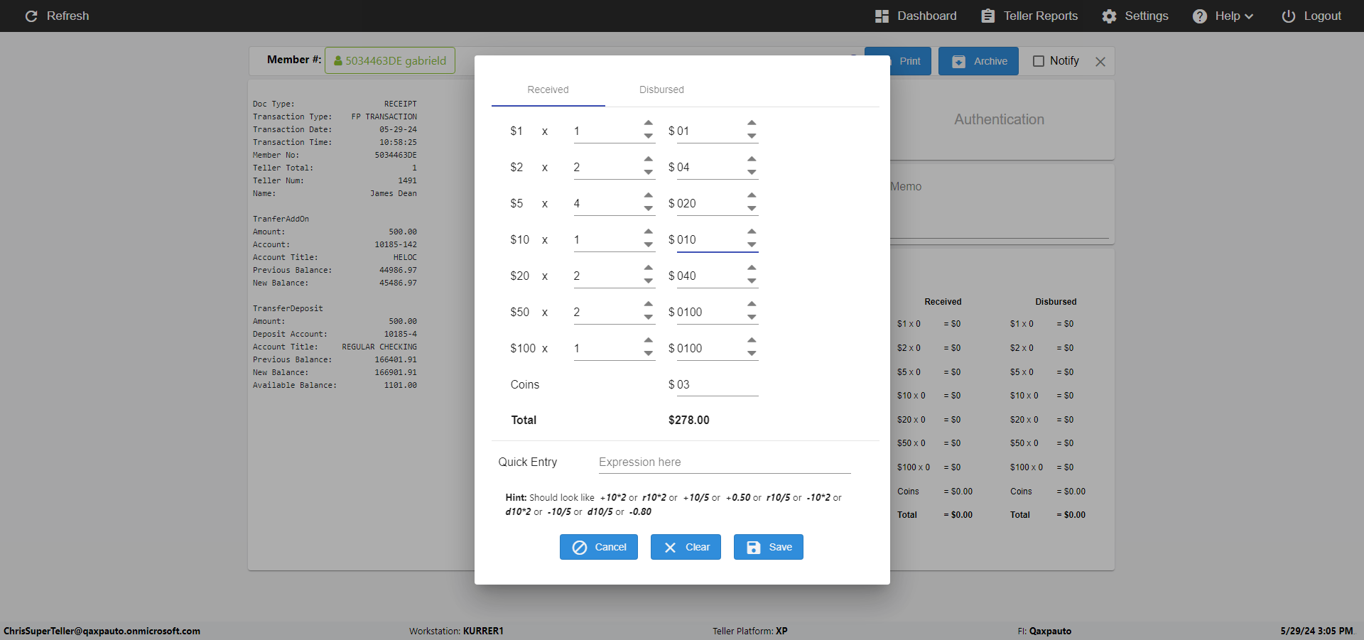 | {Toggel=, Archived Transactions=no, Description=verify Received And Disbursed Grid In Receipt Page, Email=, Archive=, Document Type=, Notify=, SignatureTab=, DisbursedExpression=, Operation=, Teller LastName=, Disbursed cash=1-1|2-2|5-2|10-1|20-2|50-1|100-1|Coins-3, errorint=, TestID=verifyReceivedAndDisbursedGridInReceiptPage, Print=, DisbursedExpressionValue=, Phone=, ReceivedCashValue=, Member=, UserPwd=iMM2022!, Transtatus=Archived-false;Active-true;Error-false, Docment ID=, Teller=, Teller FirstName=, errorMessage=, ReceivedExpressionValue=, Date=, Platfrom=, Received cash=1-1|2-2|5-2|10-1|20-2|50-1|100-1|Coins-3, Transaction=, Header=, Expression=|+1*2, Username=ChrisSuperTeller@Qaxpauto.onmicrosoft.com, DisbursedCashValue=, FullName=, ReceivedExpression=, SMS=, Memo=} |