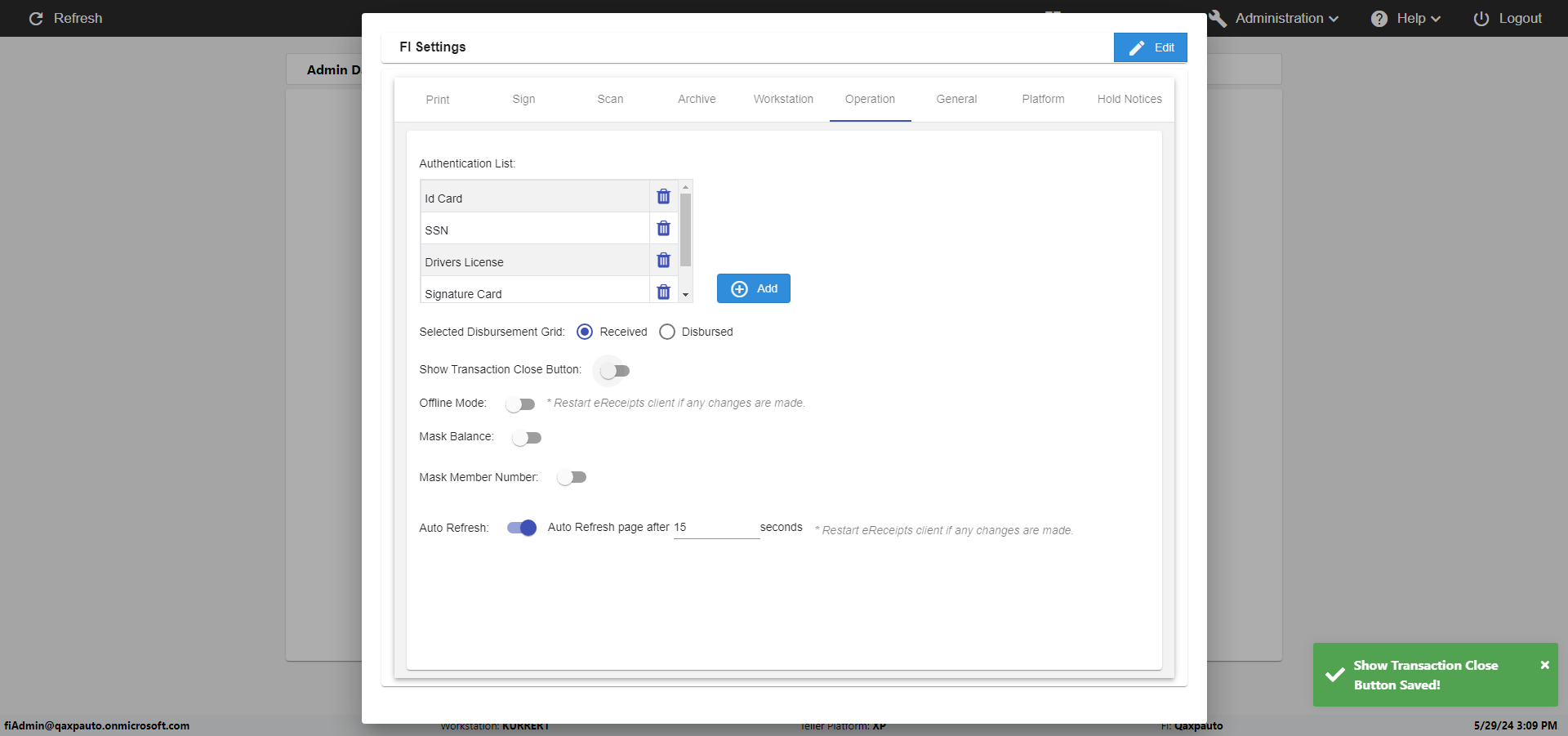 | {Toggel=, Archived Transactions=no, Description=verify Show Transaction In Receipt Page, Email=, Archive=, Document Type=, Notify=, SignatureTab=, DisbursedExpression=, Operation=Show Transaction Close Button-true;, Teller LastName=, Disbursed cash=, errorint=, TestID=verifyShowTransactionCloseBtn, Print=, DisbursedExpressionValue=, Phone=, ReceivedCashValue=, Member=, UserPwd=iMM2022!, Transtatus=Archived-false;Active-true;Error-false, Docment ID=, Teller=, Teller FirstName=, errorMessage=, ReceivedExpressionValue=, Date=, Platfrom=Enable Hold Notice-true;, Received cash=, Transaction=, Header=, Expression=, Username=fiAdmin@Qaxpauto.onmicrosoft.com, DisbursedCashValue=, FullName=, ReceivedExpression=, SMS=, Memo=} |