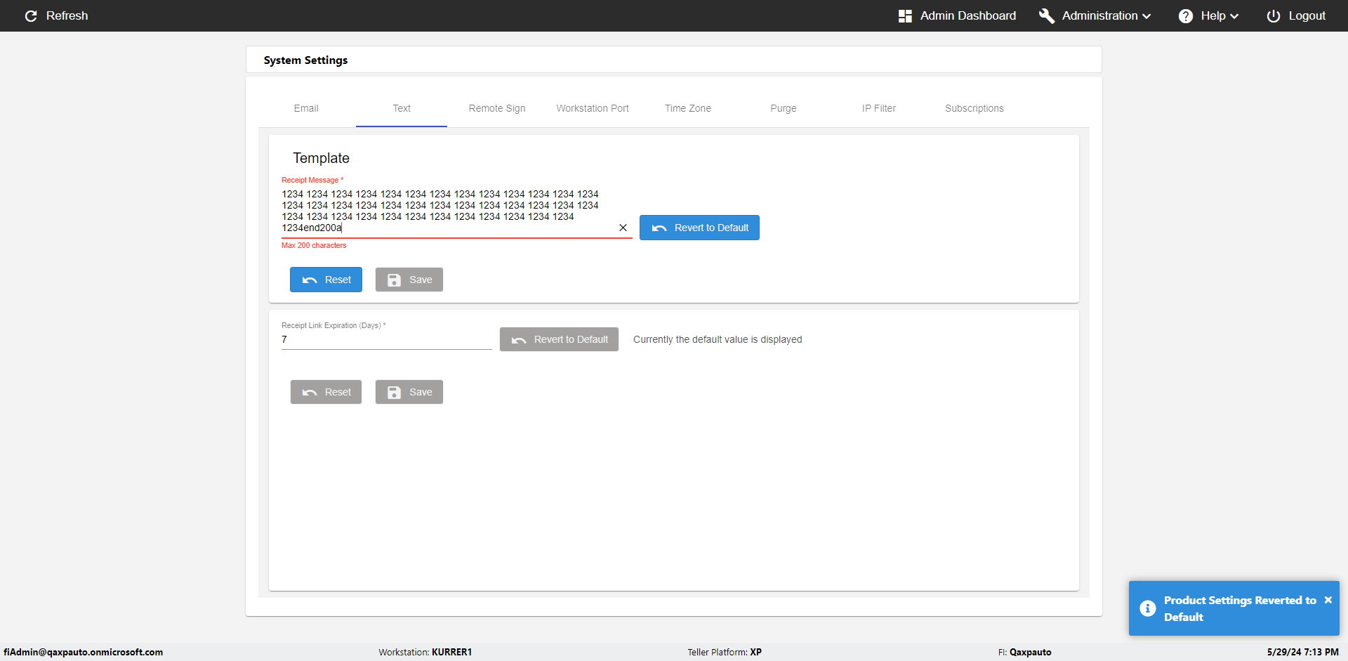 | {Toggel=, Archived Transactions=yes, Description=verify End TO End Test OF Normal Teller In Ereceipt Page, Email=FALSE, Archive=FALSE, Document Type=SSN, Notify=TRUE, SignatureTab=Touch,, DisbursedExpression=|-10*5, Operation=, Teller LastName=, Disbursed cash=1-1|2-2|5-2|10-1|20-2|50-1|100-1|Coins-3, errorint=, TestID=verifyEndTOEndTestOFNormalTellerInEreceipt, Print=FALSE, DisbursedExpressionValue=TRUE, Phone=(555) 021-3315, ReceivedCashValue=FALSE, Member=, UserPwd=iMM2022!, Transtatus=Archived-false;Active-true;Error-false, Docment ID=216554, Teller=, Teller FirstName=, errorMessage=, ReceivedExpressionValue=TRUE, Date=, Platfrom=, Received cash=1-1|2-2|5-2|10-1|20-2|50-1|100-1|Coins-3, Transaction=, Header=, Expression=, Username=ChrisSuperTeller@Qaxpauto.onmicrosoft.com, DisbursedCashValue=FALSE, FullName=, ReceivedExpression=|+100*2, SMS=FALSE, Memo=Given to the client} |