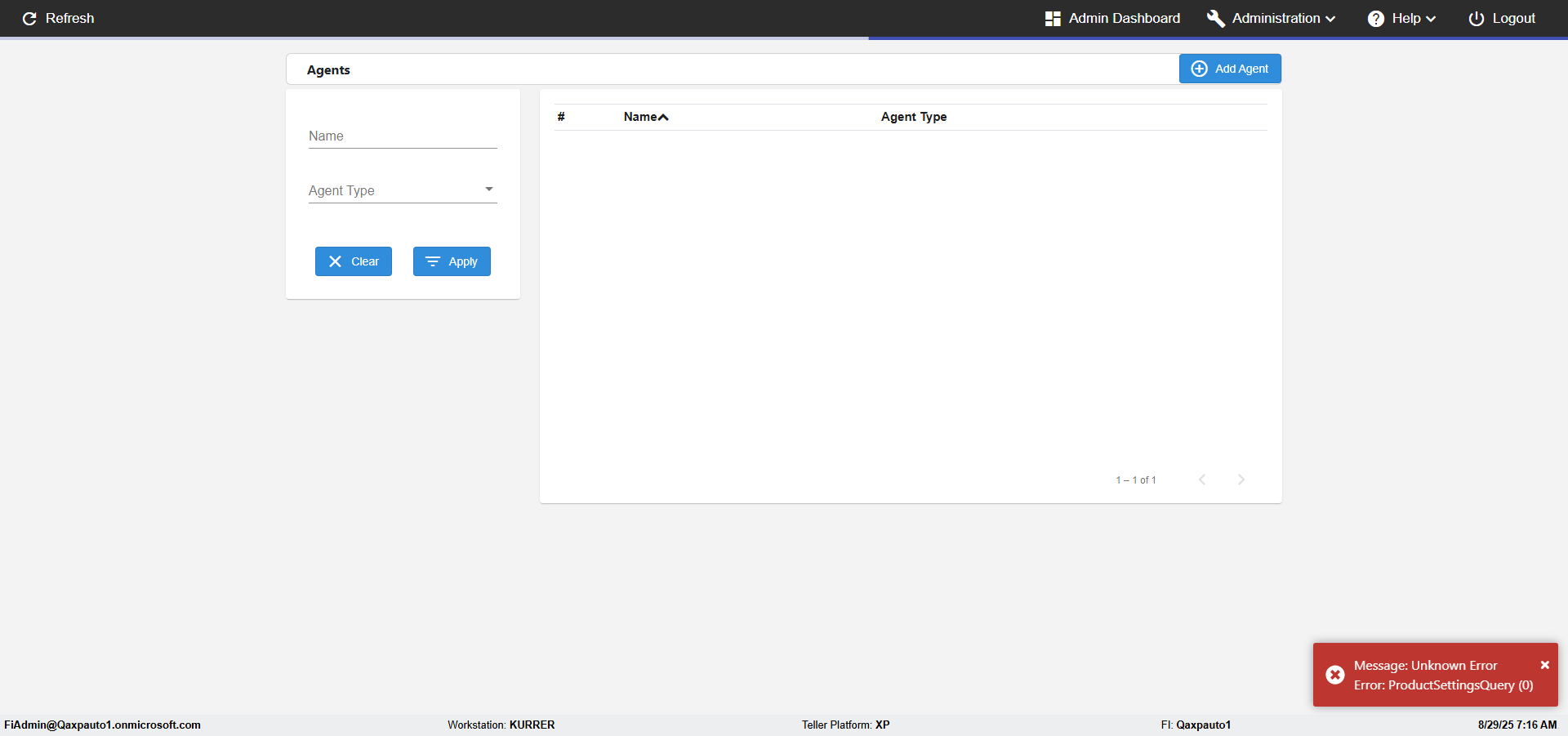 Successfully navigated to the 'Agent' page after refresh [ScreenShot] --- 29 Aug 07:16:25 642 - Element is displayed:: [[RemoteWebDriver: chrome on Windows 10 (a2058b199affafd08fd4c9255bd27725)] -> id: immAdministration]