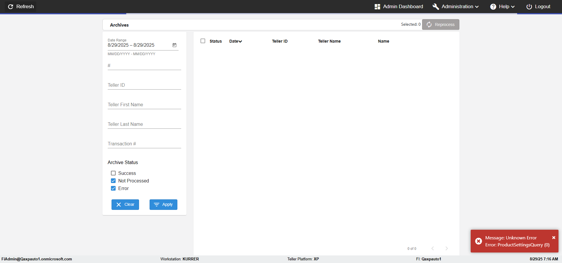 Successfully navigated to the 'Archives' page after refresh [ScreenShot] --- 29 Aug 07:16:33 239 - Element is displayed:: [[RemoteWebDriver: chrome on Windows 10 (a2058b199affafd08fd4c9255bd27725)] -> id: immAdministration]