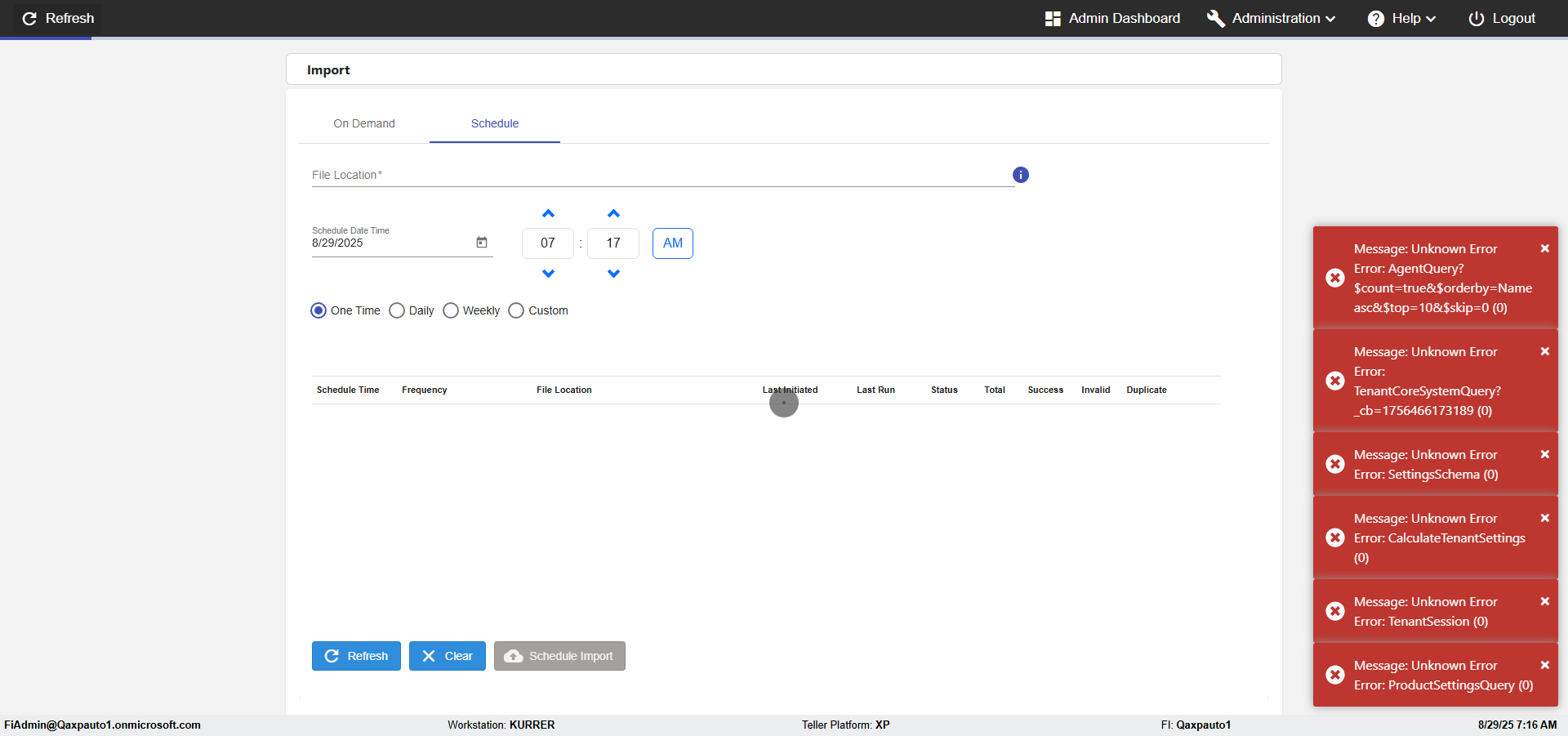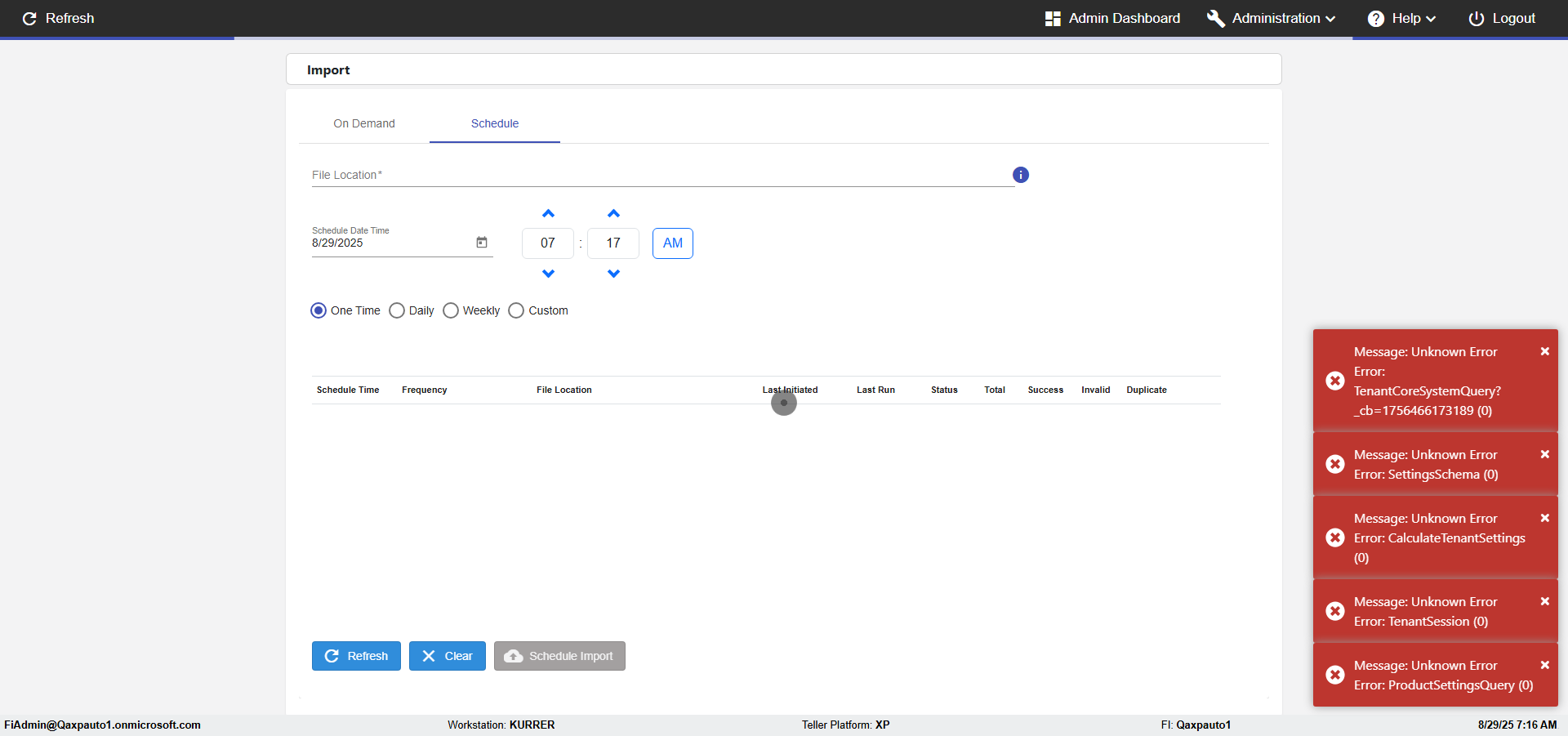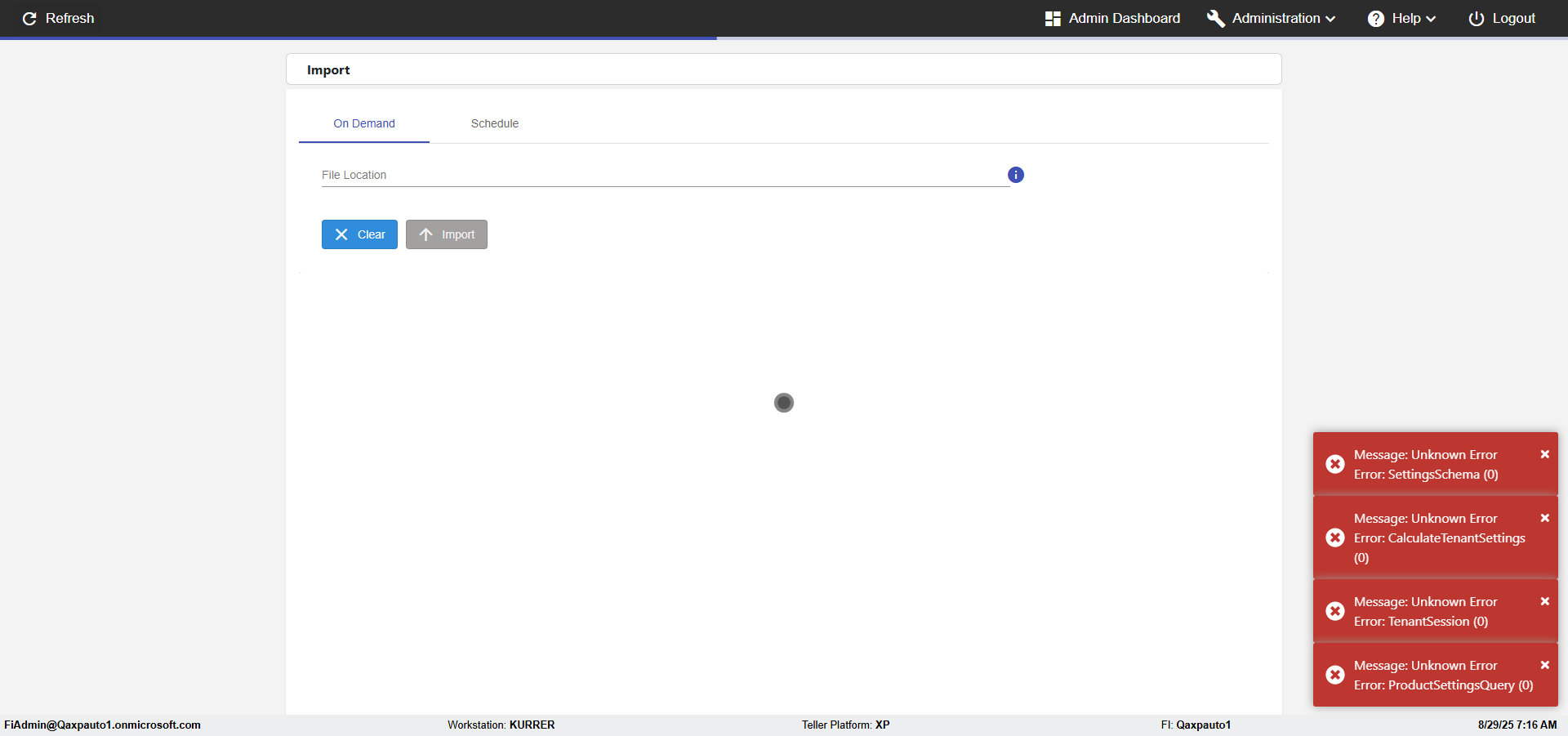 Successfully navigated to the 'Member Import Schedule' page after refresh [ScreenShot] --- 29 Aug 07:16:56 177 - Element is displayed:: [[RemoteWebDriver: chrome on Windows 10 (a2058b199affafd08fd4c9255bd27725)] -> id: immAdministration]