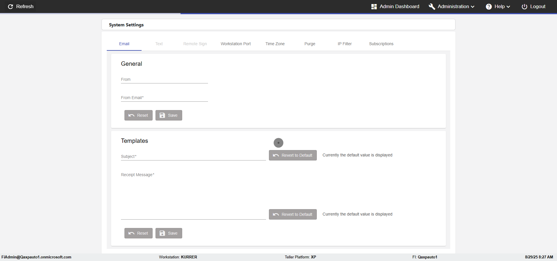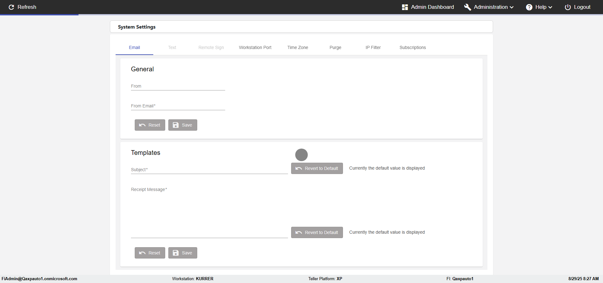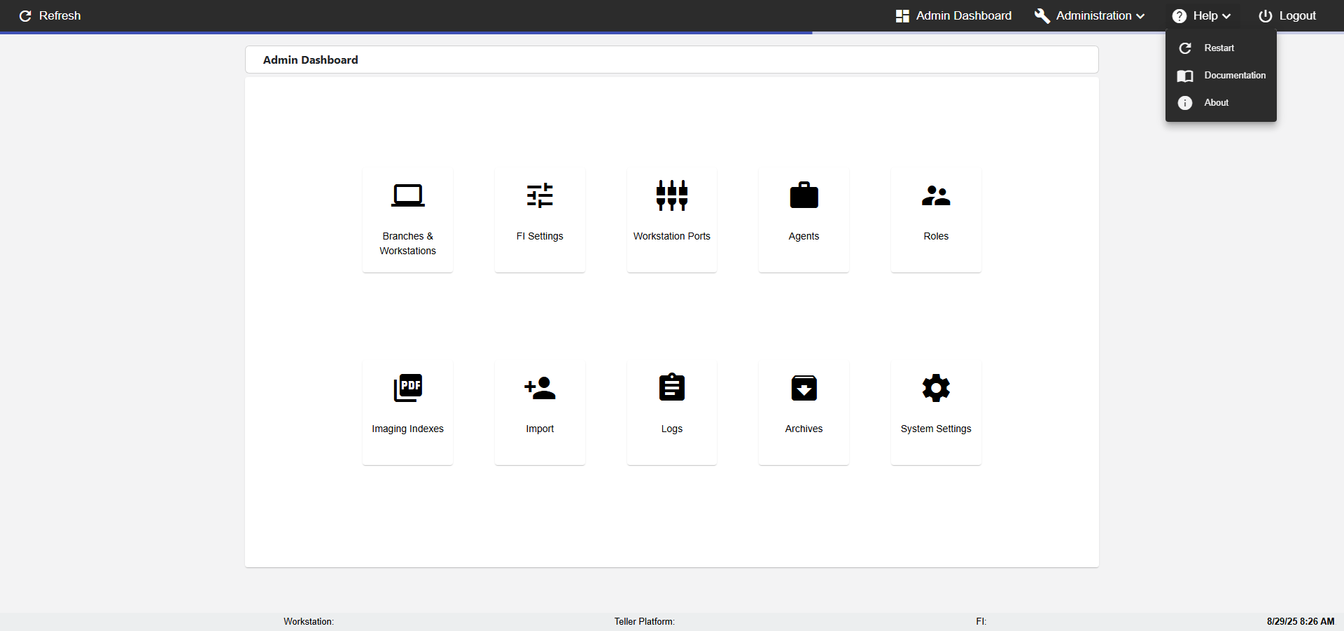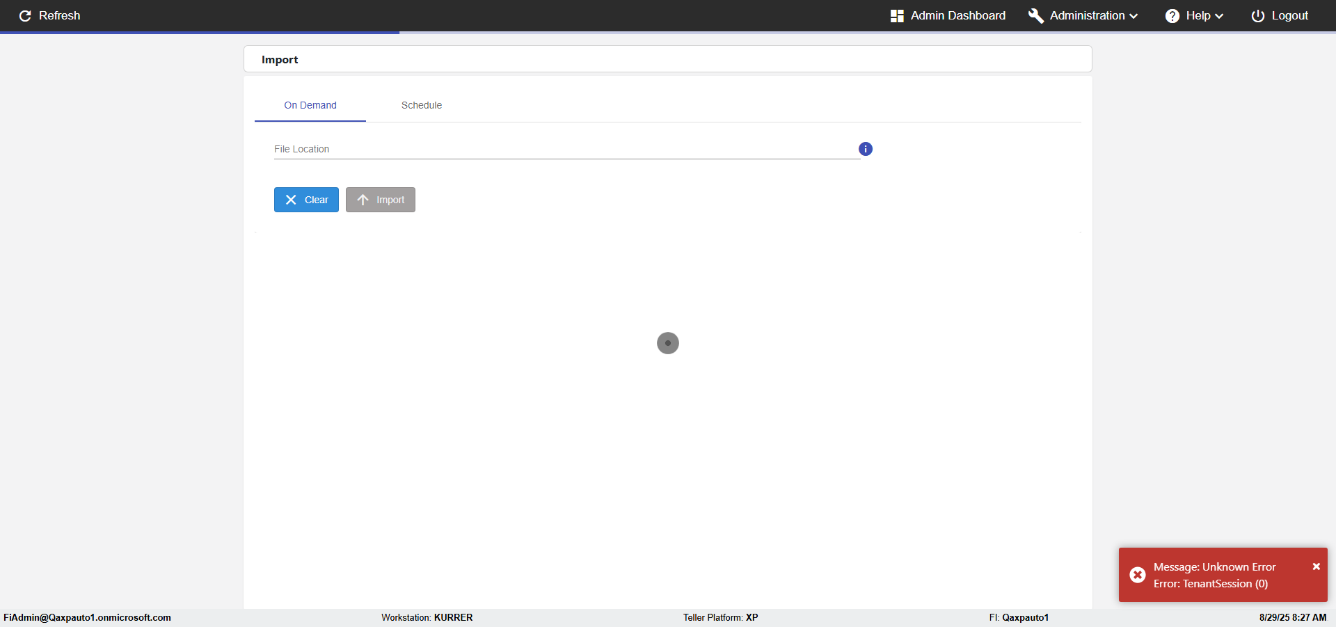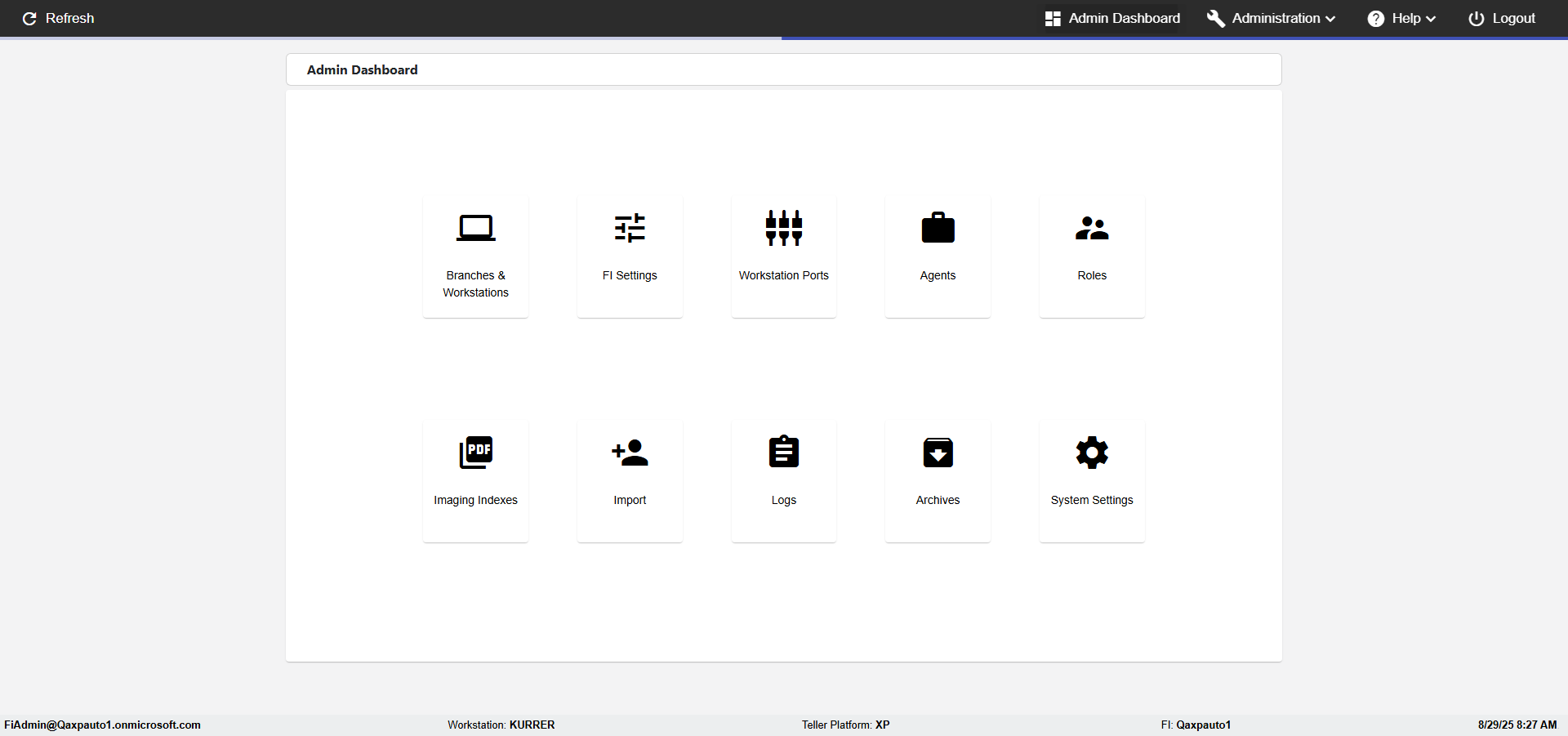 Control Panel, FI Management, Agents, Roles, Imaging Indexes, Member Import, Logging, Archives, About, Logout Actual(Passed): Successfully verified the Verfiy Administration menu has the following options- Control Panel, FI Management, Agents, Roles, Imaging Indexes, Member Import, Logging, Archives, About, Logout [ScreenShot] --- 29 Aug 08:26:09 411 - Element is displayed:: [[RemoteWebDriver: chrome on Windows 10 (2d75e071599815b149fe28d2f2104216)] -> id: immAdministration] --- 29 Aug 08:26:11 602 - Element is displayed:: [[RemoteWebDriver: chrome on Windows 10 (2d75e071599815b149fe28d2f2104216)] -> id: immAdministration] --- 29 Aug 08:26:13 871 - Element is displayed:: [[RemoteWebDriver: chrome on Windows 10 (2d75e071599815b149fe28d2f2104216)] -> id: immMenuLogging] Successfully navigated to the 'Logging' page [ScreenShot] --- 29 Aug 08:26:15 041 - Element is displayed:: [[RemoteWebDriver: chrome on Windows 10 (2d75e071599815b149fe28d2f2104216)] -> id: immRefresh] Successfully navigated to the 'Logging' page after refresh [ScreenShot] --- 29 Aug 08:26:15 434 - Element is displayed:: [[RemoteWebDriver: chrome on Windows 10 (2d75e071599815b149fe28d2f2104216)] -> id: immAdministration] --- 29 Aug 08:26:17 666 - Element is displayed:: [[RemoteWebDriver: chrome on Windows 10 (2d75e071599815b149fe28d2f2104216)] -> id: immAdministration] --- 29 Aug 08:26:18 577 - Element is displayed:: [[RemoteWebDriver: chrome on Windows 10 (2d75e071599815b149fe28d2f2104216)] -> id: immMenuAgents] Successfully navigated to the 'Agent' page [ScreenShot] --- 29 Aug 08:26:21 401 - Element is displayed:: [[RemoteWebDriver: chrome on Windows 10 (2d75e071599815b149fe28d2f2104216)] -> id: immRefresh] Successfully navigated to the 'Agent' page after refresh [ScreenShot] --- 29 Aug 08:26:21 762 - Element is displayed:: [[RemoteWebDriver: chrome on Windows 10 (2d75e071599815b149fe28d2f2104216)] -> id: immAdministration] --- 29 Aug 08:26:23 945 - Element is displayed:: [[RemoteWebDriver: chrome on Windows 10 (2d75e071599815b149fe28d2f2104216)] -> id: immAdministration] --- 29 Aug 08:26:26 278 - Element is displayed:: [[RemoteWebDriver: chrome on Windows 10 (2d75e071599815b149fe28d2f2104216)] -> id: immMenuArchive] Successfully navigated to the 'Archives' page [ScreenShot] --- 29 Aug 08:26:29 131 - Element is displayed:: [[RemoteWebDriver: chrome on Windows 10 (2d75e071599815b149fe28d2f2104216)] -> id: immRefresh] Successfully navigated to the 'Archives' page after refresh [ScreenShot] --- 29 Aug 08:26:29 527 - Element is displayed:: [[RemoteWebDriver: chrome on Windows 10 (2d75e071599815b149fe28d2f2104216)] -> id: immAdministration] --- 29 Aug 08:26:31 735 - Element is displayed:: [[RemoteWebDriver: chrome on Windows 10 (2d75e071599815b149fe28d2f2104216)] -> id: immAdministration] --- 29 Aug 08:26:32 203 - Element is displayed:: [[RemoteWebDriver: chrome on Windows 10 (2d75e071599815b149fe28d2f2104216)] -> id: immMenuRoles] Successfully navigated to the 'Roles' page [ScreenShot] --- 29 Aug 08:26:34 981 - Element is displayed:: [[RemoteWebDriver: chrome on Windows 10 (2d75e071599815b149fe28d2f2104216)] -> id: immRefresh] Successfully navigated to the 'Roles' page after refresh [ScreenShot] --- 29 Aug 08:26:35 396 - Element is displayed:: [[RemoteWebDriver: chrome on Windows 10 (2d75e071599815b149fe28d2f2104216)] -> id: immAdministration] --- 29 Aug 08:26:37 600 - Element is displayed:: [[RemoteWebDriver: chrome on Windows 10 (2d75e071599815b149fe28d2f2104216)] -> id: immAdministration] --- 29 Aug 08:26:40 380 - Element is displayed:: [[RemoteWebDriver: chrome on Windows 10 (2d75e071599815b149fe28d2f2104216)] -> id: immMenuMemberImportOnDemand] Successfully navigated to the 'Member Import On Demand' page [ScreenShot] --- 29 Aug 08:26:43 328 - Element is displayed:: [[RemoteWebDriver: chrome on Windows 10 (2d75e071599815b149fe28d2f2104216)] -> id: immRefresh] Successfully navigated to the 'Member Import On Demand' page after refresh [ScreenShot] --- 29 Aug 08:26:43 758 - Element is displayed:: [[RemoteWebDriver: chrome on Windows 10 (2d75e071599815b149fe28d2f2104216)] -> id: immAdministration] --- 29 Aug 08:26:46 041 - Element is displayed:: [[RemoteWebDriver: chrome on Windows 10 (2d75e071599815b149fe28d2f2104216)] -> id: immAdministration] --- 29 Aug 08:26:48 631 - Element is displayed:: [[RemoteWebDriver: chrome on Windows 10 (2d75e071599815b149fe28d2f2104216)] -> id: immMenuMemberImportSchedule] Successfully navigated to the 'Member Import Schedule' page [ScreenShot] --- 29 Aug 08:26:51 353 - Element is displayed:: [[RemoteWebDriver: chrome on Windows 10 (2d75e071599815b149fe28d2f2104216)] -> id: immRefresh] Successfully navigated to the 'Member Import Schedule' page after refresh [ScreenShot] --- 29 Aug 08:26:51 725 - Element is displayed:: [[RemoteWebDriver: chrome on Windows 10 (2d75e071599815b149fe28d2f2104216)] -> id: immAdministration] --- 29 Aug 08:26:53 907 - Element is displayed:: [[RemoteWebDriver: chrome on Windows 10 (2d75e071599815b149fe28d2f2104216)] -> id: immAdministration] --- 29 Aug 08:26:54 239 - Element is displayed:: [[RemoteWebDriver: chrome on Windows 10 (2d75e071599815b149fe28d2f2104216)] -> id: immMenuImagingIndexes] Successfully navigated to the 'Imaging Indexes' page [ScreenShot] --- 29 Aug 08:26:57 100 - Element is displayed:: [[RemoteWebDriver: chrome on Windows 10 (2d75e071599815b149fe28d2f2104216)] -> id: immRefresh] Successfully navigated to the 'Imaging Indexes' page after refresh [ScreenShot] --- 29 Aug 08:26:57 449 - Element is displayed:: [[RemoteWebDriver: chrome on Windows 10 (2d75e071599815b149fe28d2f2104216)] -> id: immAdministration] --- 29 Aug 08:26:59 621 - Element is displayed:: [[RemoteWebDriver: chrome on Windows 10 (2d75e071599815b149fe28d2f2104216)] -> id: immAdministration] --- 29 Aug 08:27:04 196 - Element is displayed:: [[RemoteWebDriver: chrome on Windows 10 (2d75e071599815b149fe28d2f2104216)] -> id: immMenuSystemSettingsSMTP] Successfully navigated to the 'System Se