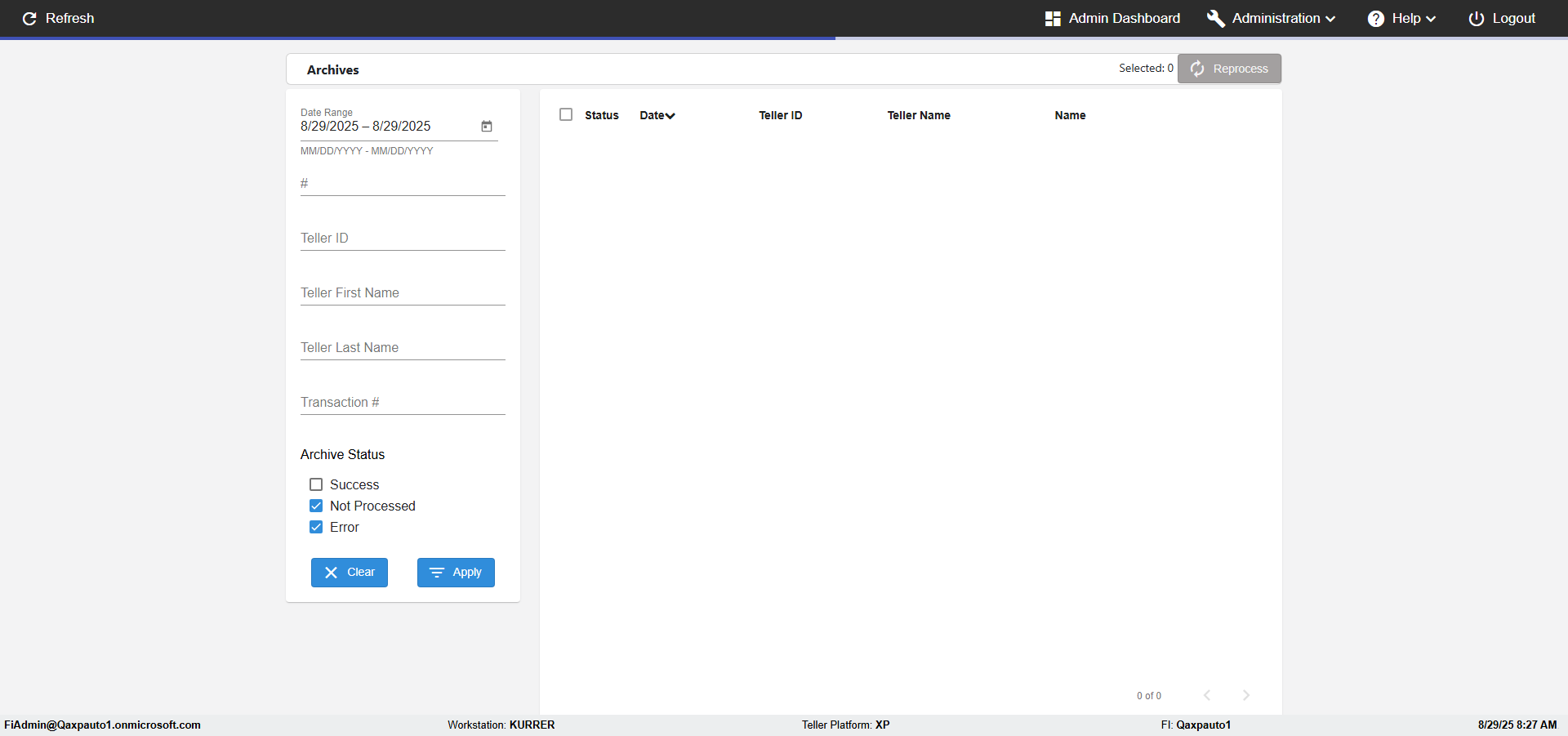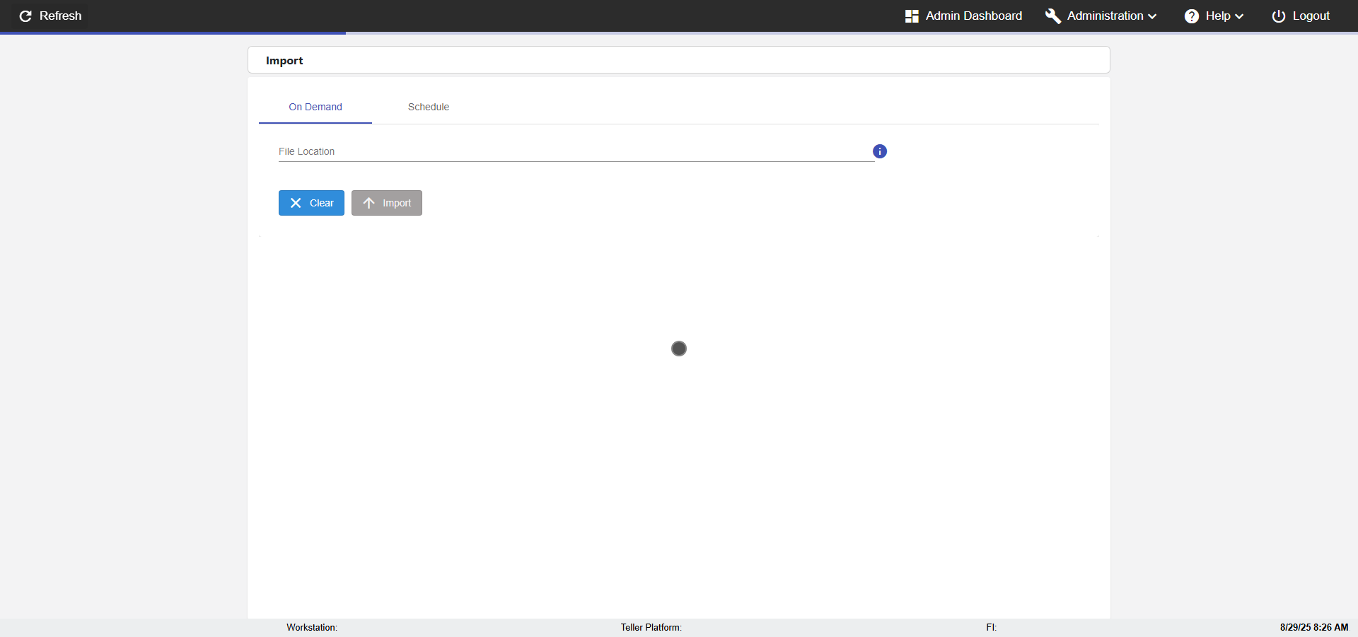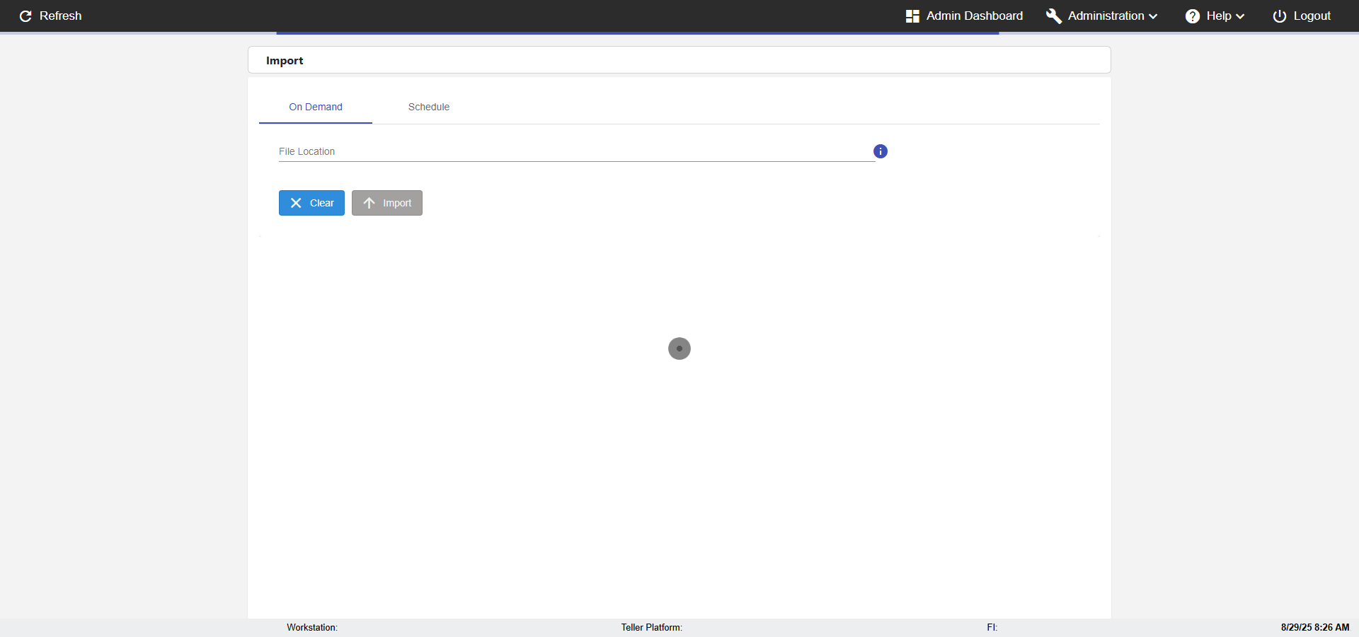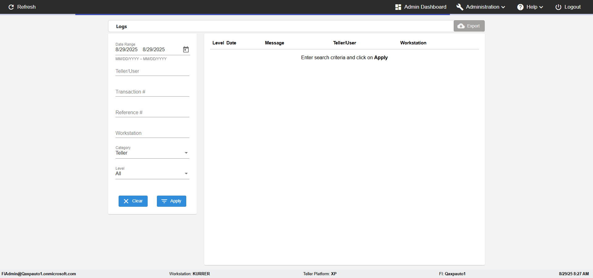 Control Panel, FI Management, Agents, Roles, Imaging Indexes, Member Import, Logging, Archives, About, Logout Actual(Passed): Successfully verified the Verfiy Administration menu has the following options- Control Panel, FI Management, Agents, Roles, Imaging Indexes, Member Import, Logging, Archives, About, Logout [ScreenShot] --- 29 Aug 08:26:09 411 - Element is displayed:: [[RemoteWebDriver: chrome on Windows 10 (2d75e071599815b149fe28d2f2104216)] -> id: immAdministration] --- 29 Aug 08:26:11 602 - Element is displayed:: [[RemoteWebDriver: chrome on Windows 10 (2d75e071599815b149fe28d2f2104216)] -> id: immAdministration] --- 29 Aug 08:26:13 871 - Element is displayed:: [[RemoteWebDriver: chrome on Windows 10 (2d75e071599815b149fe28d2f2104216)] -> id: immMenuLogging] Successfully navigated to the 'Logging' page [ScreenShot] --- 29 Aug 08:26:15 041 - Element is displayed:: [[RemoteWebDriver: chrome on Windows 10 (2d75e071599815b149fe28d2f2104216)] -> id: immRefresh] Successfully navigated to the 'Logging' page after refresh [ScreenShot] --- 29 Aug 08:26:15 434 - Element is displayed:: [[RemoteWebDriver: chrome on Windows 10 (2d75e071599815b149fe28d2f2104216)] -> id: immAdministration] --- 29 Aug 08:26:17 666 - Element is displayed:: [[RemoteWebDriver: chrome on Windows 10 (2d75e071599815b149fe28d2f2104216)] -> id: immAdministration] --- 29 Aug 08:26:18 577 - Element is displayed:: [[RemoteWebDriver: chrome on Windows 10 (2d75e071599815b149fe28d2f2104216)] -> id: immMenuAgents] Successfully navigated to the 'Agent' page [ScreenShot] --- 29 Aug 08:26:21 401 - Element is displayed:: [[RemoteWebDriver: chrome on Windows 10 (2d75e071599815b149fe28d2f2104216)] -> id: immRefresh] Successfully navigated to the 'Agent' page after refresh [ScreenShot] --- 29 Aug 08:26:21 762 - Element is displayed:: [[RemoteWebDriver: chrome on Windows 10 (2d75e071599815b149fe28d2f2104216)] -> id: immAdministration] --- 29 Aug 08:26:23 945 - Element is displayed:: [[RemoteWebDriver: chrome on Windows 10 (2d75e071599815b149fe28d2f2104216)] -> id: immAdministration] --- 29 Aug 08:26:26 278 - Element is displayed:: [[RemoteWebDriver: chrome on Windows 10 (2d75e071599815b149fe28d2f2104216)] -> id: immMenuArchive] Successfully navigated to the 'Archives' page [ScreenShot] --- 29 Aug 08:26:29 131 - Element is displayed:: [[RemoteWebDriver: chrome on Windows 10 (2d75e071599815b149fe28d2f2104216)] -> id: immRefresh] Successfully navigated to the 'Archives' page after refresh [ScreenShot] --- 29 Aug 08:26:29 527 - Element is displayed:: [[RemoteWebDriver: chrome on Windows 10 (2d75e071599815b149fe28d2f2104216)] -> id: immAdministration] --- 29 Aug 08:26:31 735 - Element is displayed:: [[RemoteWebDriver: chrome on Windows 10 (2d75e071599815b149fe28d2f2104216)] -> id: immAdministration] --- 29 Aug 08:26:32 203 - Element is displayed:: [[RemoteWebDriver: chrome on Windows 10 (2d75e071599815b149fe28d2f2104216)] -> id: immMenuRoles] Successfully navigated to the 'Roles' page [ScreenShot] --- 29 Aug 08:26:34 981 - Element is displayed:: [[RemoteWebDriver: chrome on Windows 10 (2d75e071599815b149fe28d2f2104216)] -> id: immRefresh] Successfully navigated to the 'Roles' page after refresh [ScreenShot] --- 29 Aug 08:26:35 396 - Element is displayed:: [[RemoteWebDriver: chrome on Windows 10 (2d75e071599815b149fe28d2f2104216)] -> id: immAdministration] --- 29 Aug 08:26:37 600 - Element is displayed:: [[RemoteWebDriver: chrome on Windows 10 (2d75e071599815b149fe28d2f2104216)] -> id: immAdministration] --- 29 Aug 08:26:40 380 - Element is displayed:: [[RemoteWebDriver: chrome on Windows 10 (2d75e071599815b149fe28d2f2104216)] -> id: immMenuMemberImportOnDemand] Successfully navigated to the 'Member Import On Demand' page [ScreenShot] --- 29 Aug 08:26:43 328 - Element is displayed:: [[RemoteWebDriver: chrome on Windows 10 (2d75e071599815b149fe28d2f2104216)] -> id: immRefresh] Successfully navigated to the 'Member Import On Demand' page after refresh [ScreenShot] --- 29 Aug 08:26:43 758 - Element is displayed:: [[RemoteWebDriver: chrome on Windows 10 (2d75e071599815b149fe28d2f2104216)] -> id: immAdministration] --- 29 Aug 08:26:46 041 - Element is displayed:: [[RemoteWebDriver: chrome on Windows 10 (2d75e071599815b149fe28d2f2104216)] -> id: immAdministration] --- 29 Aug 08:26:48 631 - Element is displayed:: [[RemoteWebDriver: chrome on Windows 10 (2d75e071599815b149fe28d2f2104216)] -> id: immMenuMemberImportSchedule] Successfully navigated to the 'Member Import Schedule' page [ScreenShot] --- 29 Aug 08:26:51 353 - Element is displayed:: [[RemoteWebDriver: chrome on Windows 10 (2d75e071599815b149fe28d2f2104216)] -> id: immRefresh] Successfully navigated to the 'Member Import Schedule' page after refresh [ScreenShot] --- 29 Aug 08:26:51 725 - Element is displayed:: [[RemoteWebDriver: chrome on Windows 10 (2d75e071599815b149fe28d2f2104216)] -> id: immAdministration] --- 29 Aug 08:26:53 907 - Element is displayed:: [[RemoteWebDriver: chrome on Windows 10 (2d75e071599815b149fe28d2f2104216)] -> id: immAdministration] --- 29 Aug 08:26:54 239 - Element is displayed:: [[RemoteWebDriver: chrome on Windows 10 (2d75e071599815b149fe28d2f2104216)] -> id: immMenuImagingIndexes] Successfully navigated to the 'Imaging Indexes' page [ScreenShot] --- 29 Aug 08:26:57 100 - Element is displayed:: [[RemoteWebDriver: chrome on Windows 10 (2d75e071599815b149fe28d2f2104216)] -> id: immRefresh] Successfully navigated to the 'Imaging Indexes' page after refresh [ScreenShot] --- 29 Aug 08:26:57 449 - Element is displayed:: [[RemoteWebDriver: chrome on Windows 10 (2d75e071599815b149fe28d2f2104216)] -> id: immAdministration] --- 29 Aug 08:26:59 621 - Element is displayed:: [[RemoteWebDriver: chrome on Windows 10 (2d75e071599815b149fe28d2f2104216)] -> id: immAdministration] --- 29 Aug 08:27:04 196 - Element is displayed:: [[RemoteWebDriver: chrome on Windows 10 (2d75e071599815b149fe28d2f2104216)] -> id: immMenuSystemSettingsSMTP] Successfully navigated to the 'System Se
