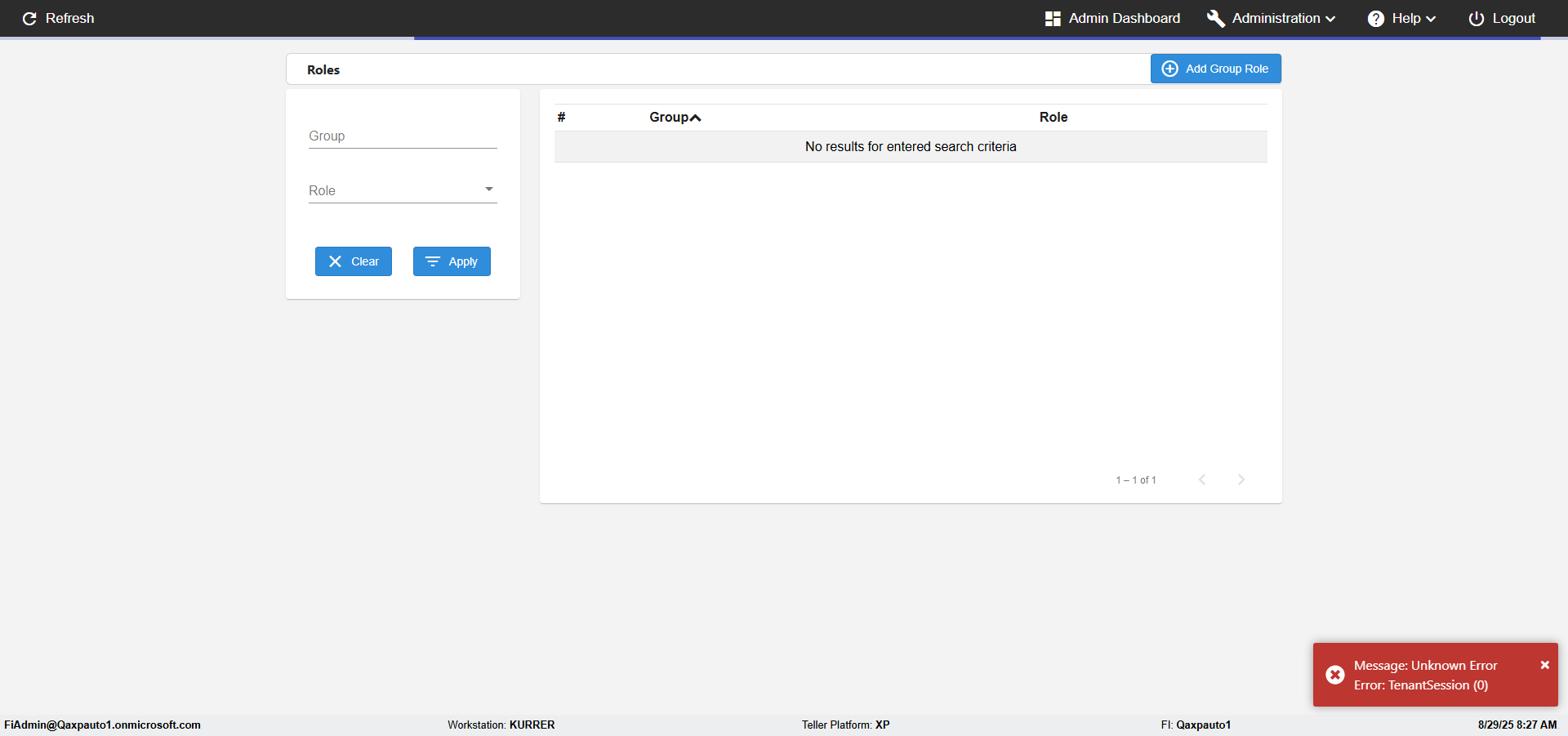 | {=, TestID=verifyUIElementsInAdminControlPanel, UserPwd=iMM2022!, Type=, Description=verify UI elements and header options in Admin portal, Username=Fiadmin@Qaxpauto1.onmicrosoft.com, Version=, DocumentURL=} |