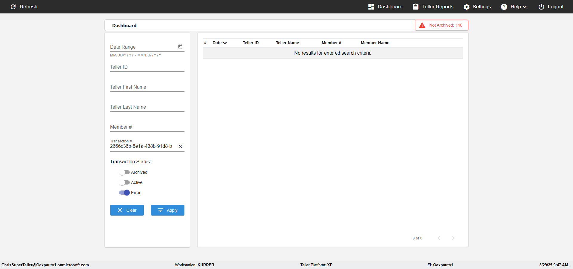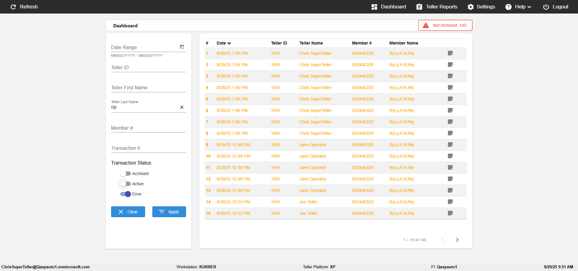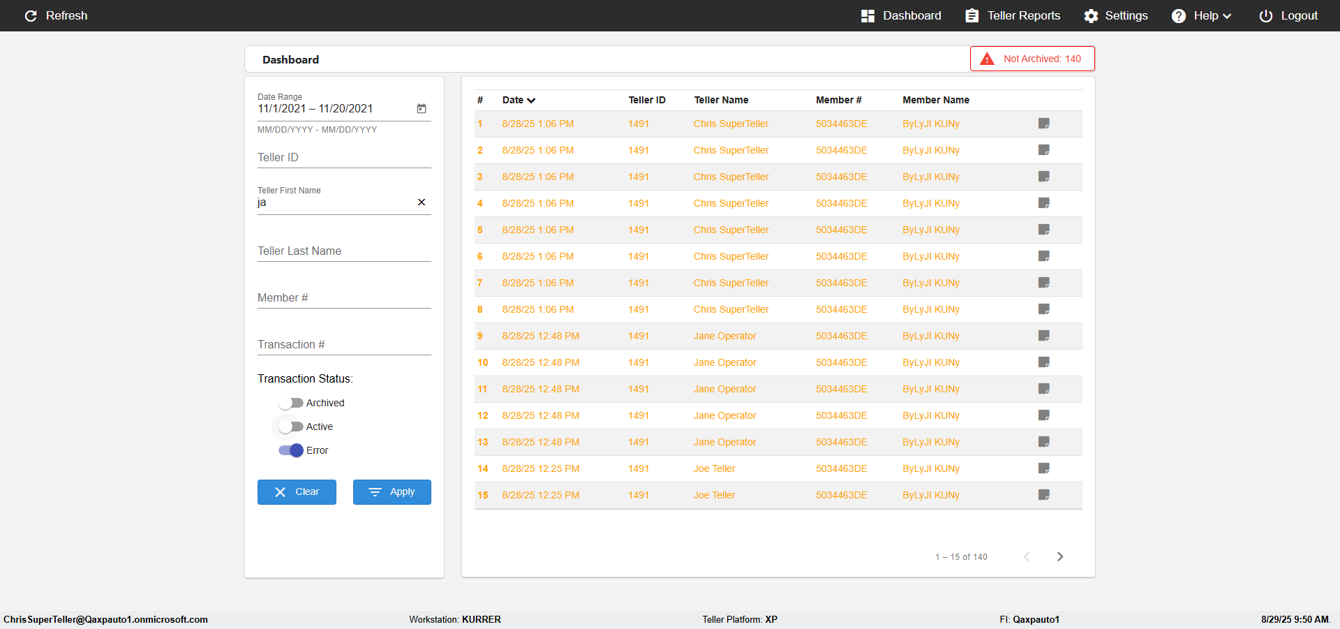 | 09:50:39 AM | ***** verify UI Elemnts In DashBoard with partial Teller Lastname ***** | |
