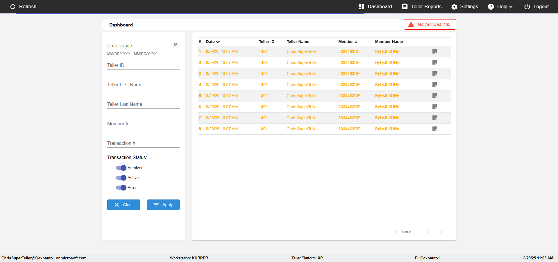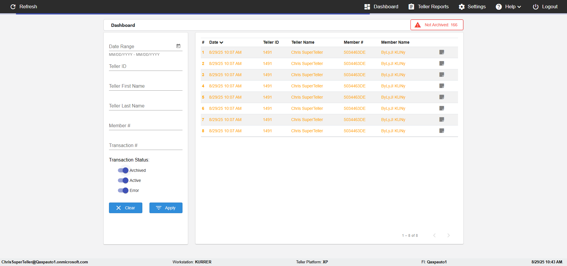 | 10:41:21 AM | Successfully navigated to 'eReceipts Teller' Page | |