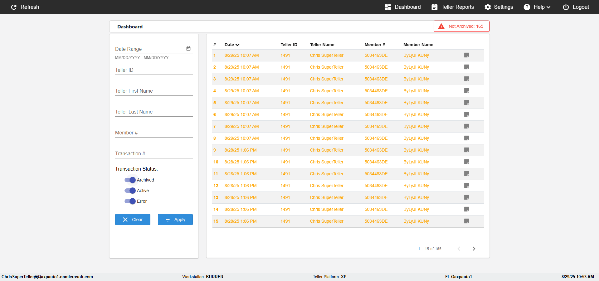 | 10:37:47 AM | Successfully navigated to 'eReceipts Teller' Page | |