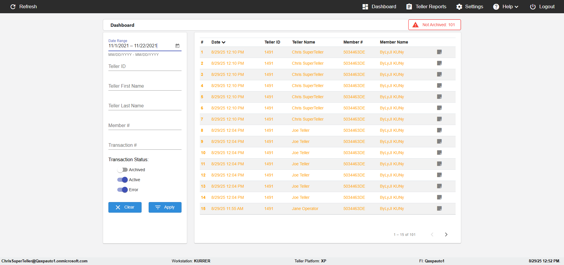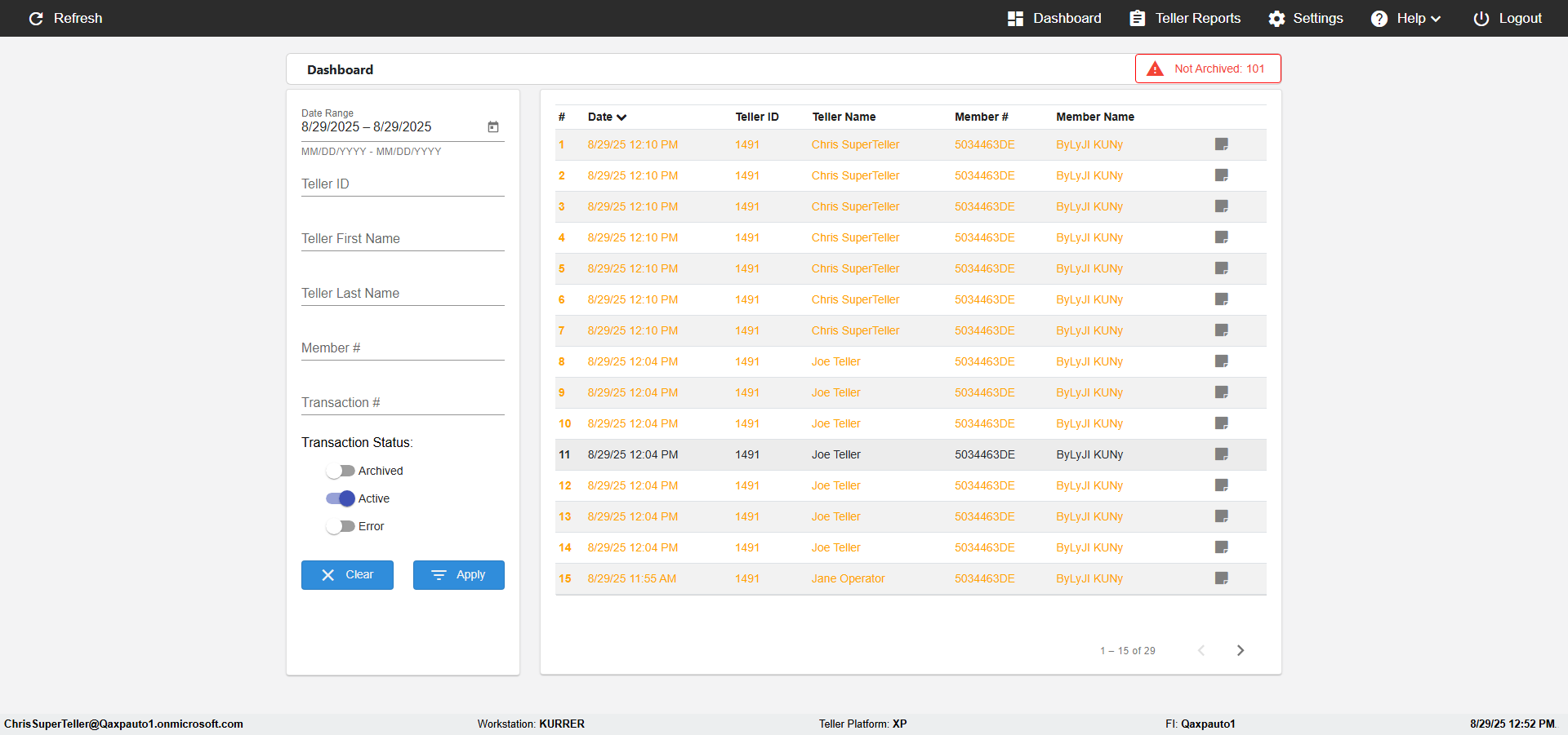 | 12:50:23 PM | ***** verify Sorting In DashBoard - Date and Teller Name ***** | |