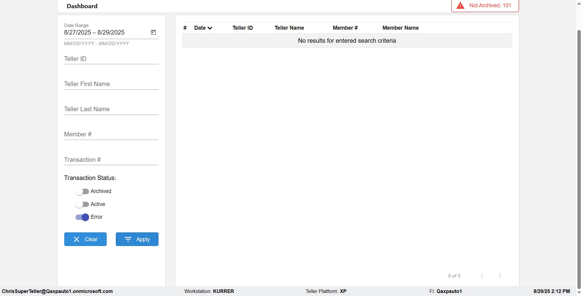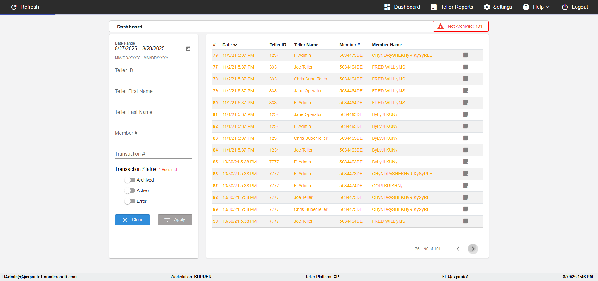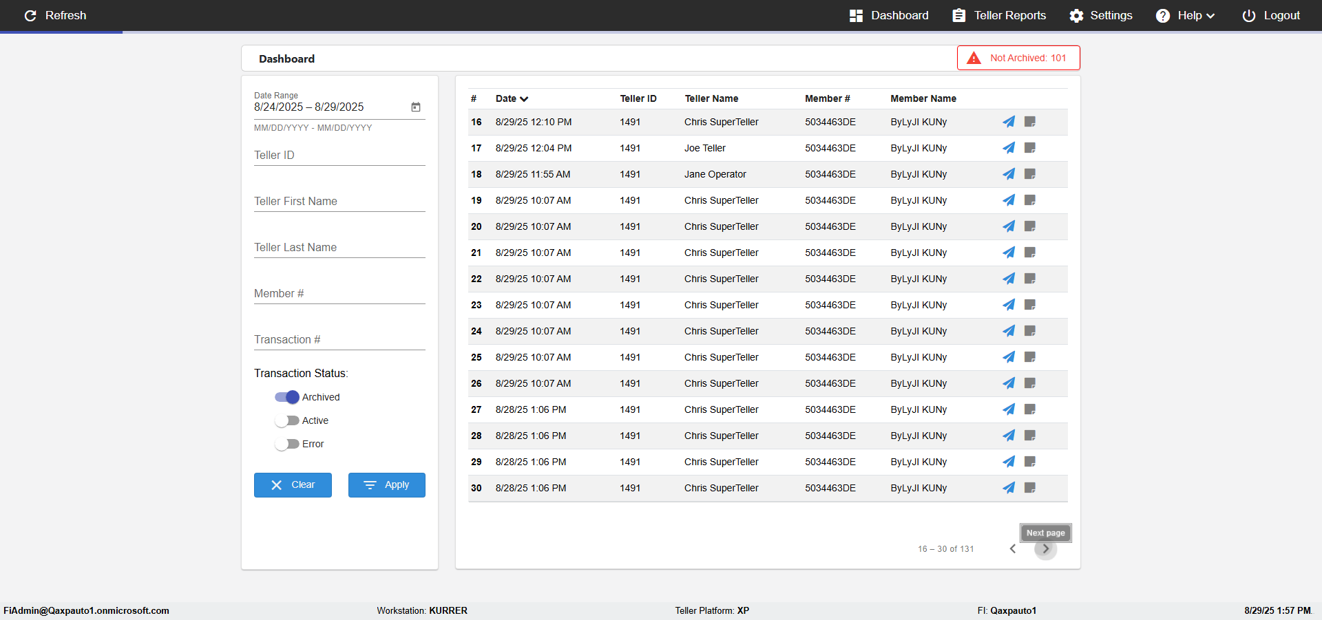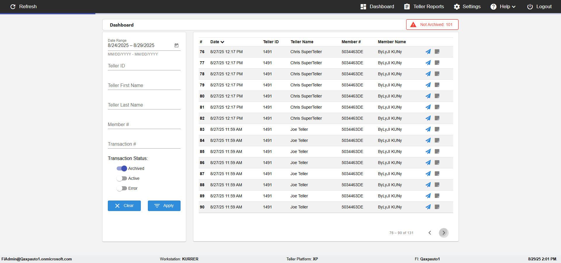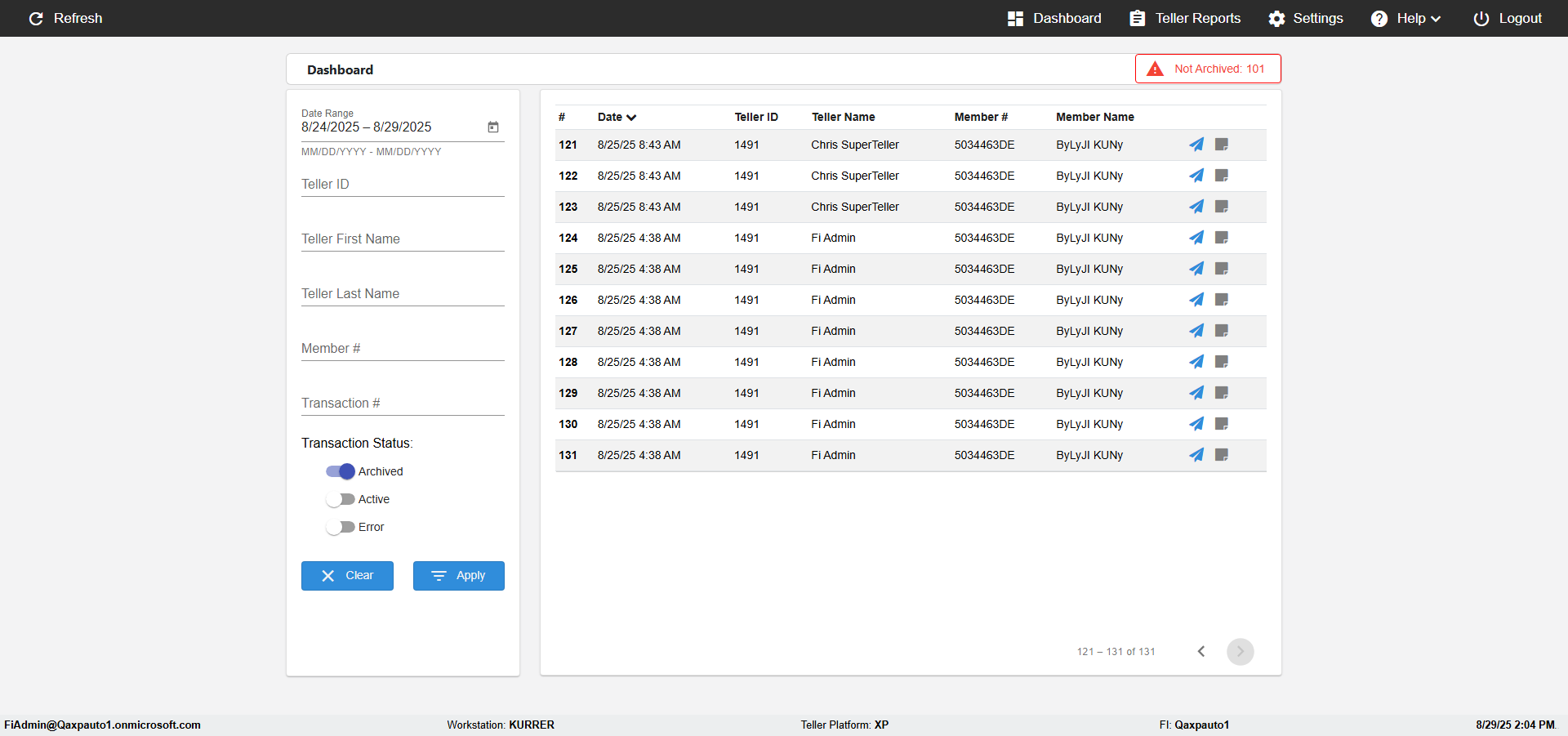 | 02:04:12 PM | Expected: verify Color displayed correctly for Transactions: in all the filtered records Actual(Failed): Color displayed not correct for Archived Transactions: in the filtered records [ScreenShot] |