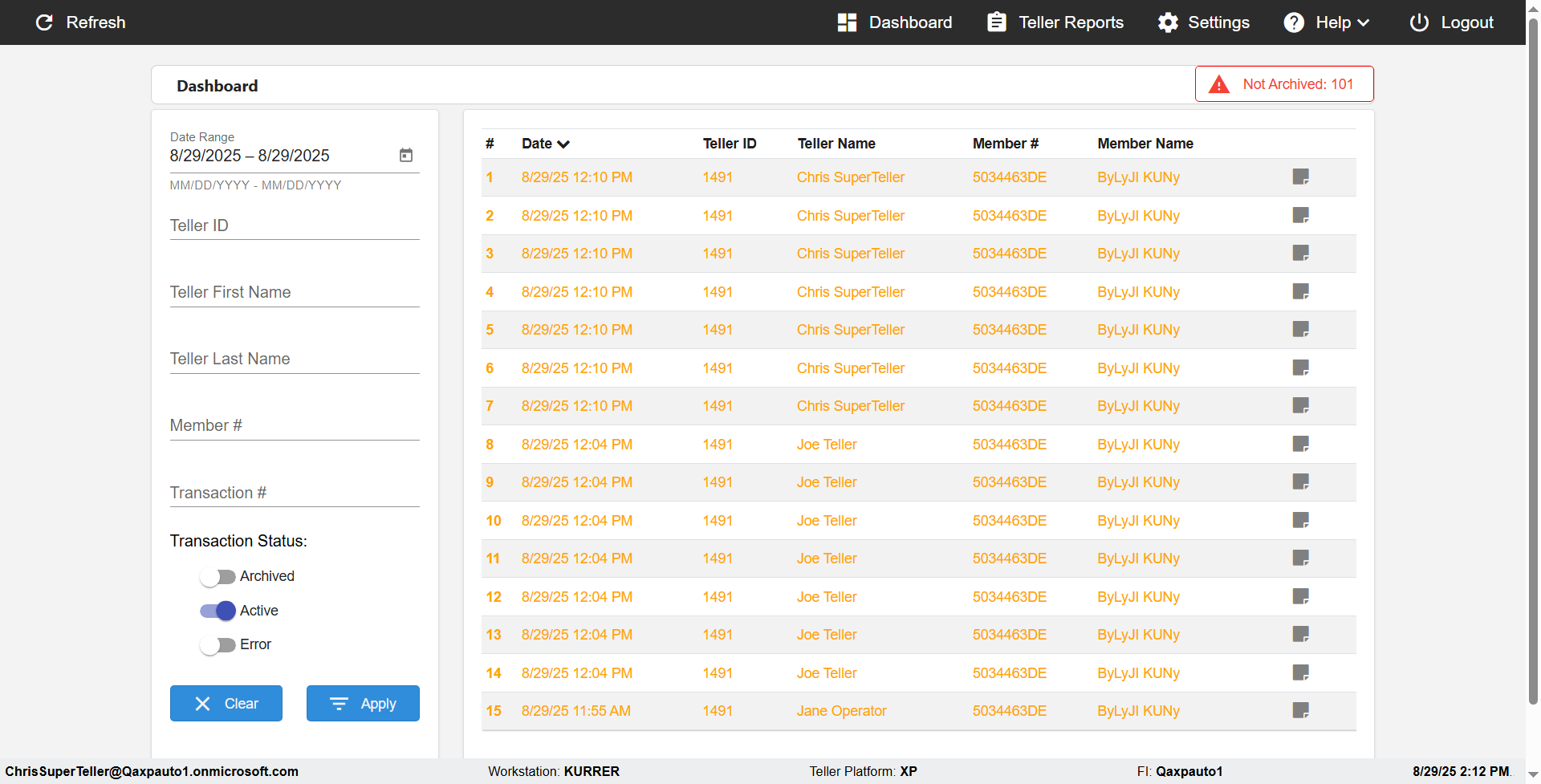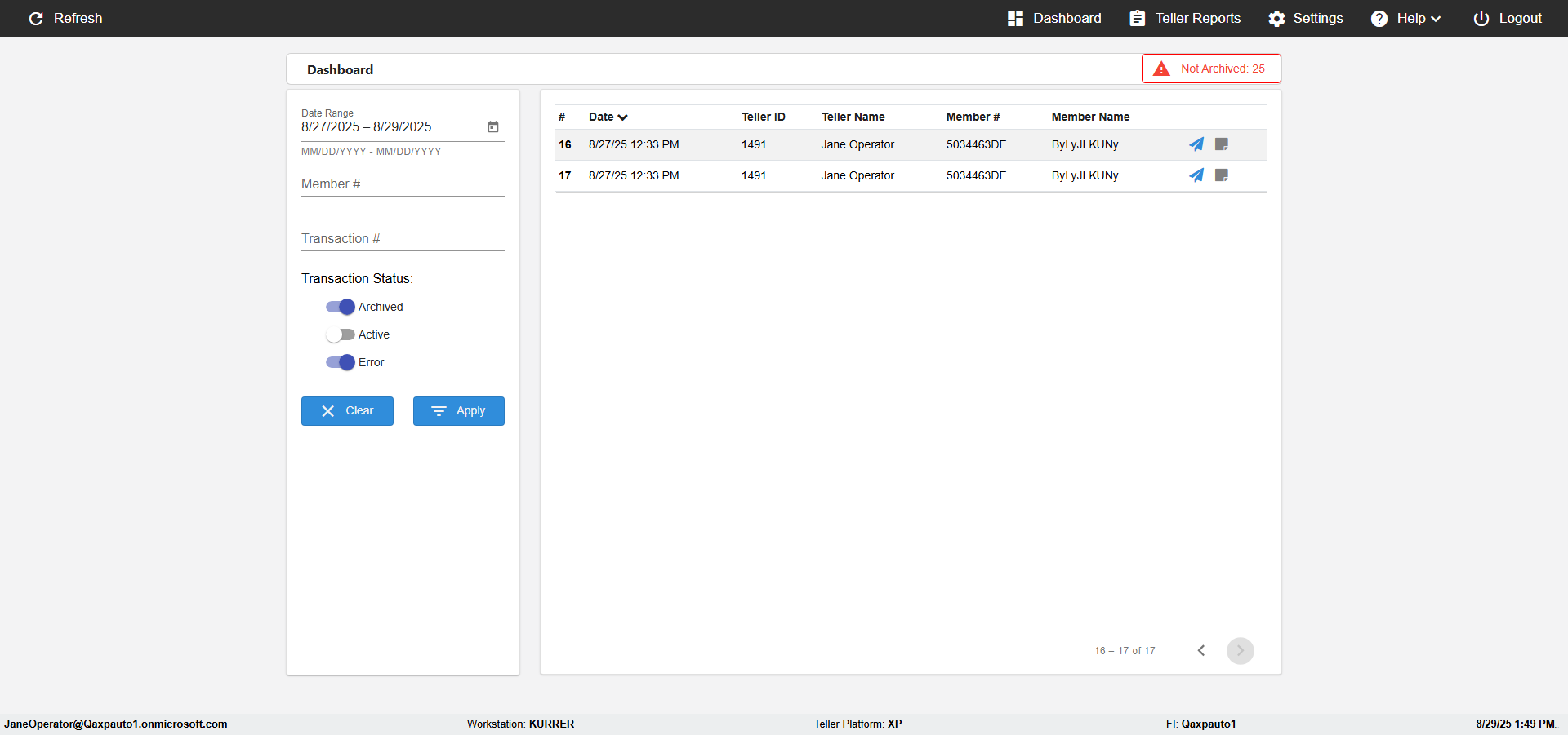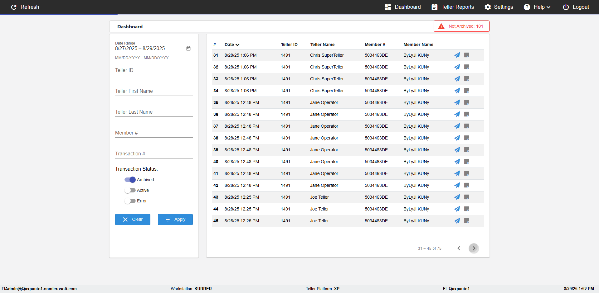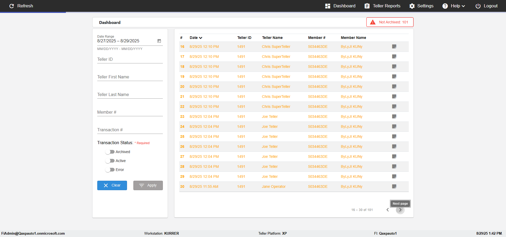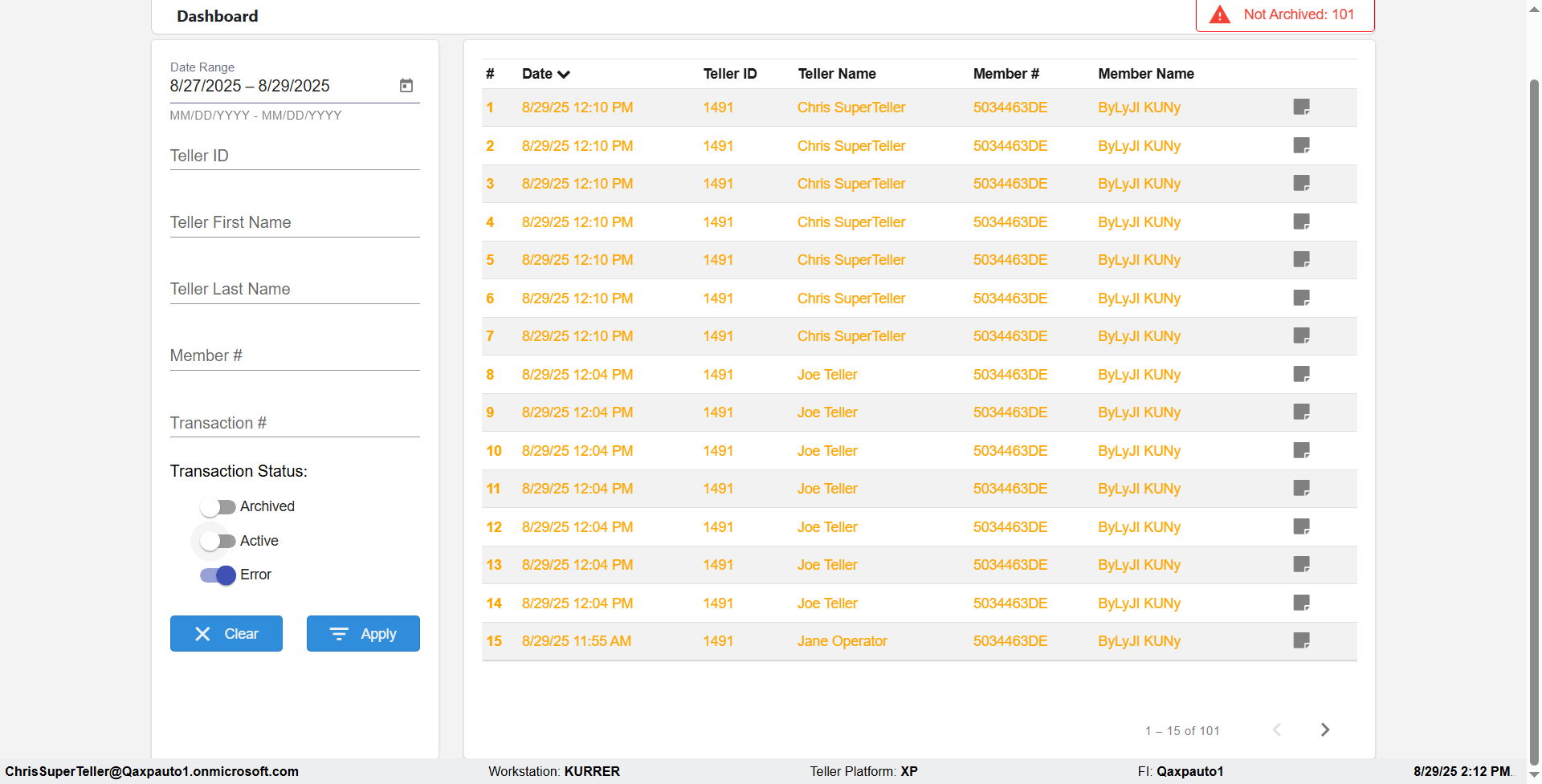 | 02:04:12 PM | Expected: verify Color displayed correctly for Transactions: in all the filtered records Actual(Failed): Color displayed not correct for Archived Transactions: in the filtered records [ScreenShot] |