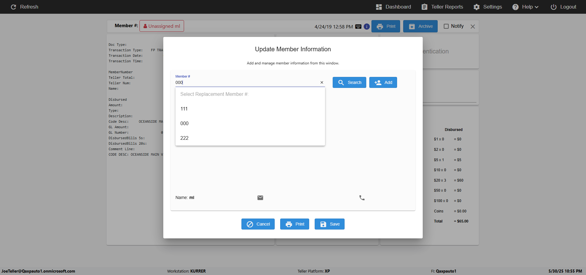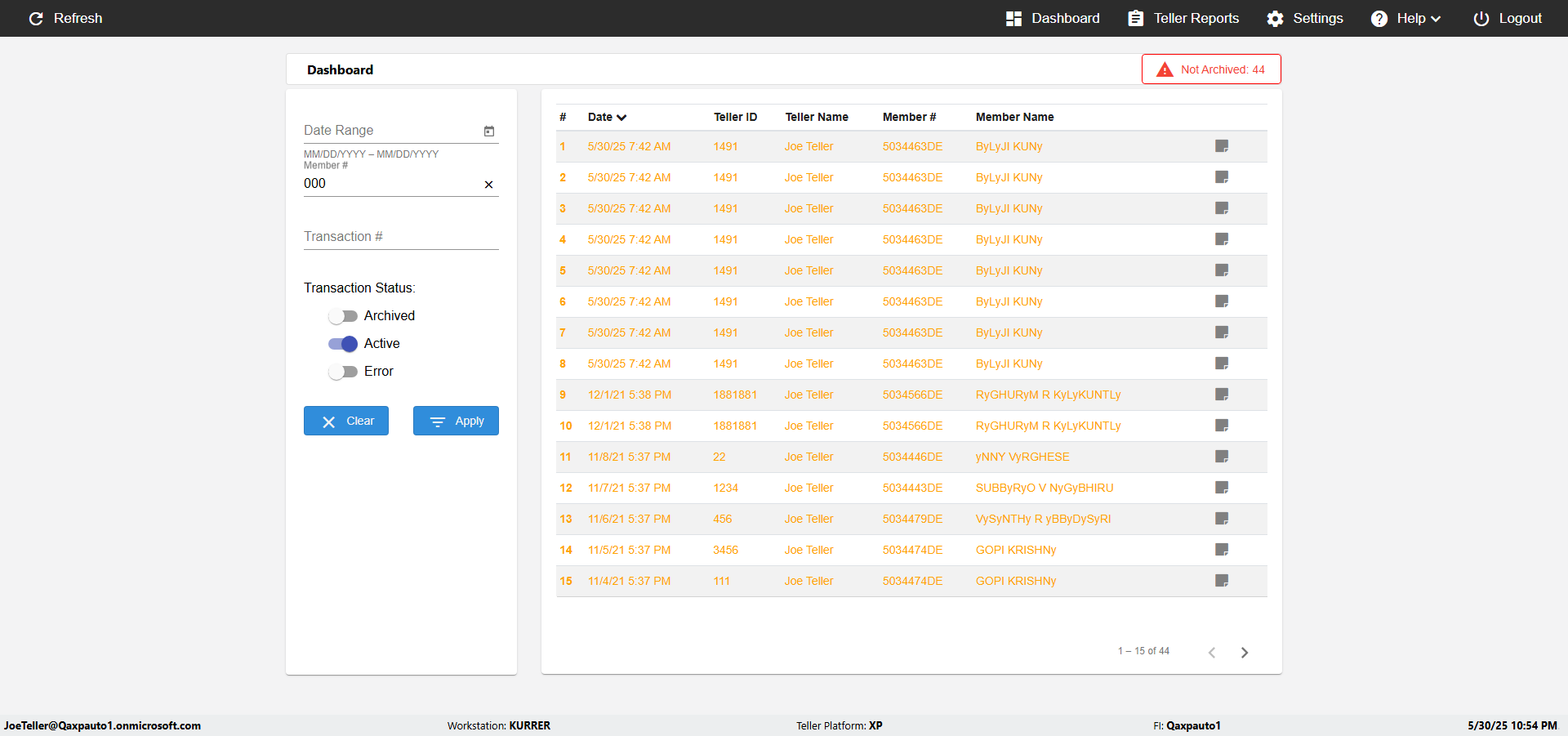 verifyNormalTellerMemberNameUpdateUnassignedMemberID({Toggel=TRUE, Archived Transactions=no, Description=verify Updated Member Name when no Member ID in...)