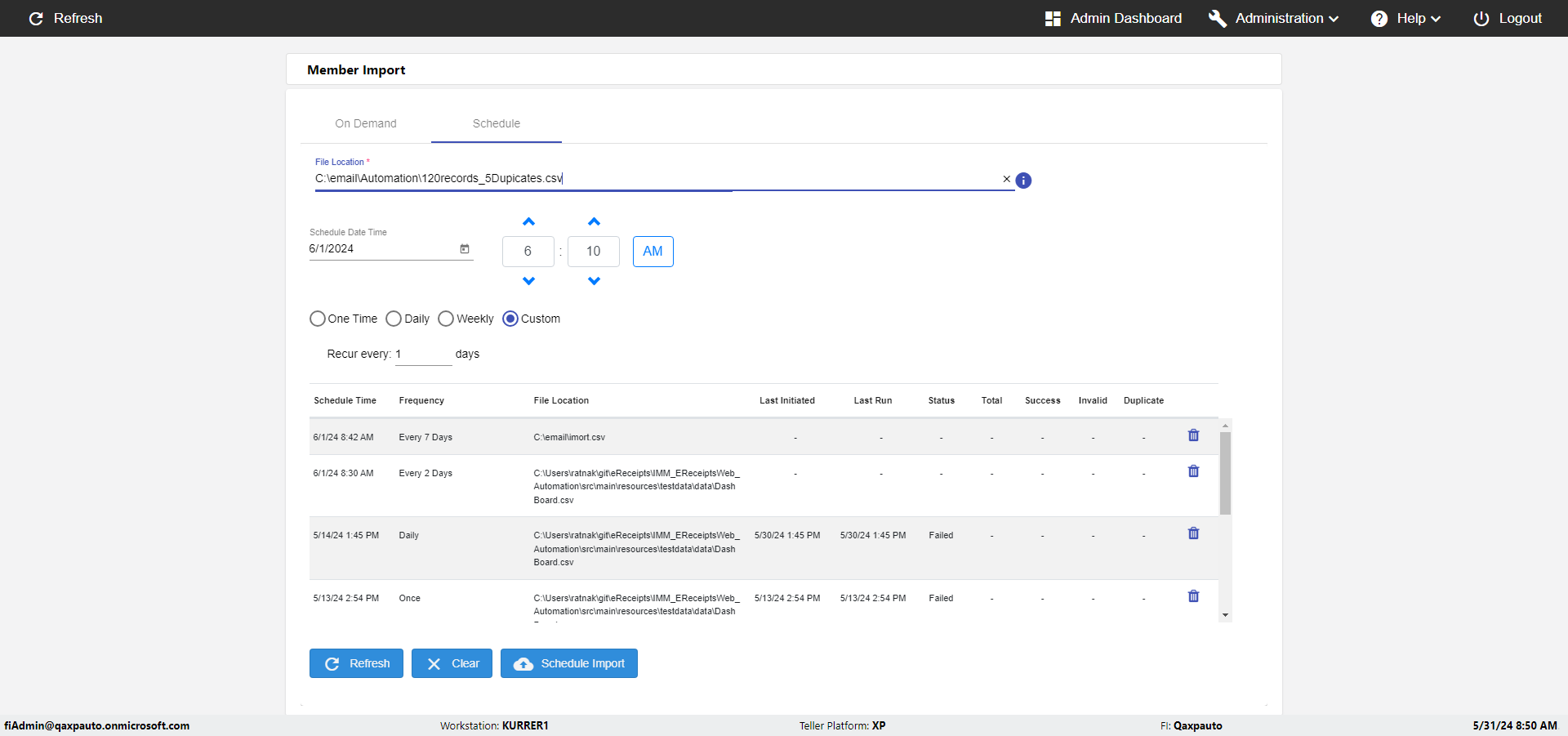 | {Archived Transactions=, Archive=, print signatur=, Name=, MultipleWorkstation=, WorkstationDeleteOption=, BranchName=, Agent=, UserPwd=iMM2022!, BranchDeleteOption=, Receipt=, Role=, Brand=, Print signature line=, TimeZone=, Header=, MappedOption=, Scan=, PortNumber=, FromWks=, FromBranch=, Description=verify the Member import Schedule custom Schedule, weeks=, Operation=, Clear=, TestID=verifyMemberImportSchedulePageCustom, Phone=, WorkstationName=, ToBranch=, ToWks=, Subscription Names=, FilePath=C:\email\Automation\120records_5Dupicates.csv, Transtatus=Archived-false;Active-true;Error-false, Report=, Index_Field_Name=, Agents=, Text=, Hold Notice=, Suppress=, SchedualType=Daily,, Date=, Platfrom=, GroupId=, print Disburstments=, SMTP=, Imaging System=, MultipleBranches=, Username=fiAdmin@Qaxpauto.onmicrosoft.com, Sign=} |