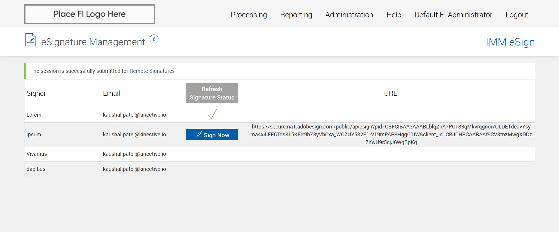 Successfully navigated to the 'eSignature Management' page [ScreenShot]