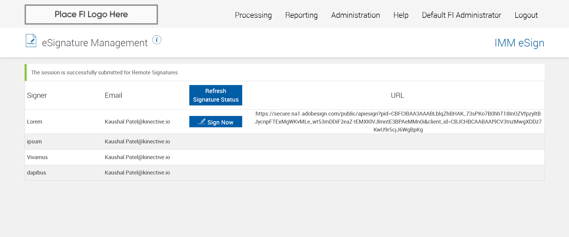Successfully navigated to the 'eSignature Management' page [ScreenShot]