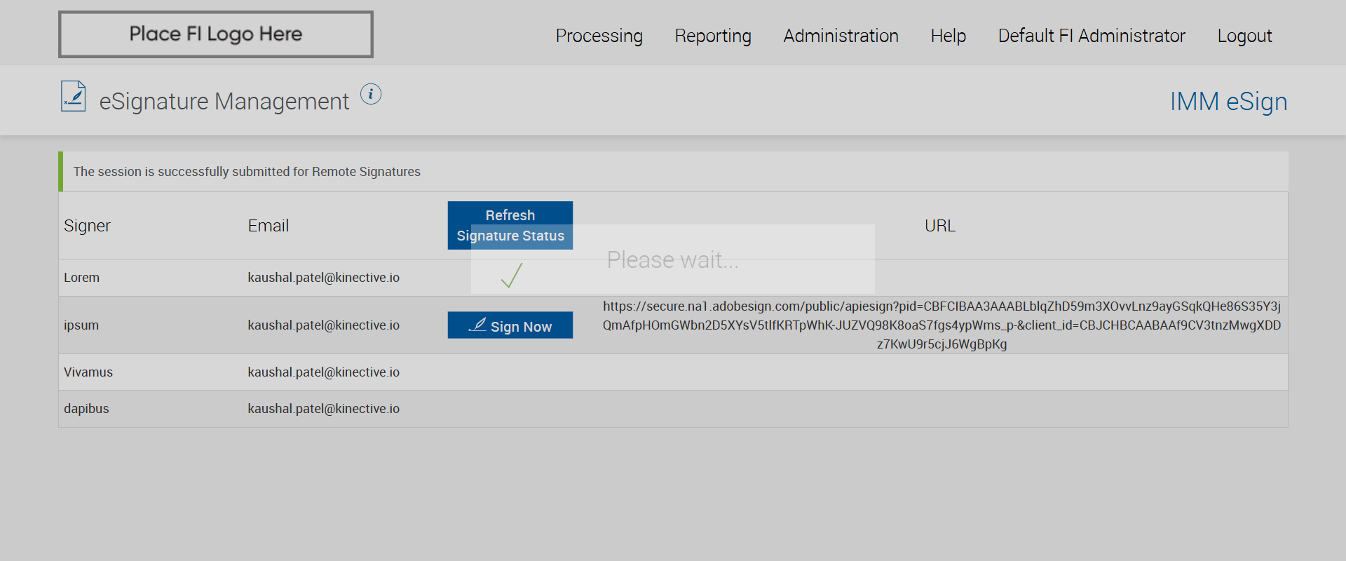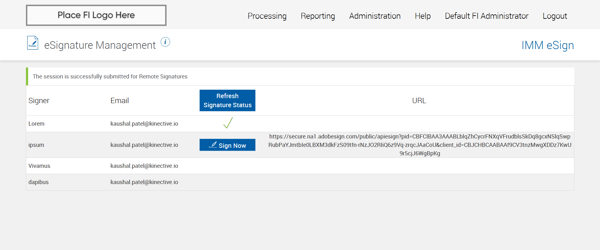 Successfully navigated to the 'eSignature Management' page [ScreenShot]