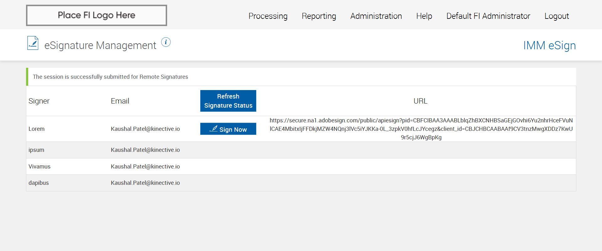 Successfully navigated to the 'eSignature Management' page [ScreenShot]