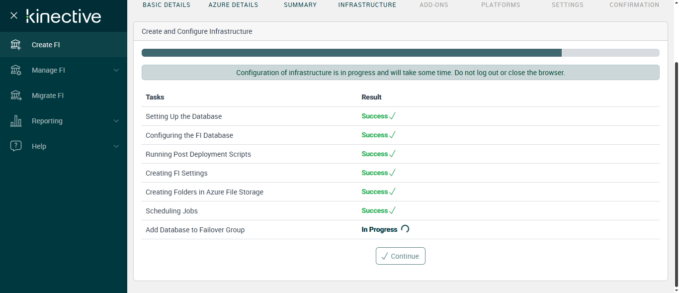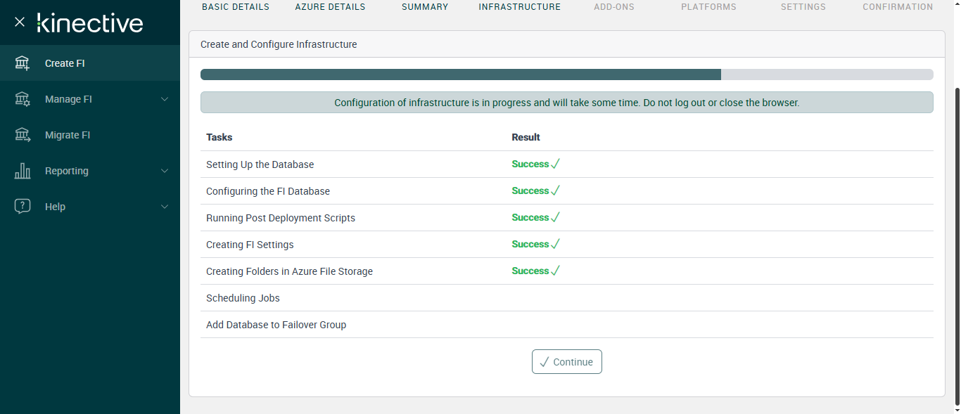 Successfully Configured 'Creating FI Settings'