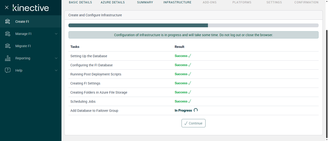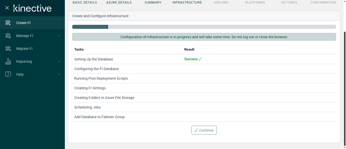| 05:34:57 pm | Successfully Configured 'Configuring the FI Database' | |