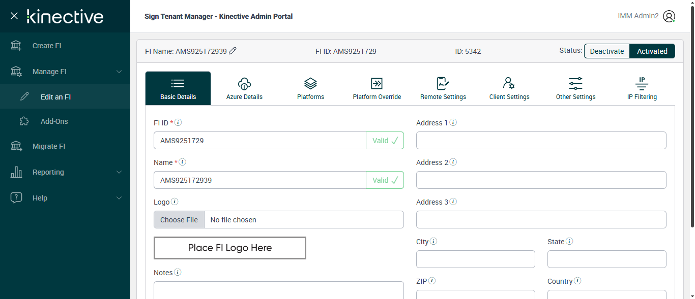 | 05:40:49 pm | Login as FiAdmin with Existing FI : AMS925172939 | |